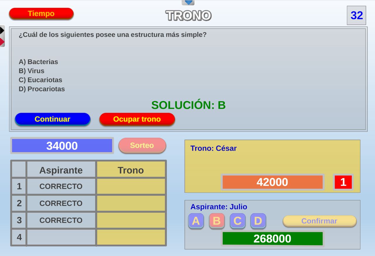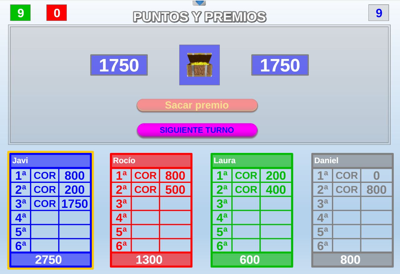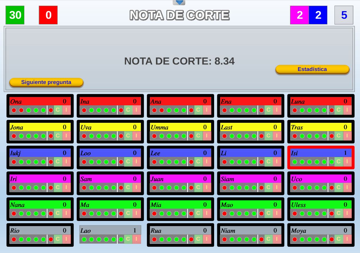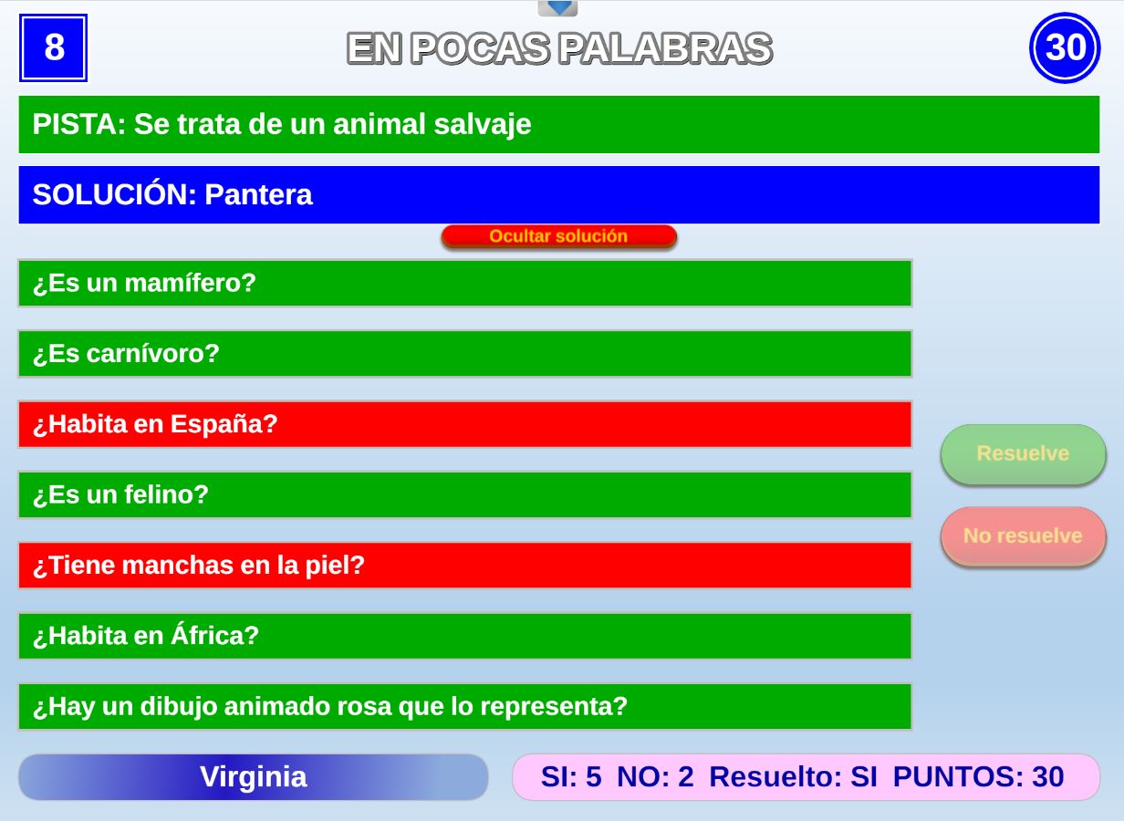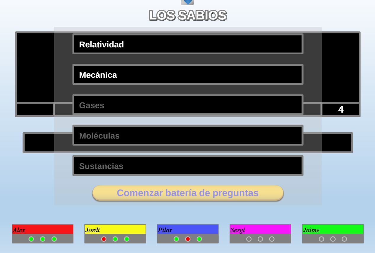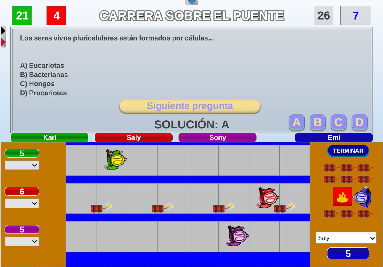 Juego en el que quedará como primer clasificado, aquel que más respuestas correctas consiga. Participan un total de 8 jugadores y el número de preguntas es modulable.