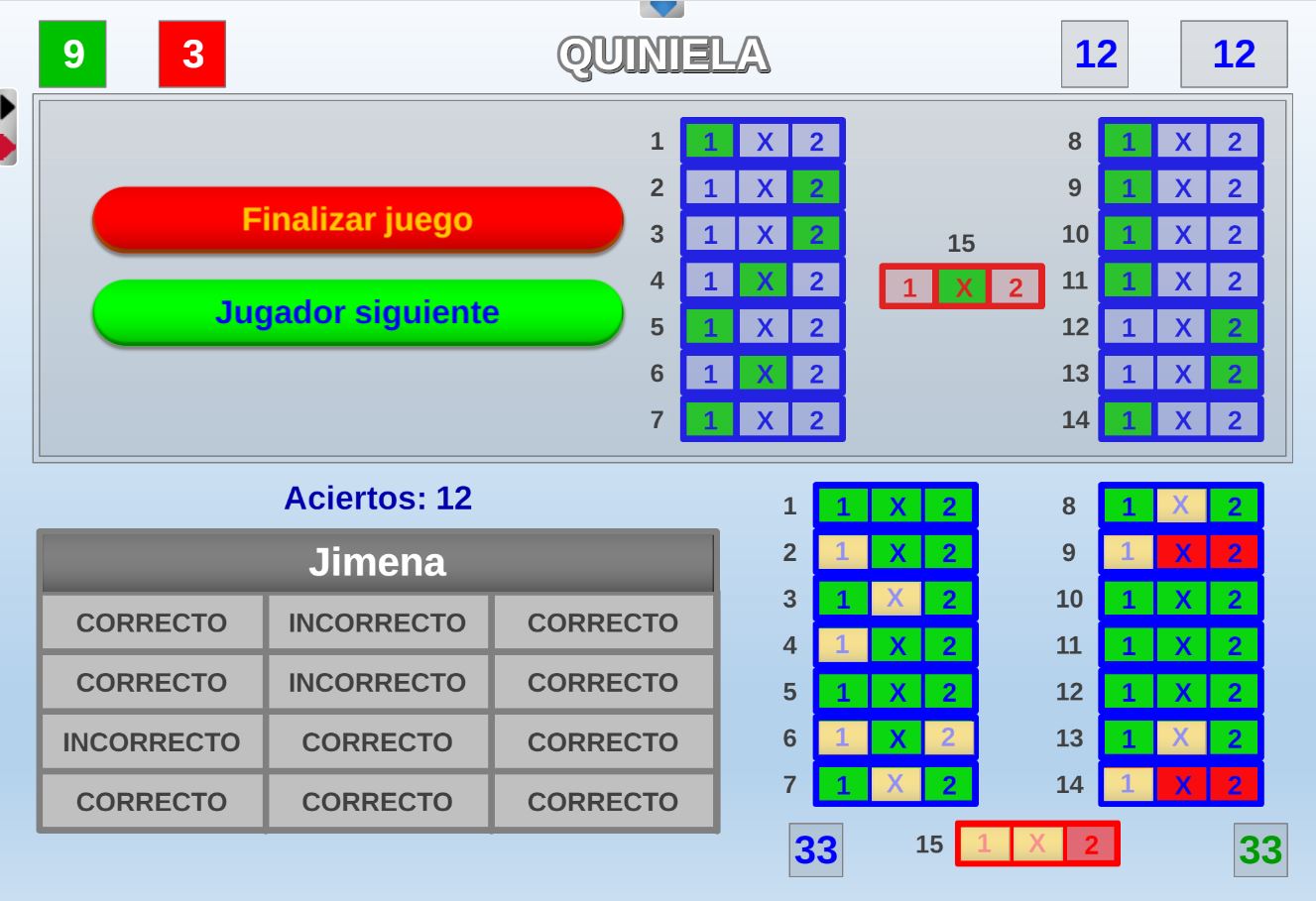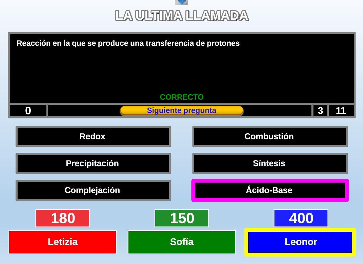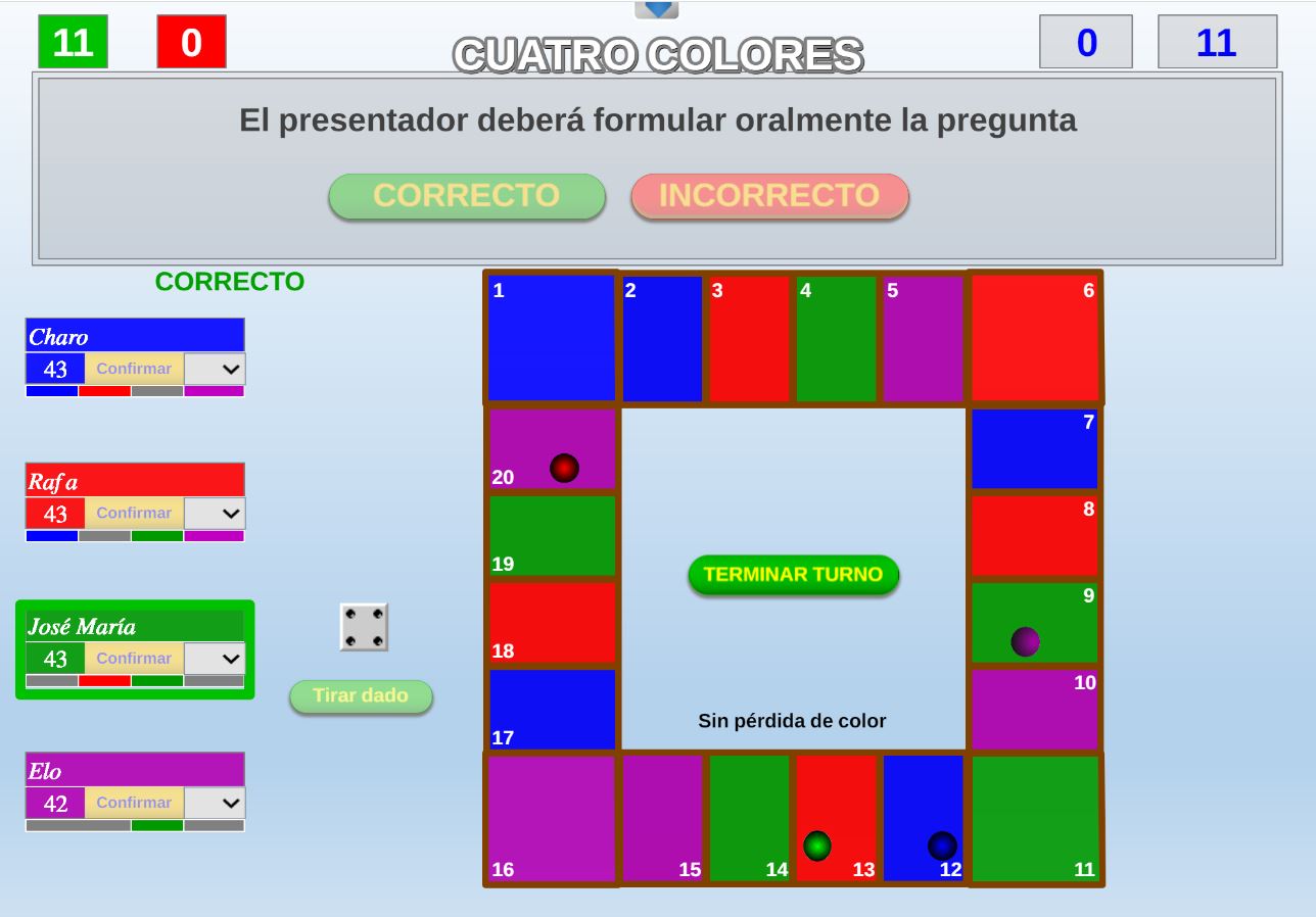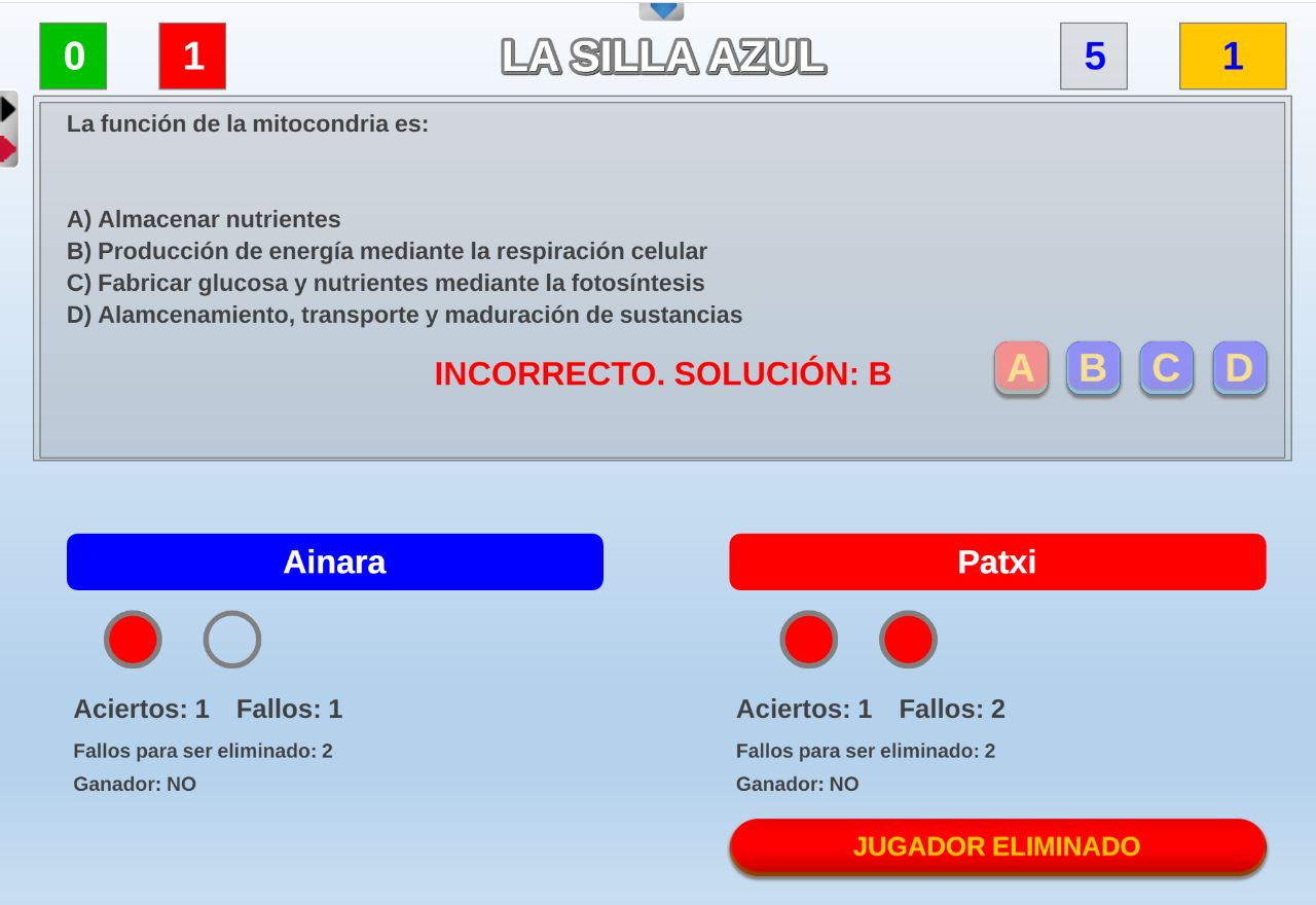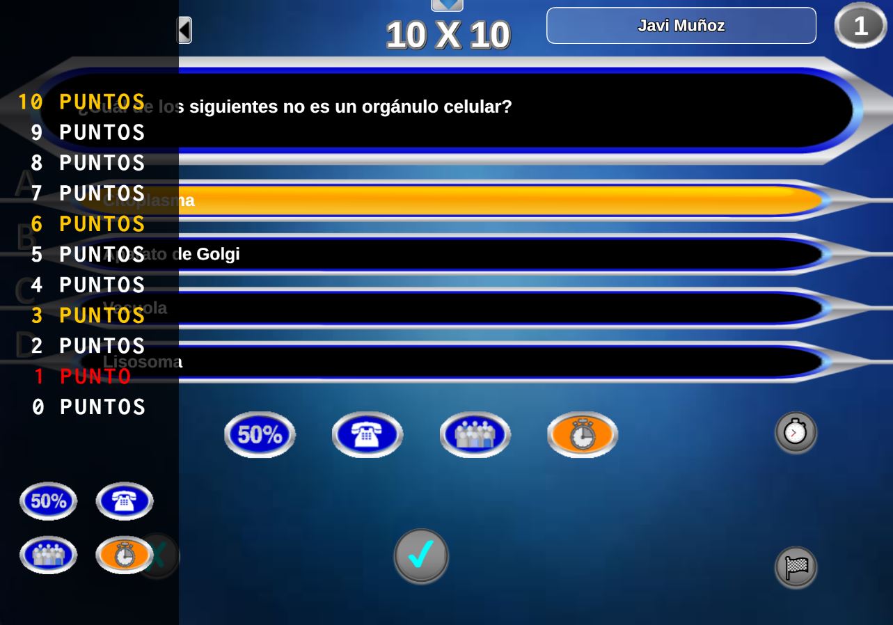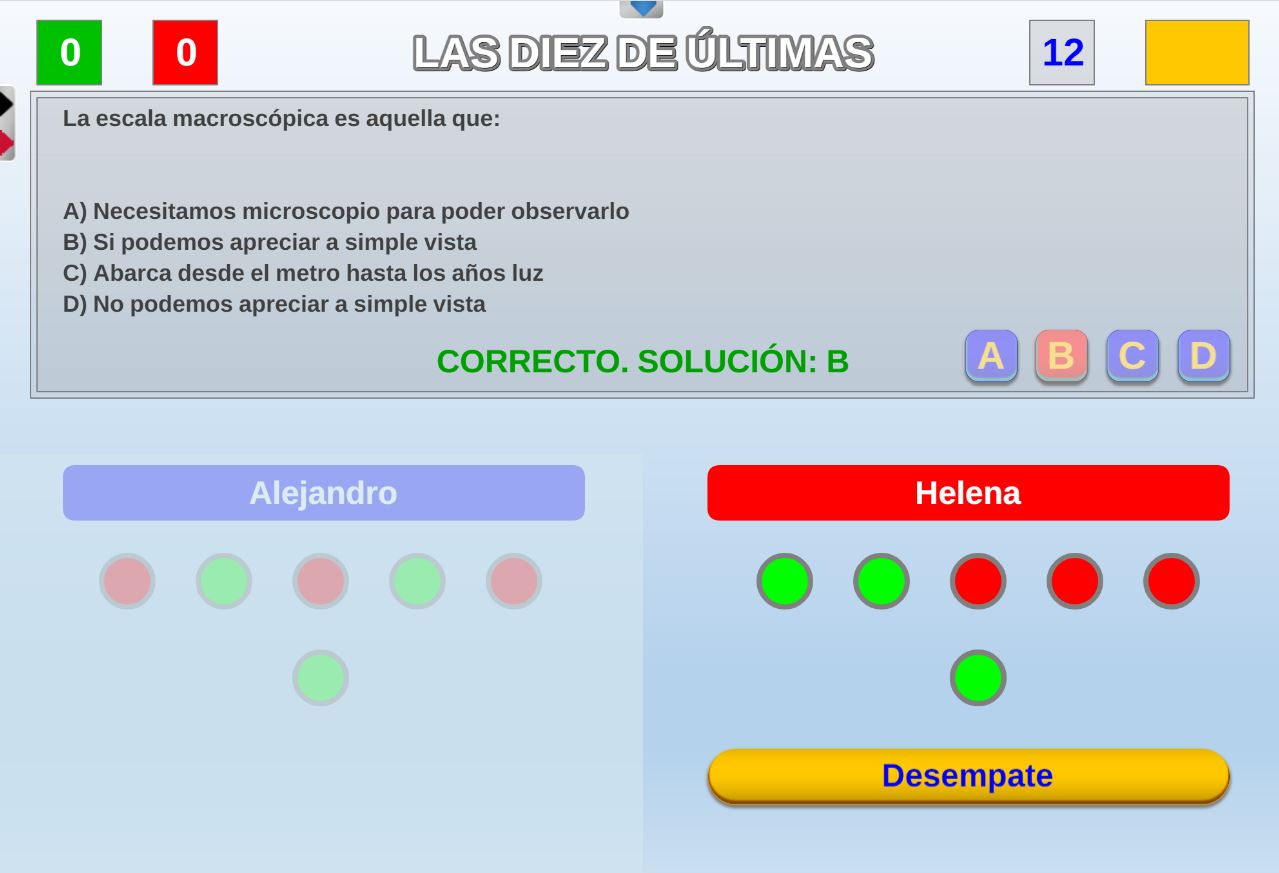 Juego en el que quedará como primer clasificado, aquel que más respuestas correctas consiga. Participan un total de 8 jugadores y el número de preguntas es modulable.
