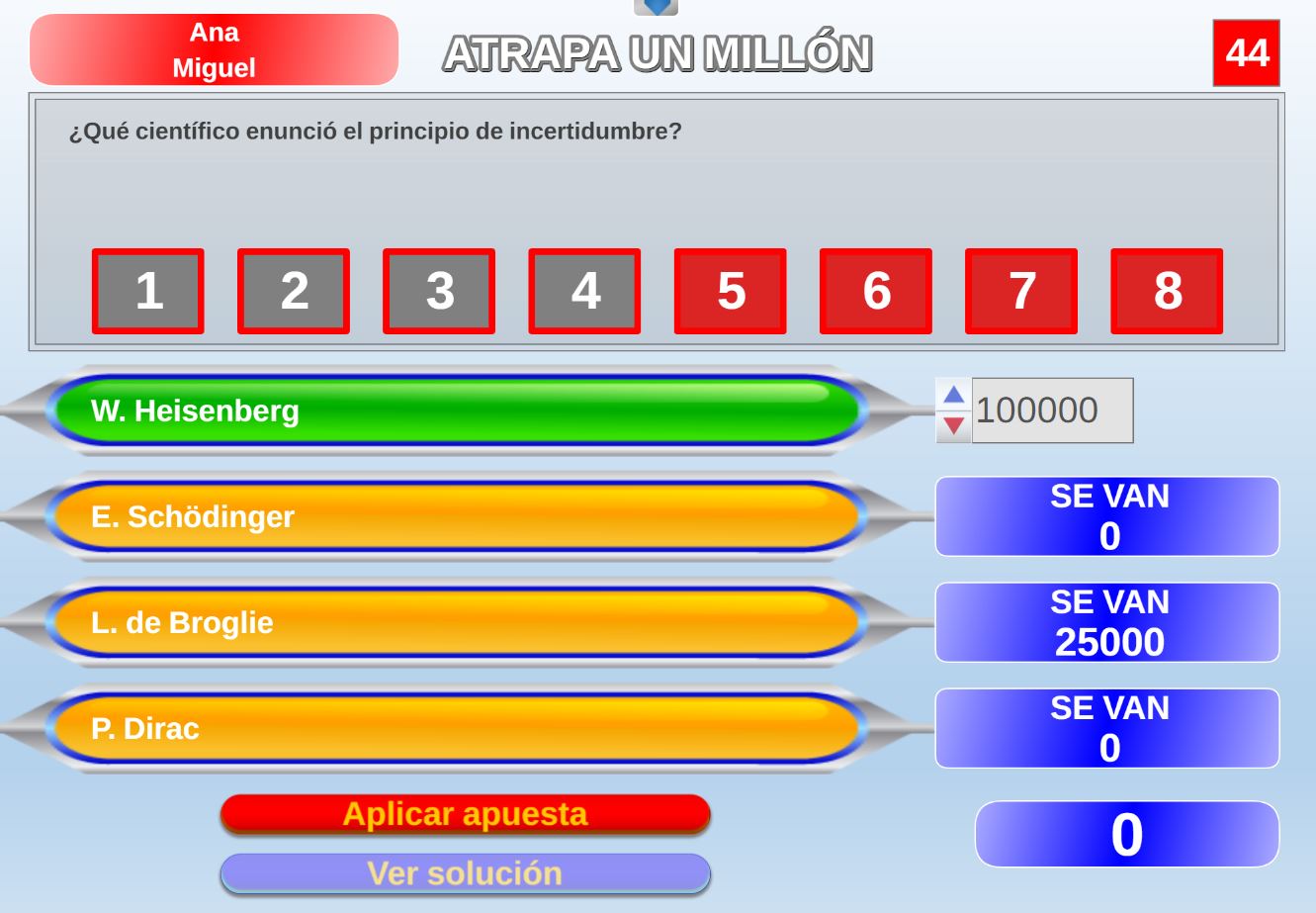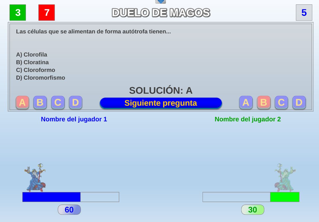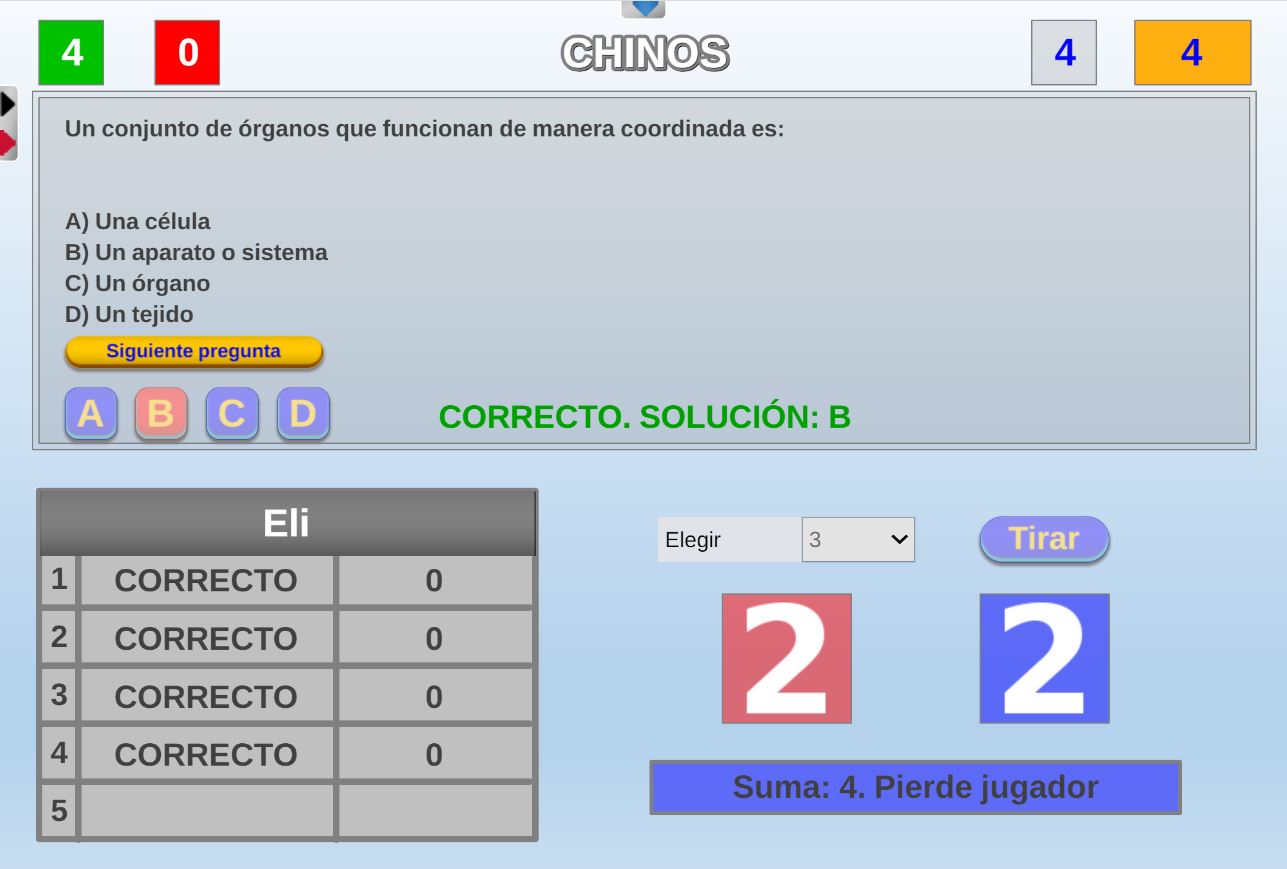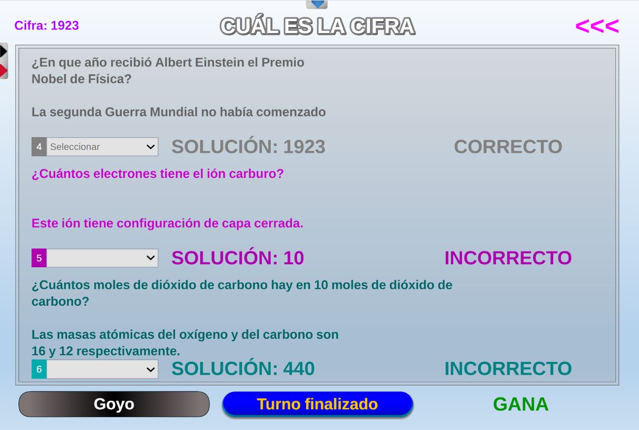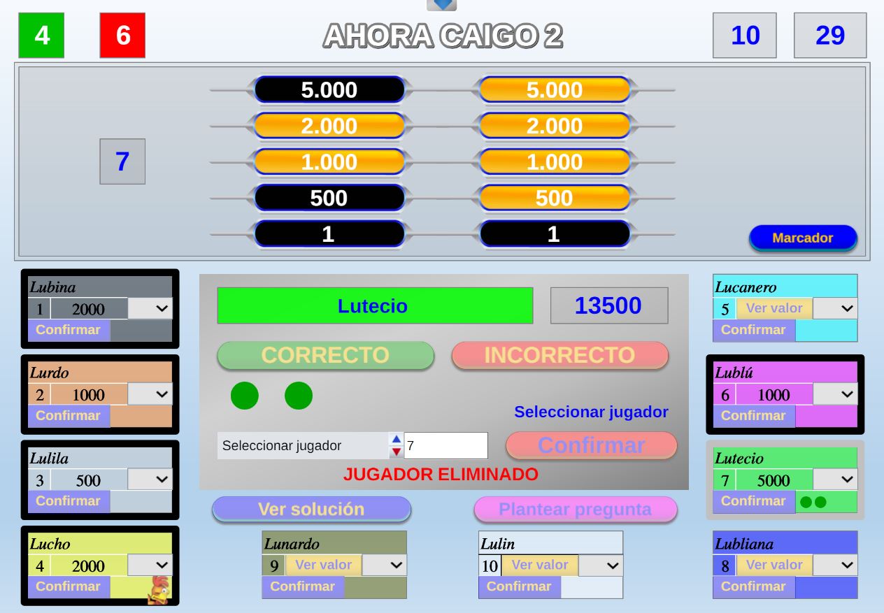Juego en el que quedará como primer clasificado, aquel que más respuestas correctas consiga. Participan un total de 8 jugadores y el número de preguntas es modulable.