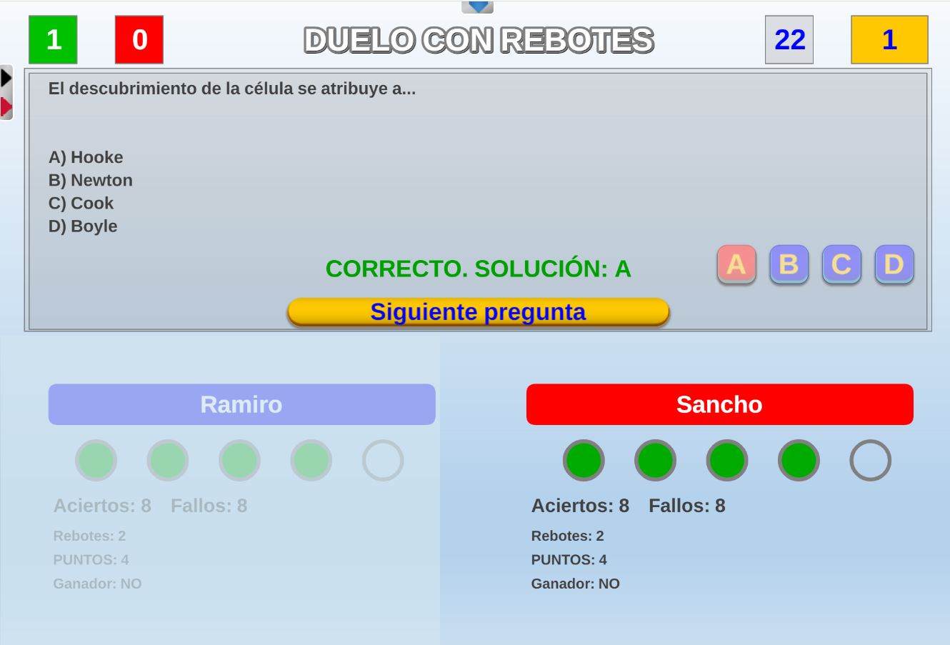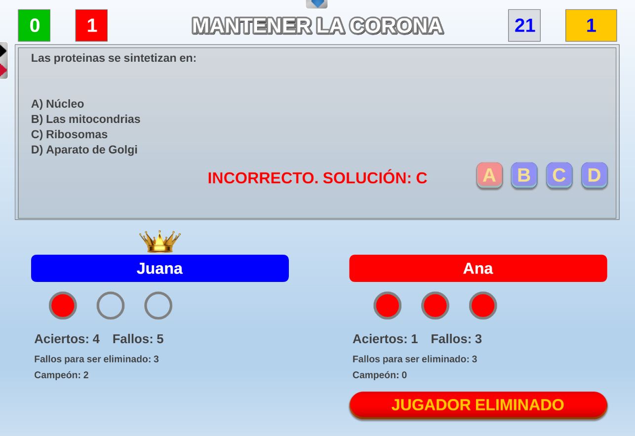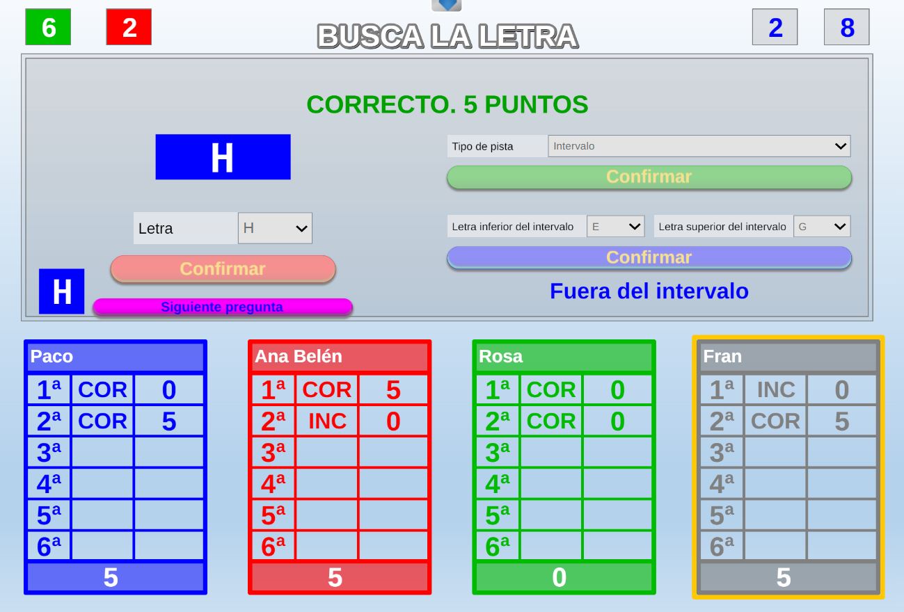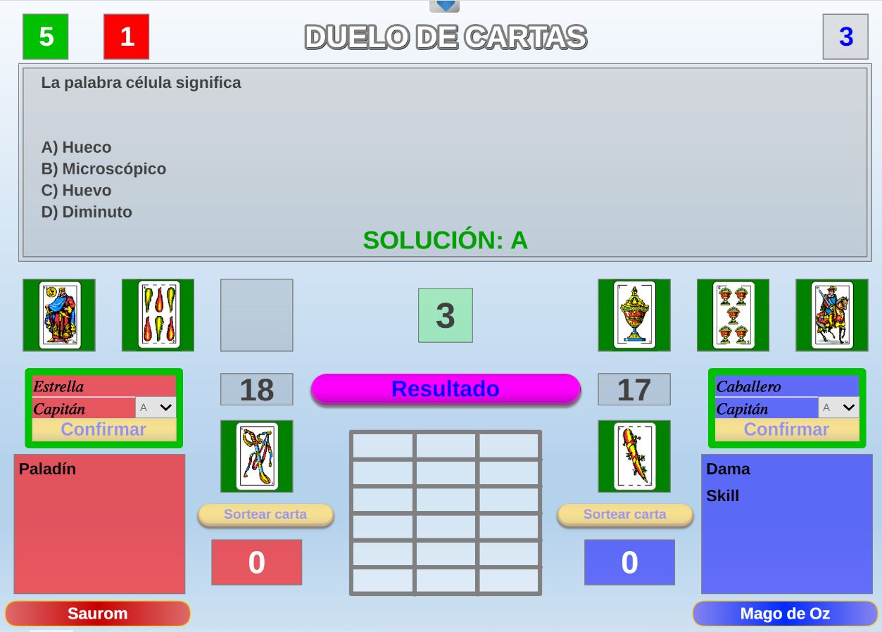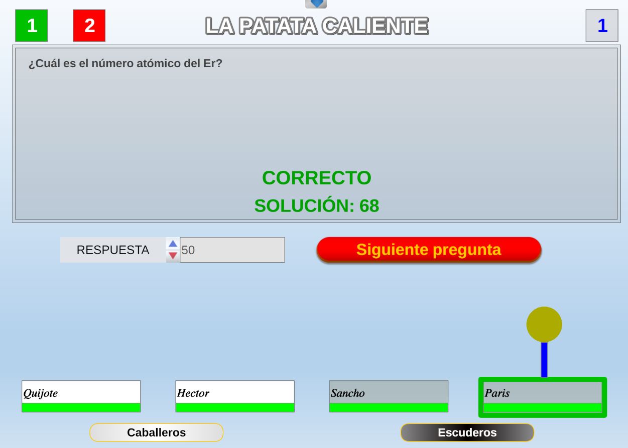 Juego en el que quedará como primer clasificado, aquel que más respuestas correctas consiga. Participan un total de 8 jugadores y el número de preguntas es modulable.