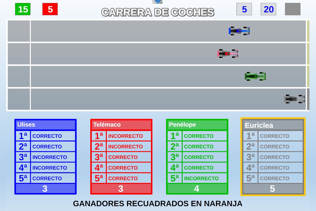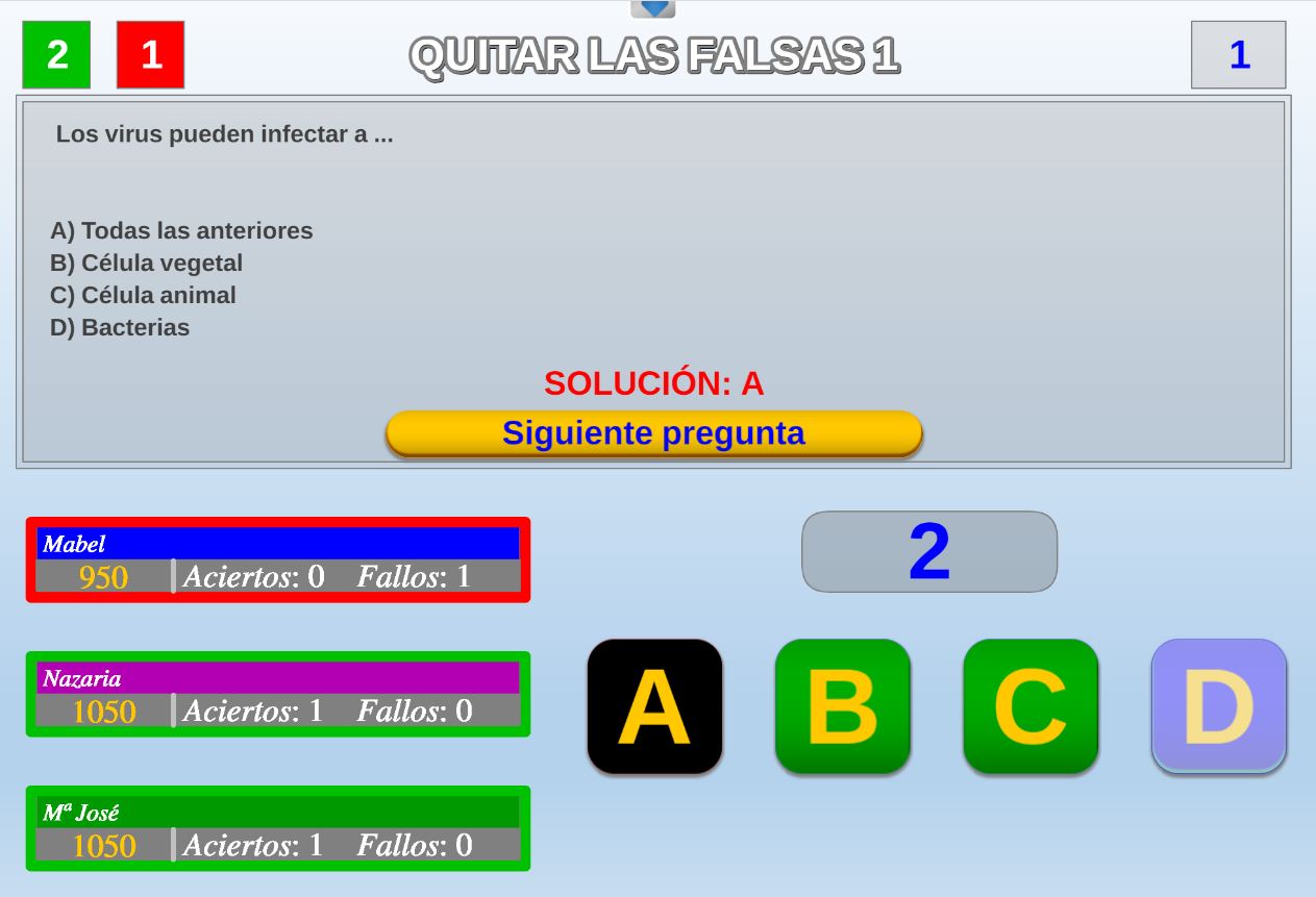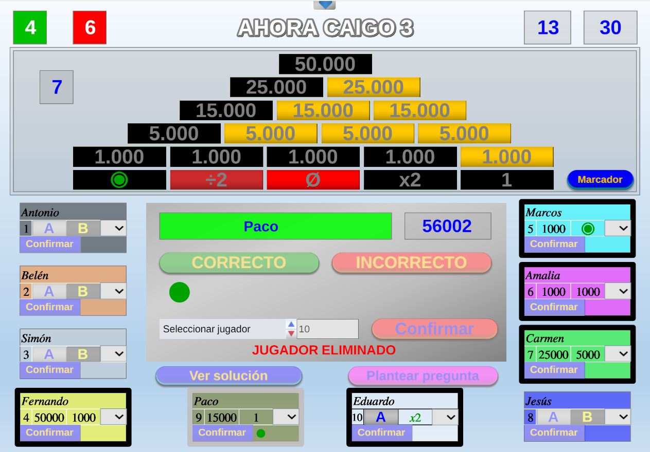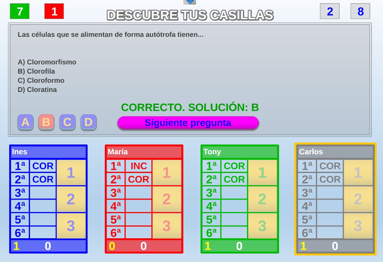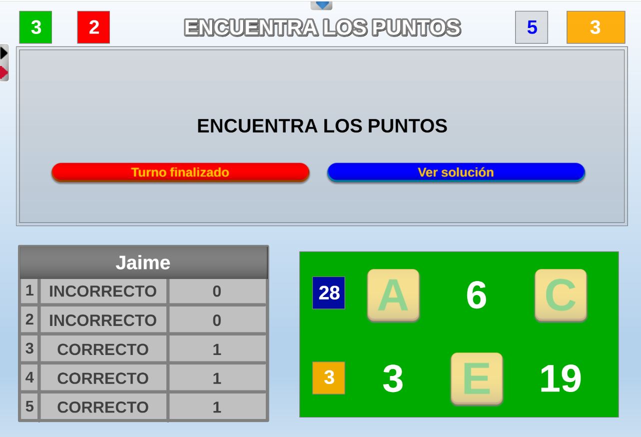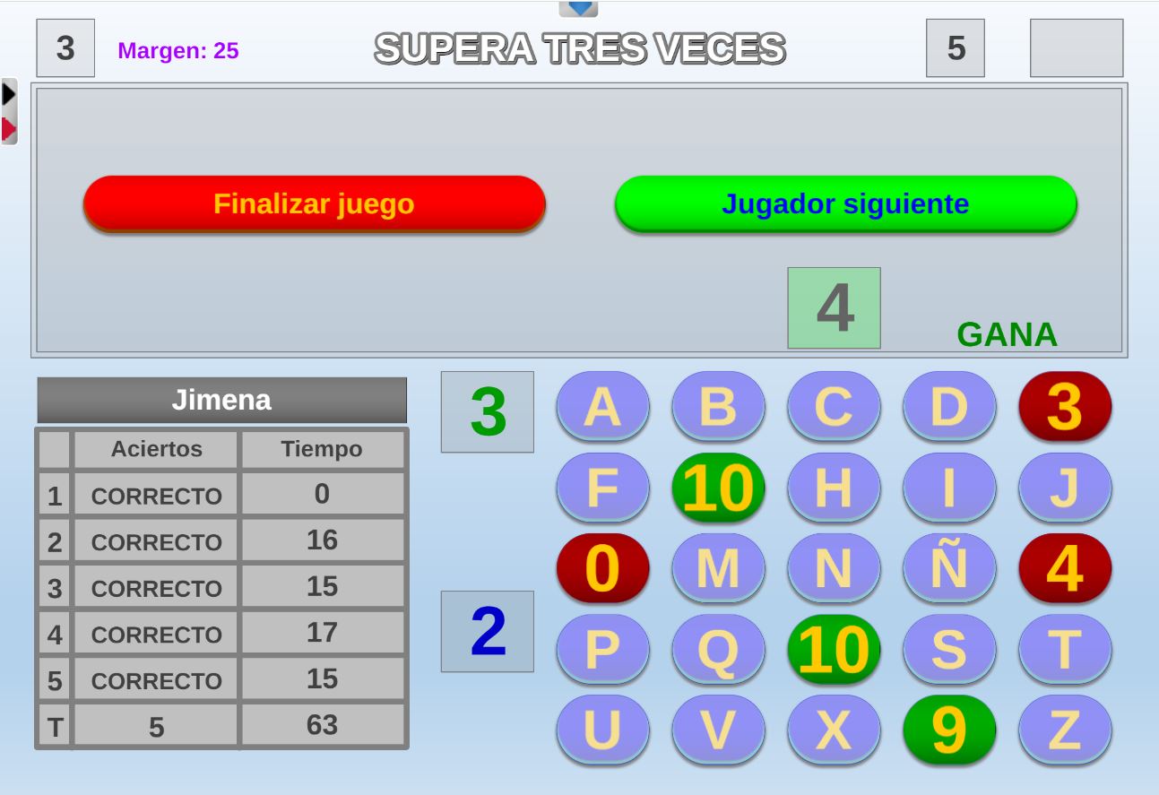 Juego en el que quedará como primer clasificado, aquel que más respuestas correctas consiga. Participan un total de 8 jugadores y el número de preguntas es modulable.