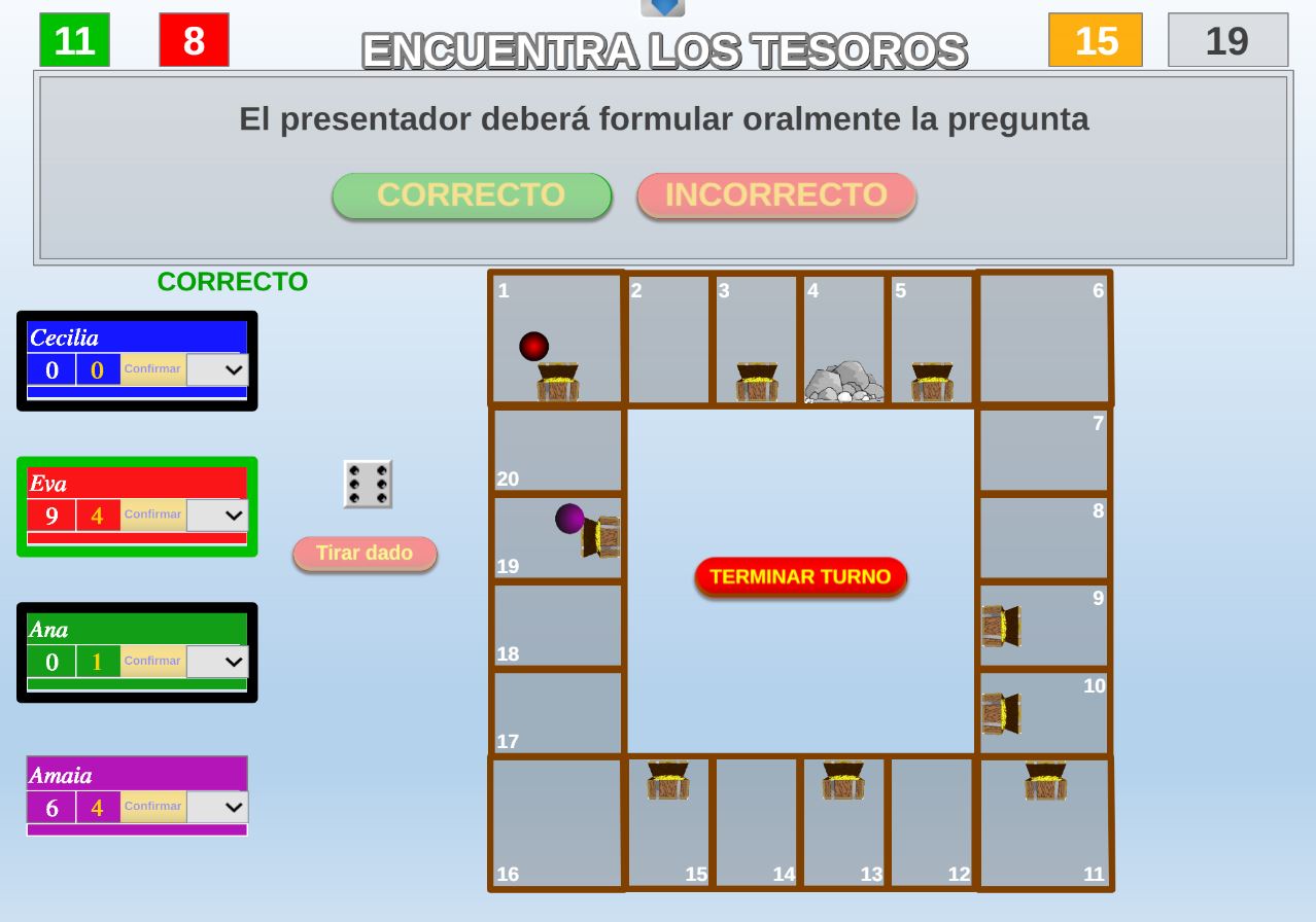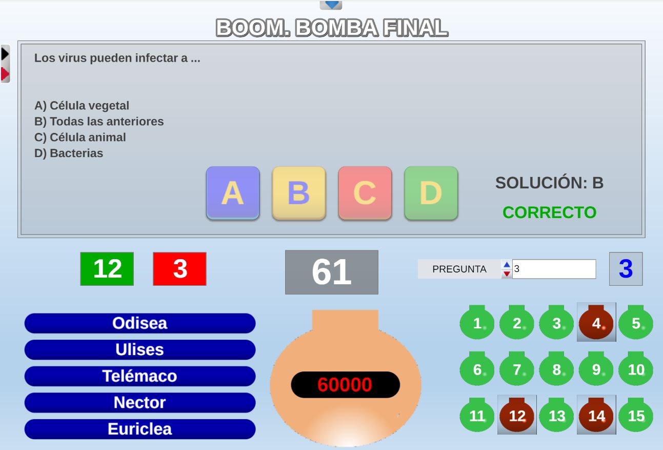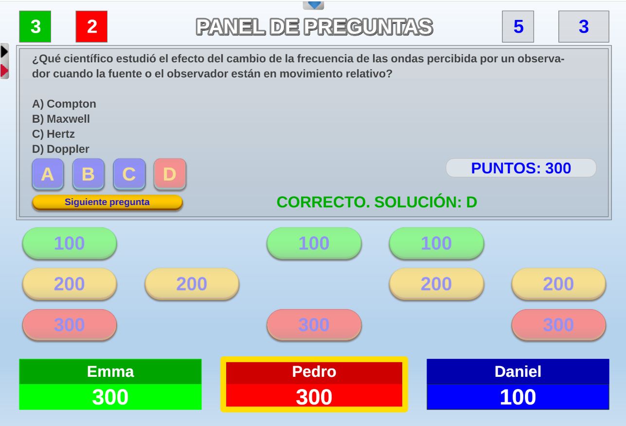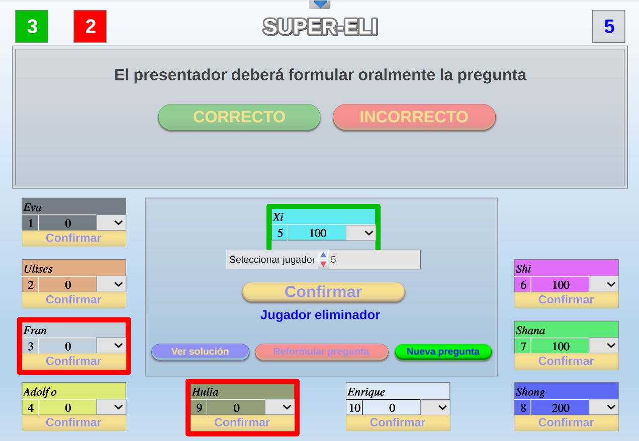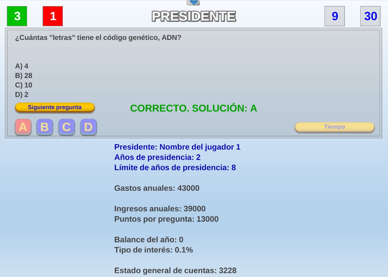 Juego en el que quedará como primer clasificado, aquel que más respuestas correctas consiga. Participan un total de 8 jugadores y el número de preguntas es modulable.