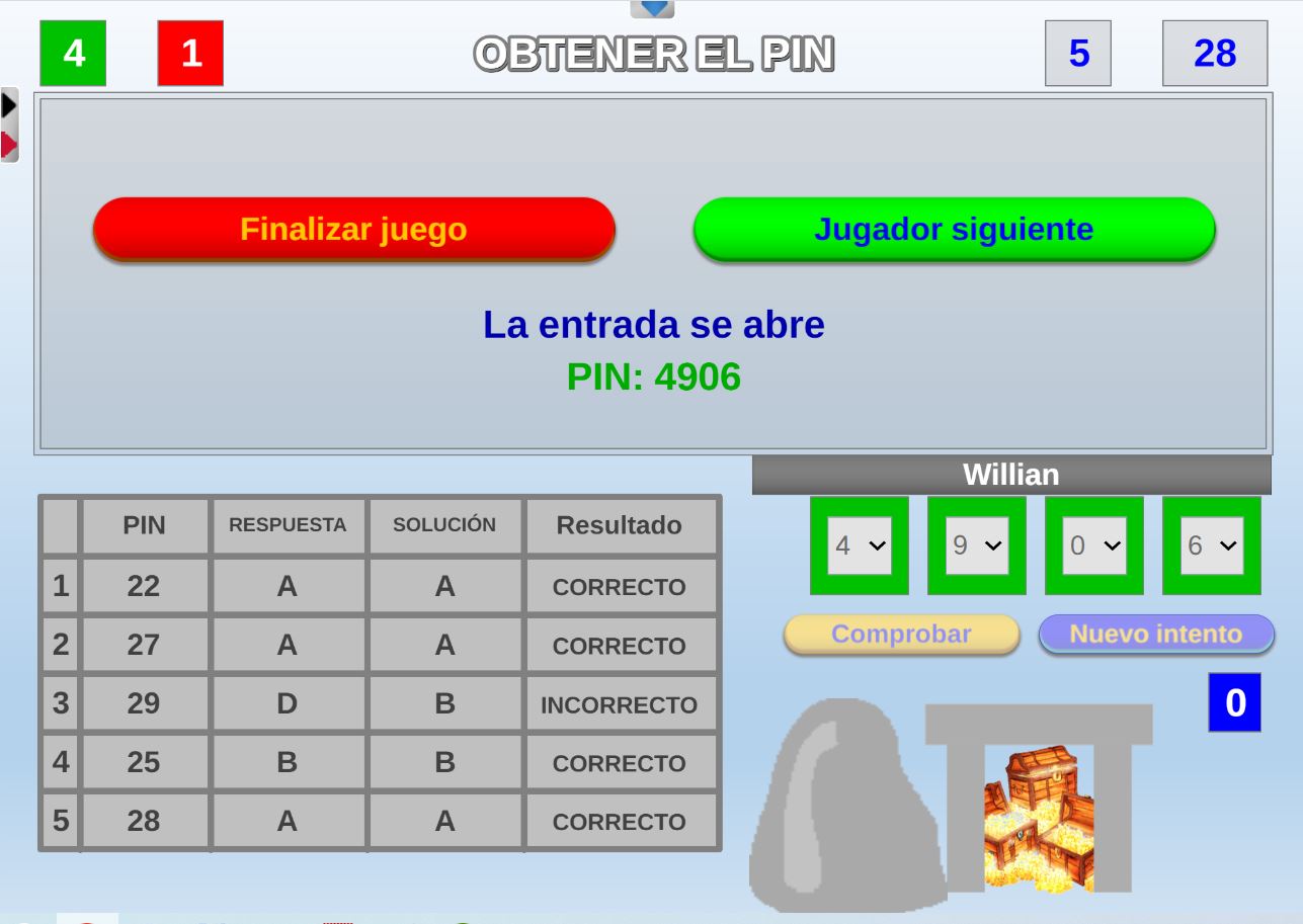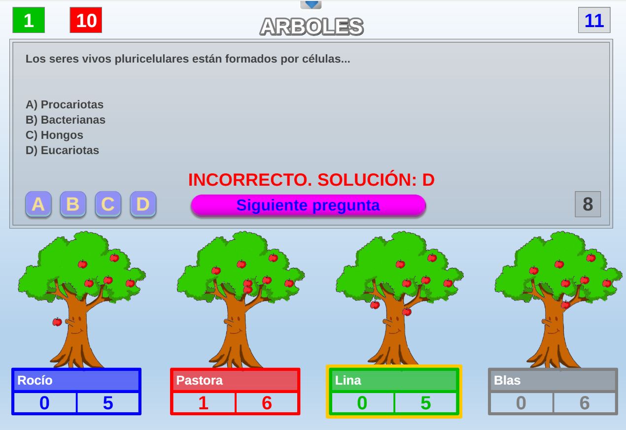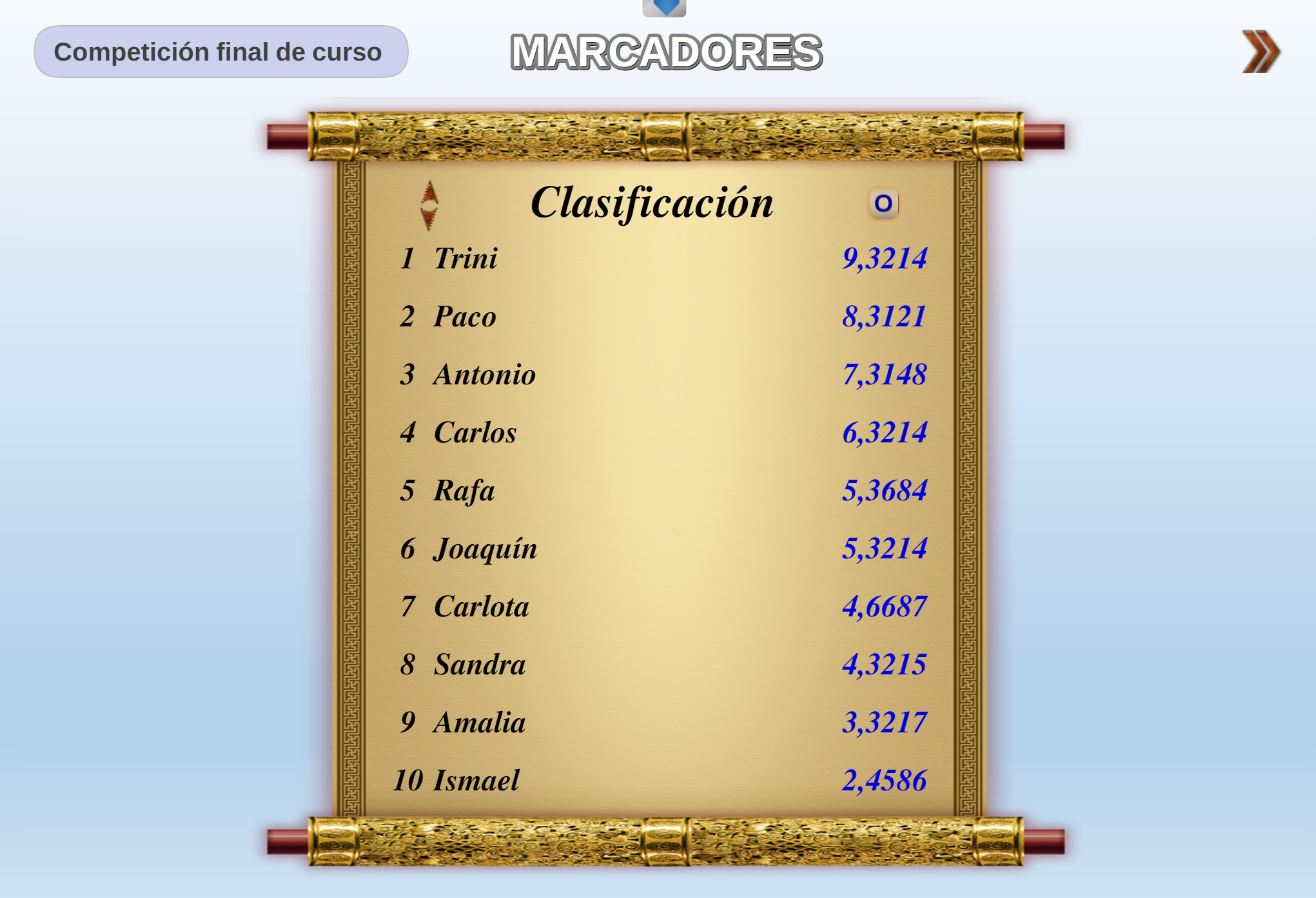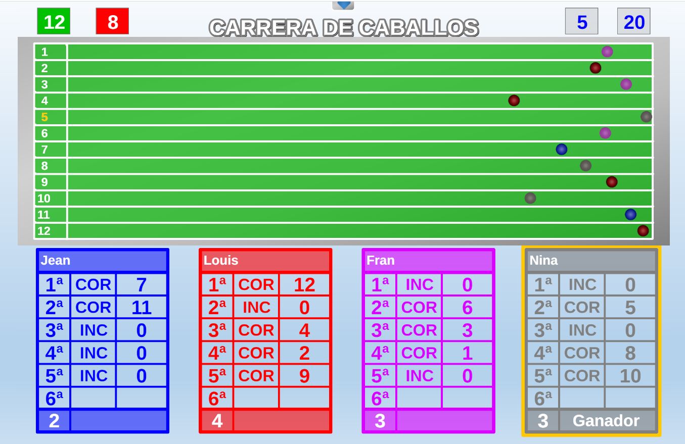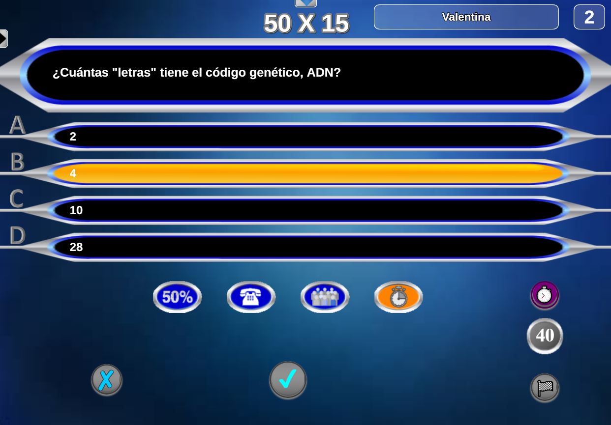 Juego en el que quedará como primer clasificado, aquel que más respuestas correctas consiga. Participan un total de 8 jugadores y el número de preguntas es modulable.