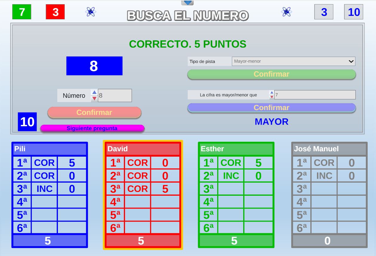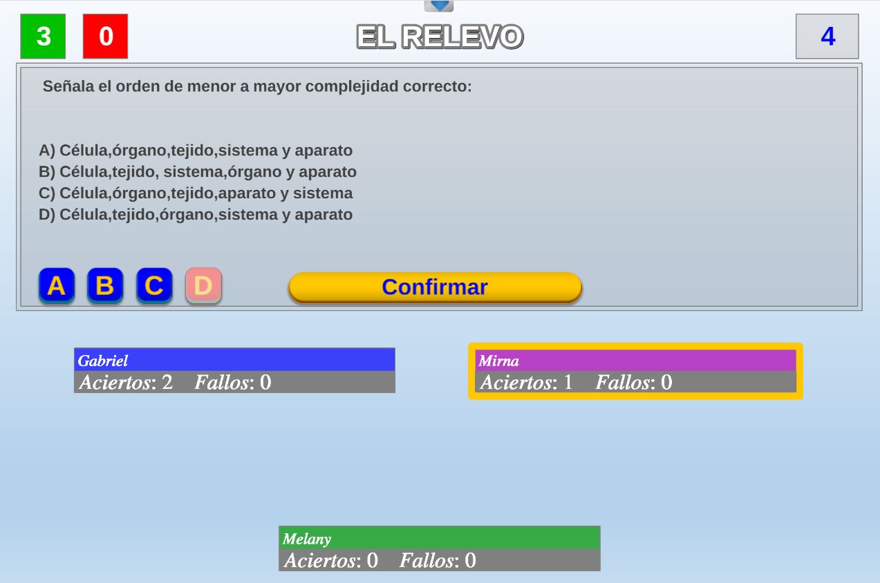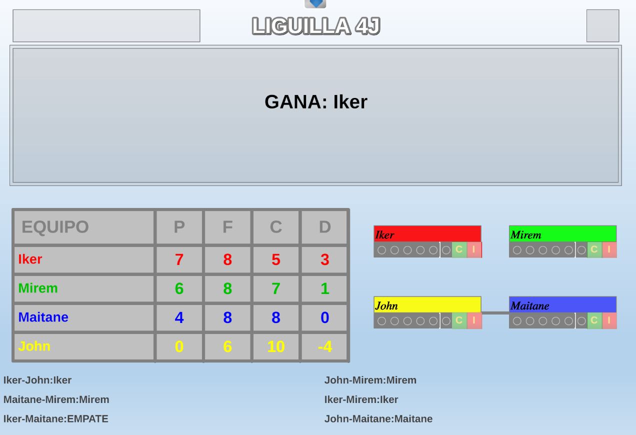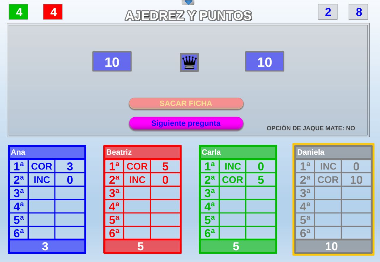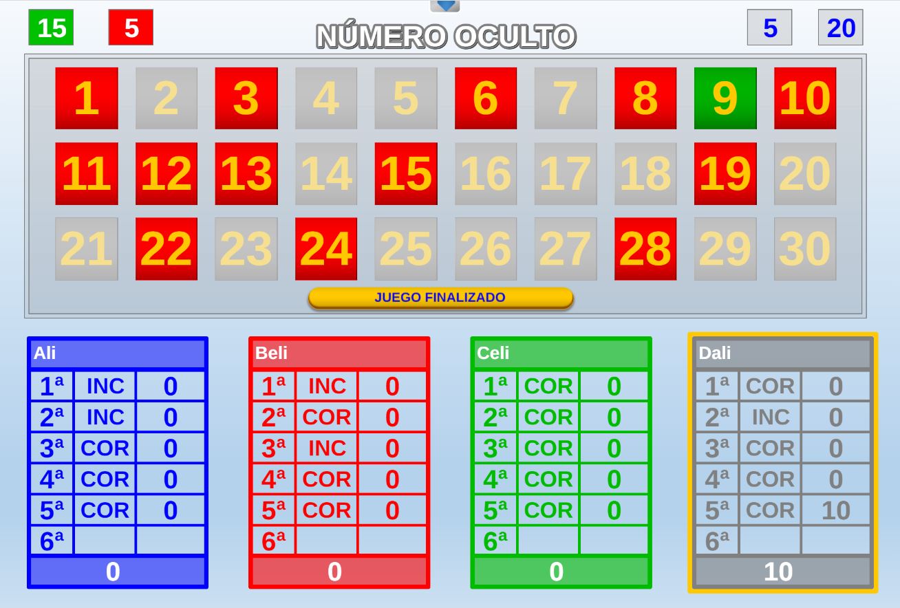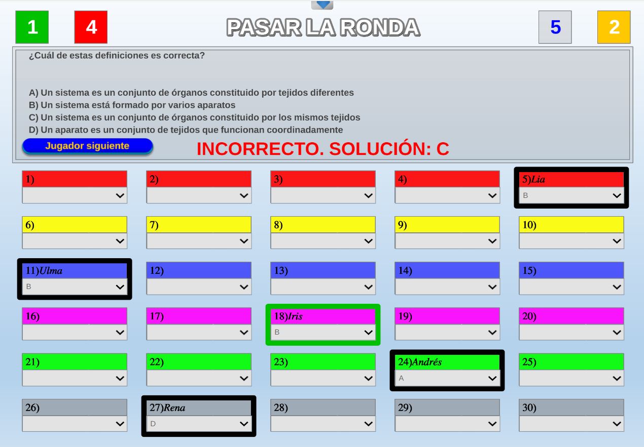 Juego en el que quedará como primer clasificado, aquel que más respuestas correctas consiga. Participan un total de 8 jugadores y el número de preguntas es modulable.