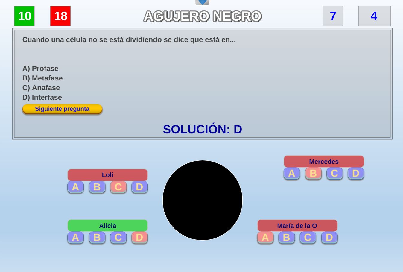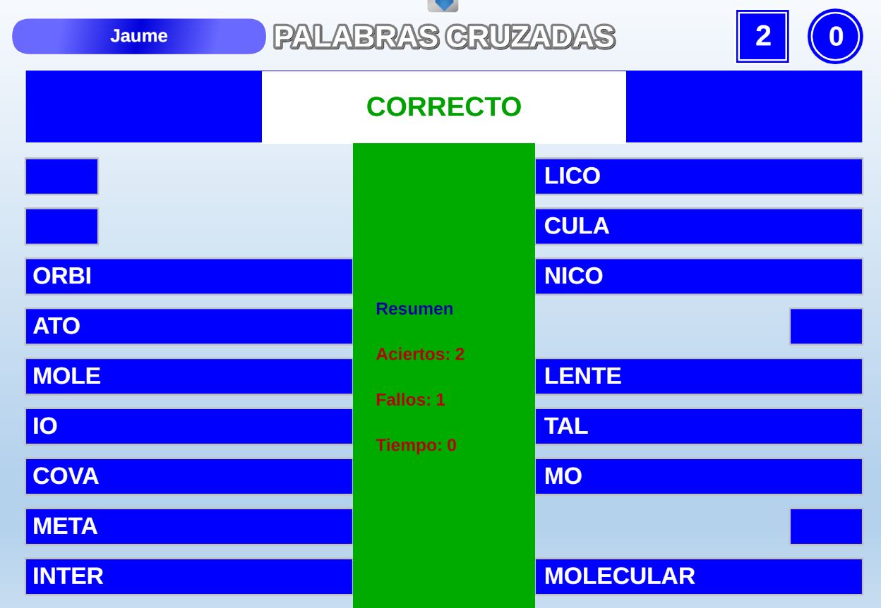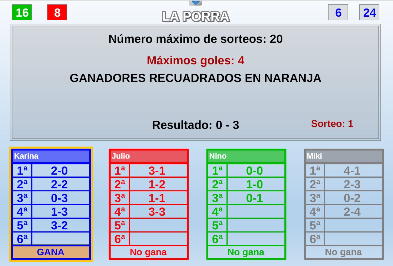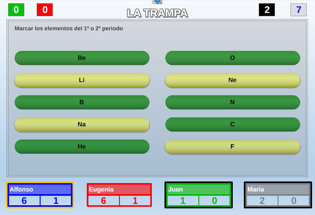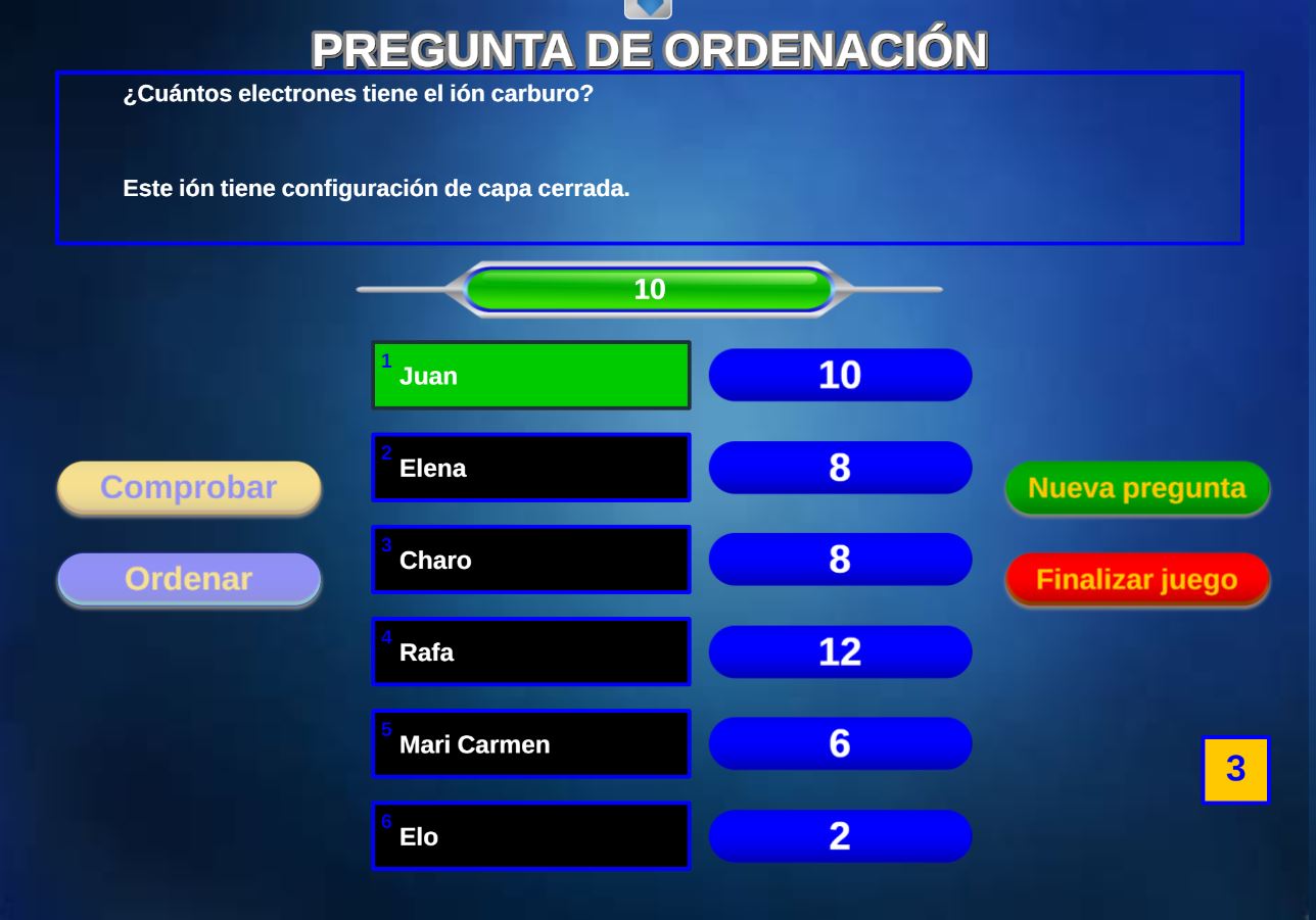 Juego en el que quedará como primer clasificado, aquel que más respuestas correctas consiga. Participan un total de 8 jugadores y el número de preguntas es modulable.