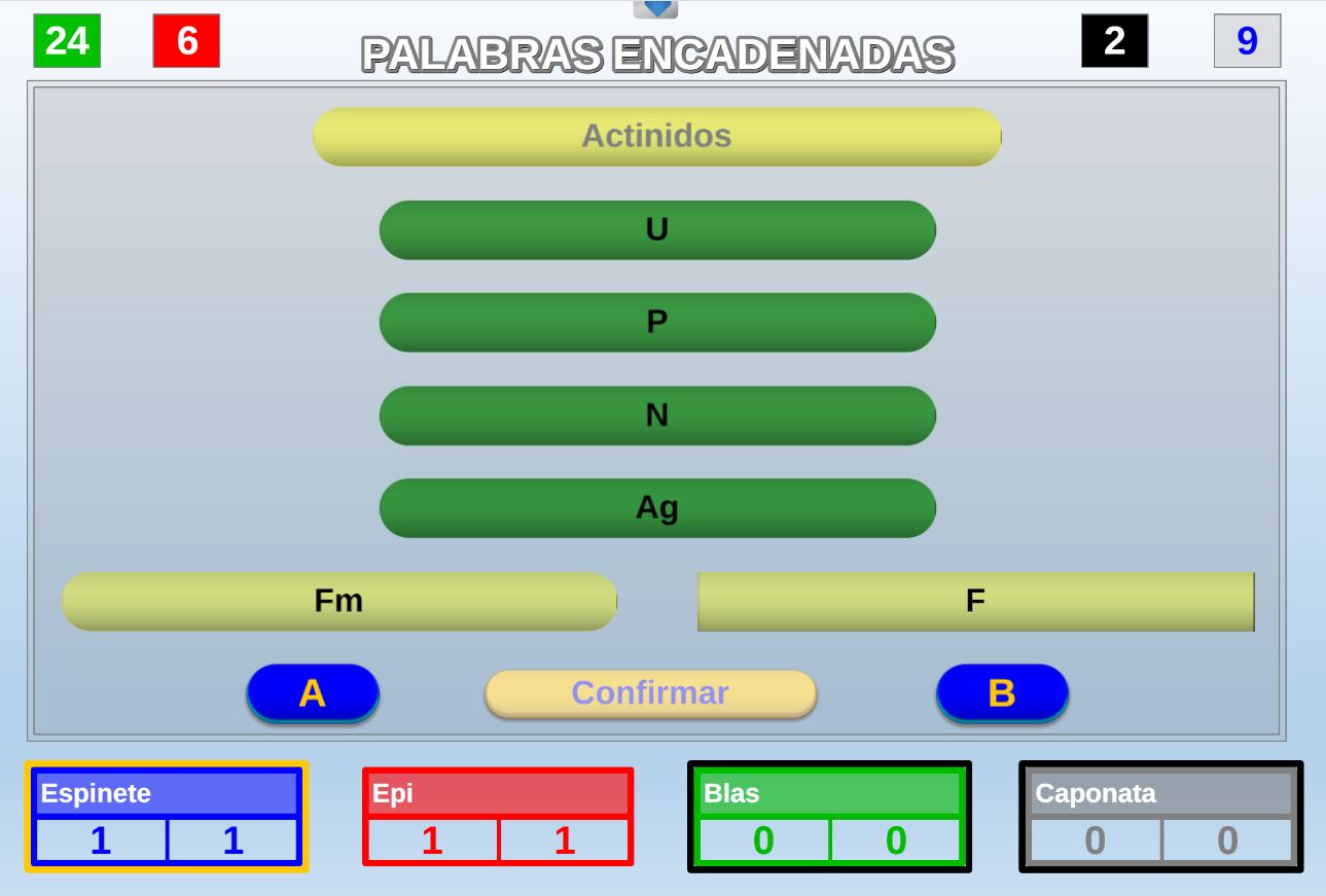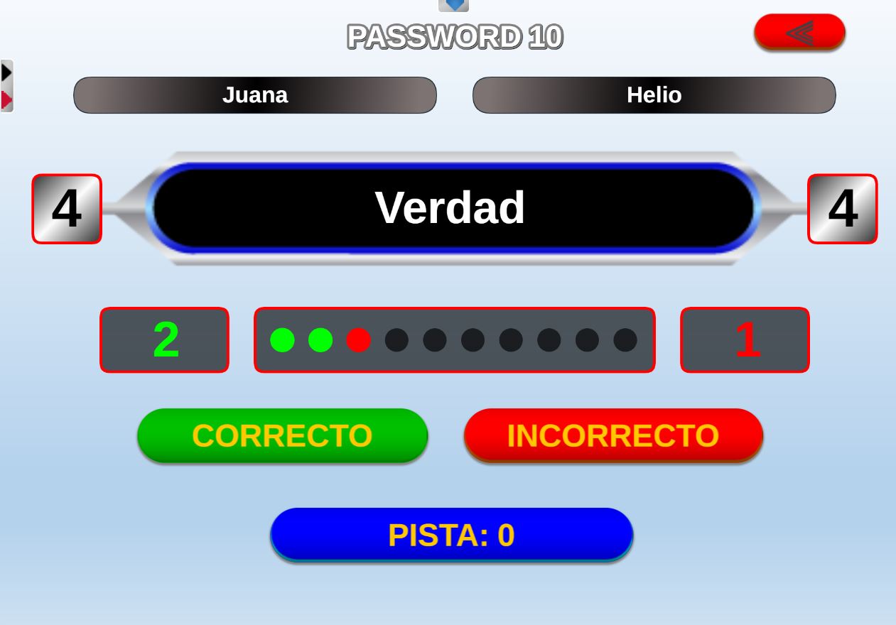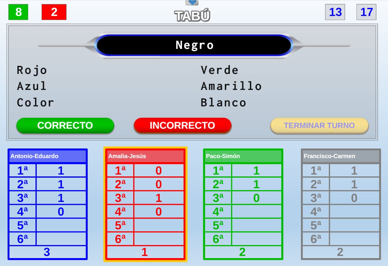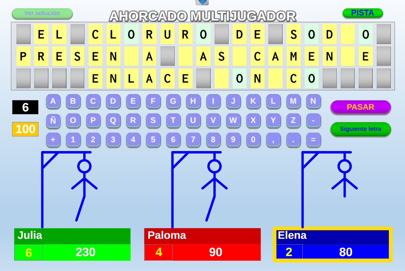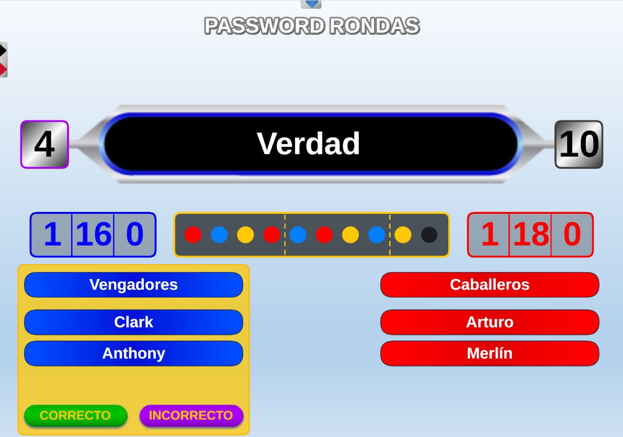 Juego en el que cada equipo participante jugará 6 rondas o palabras. Gana el equipo que al final de todas las rondas más palabras haya acertado.