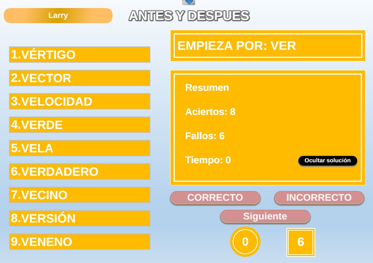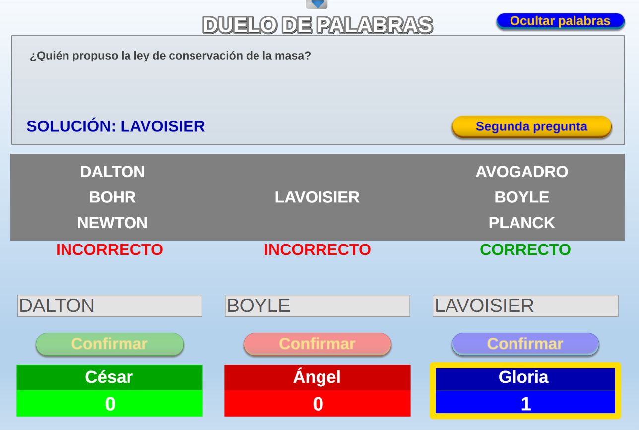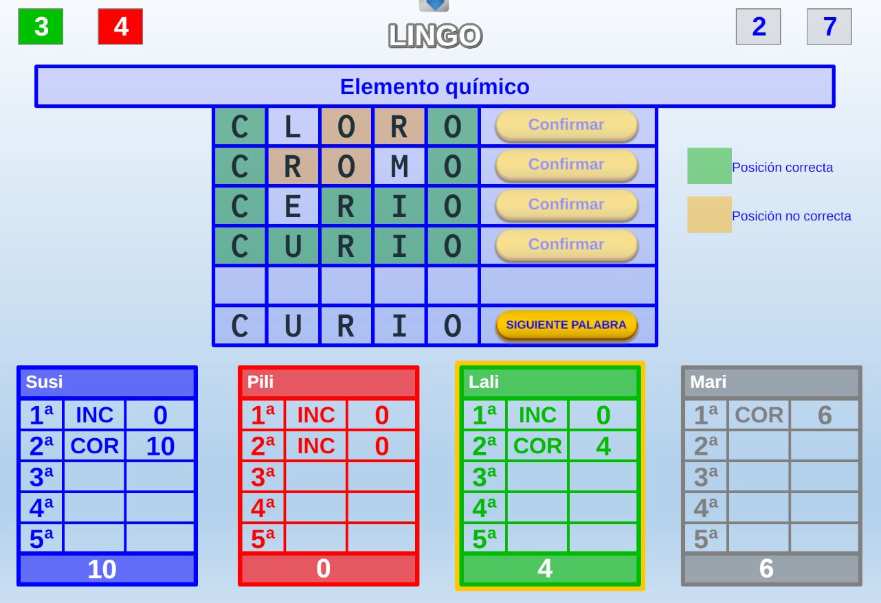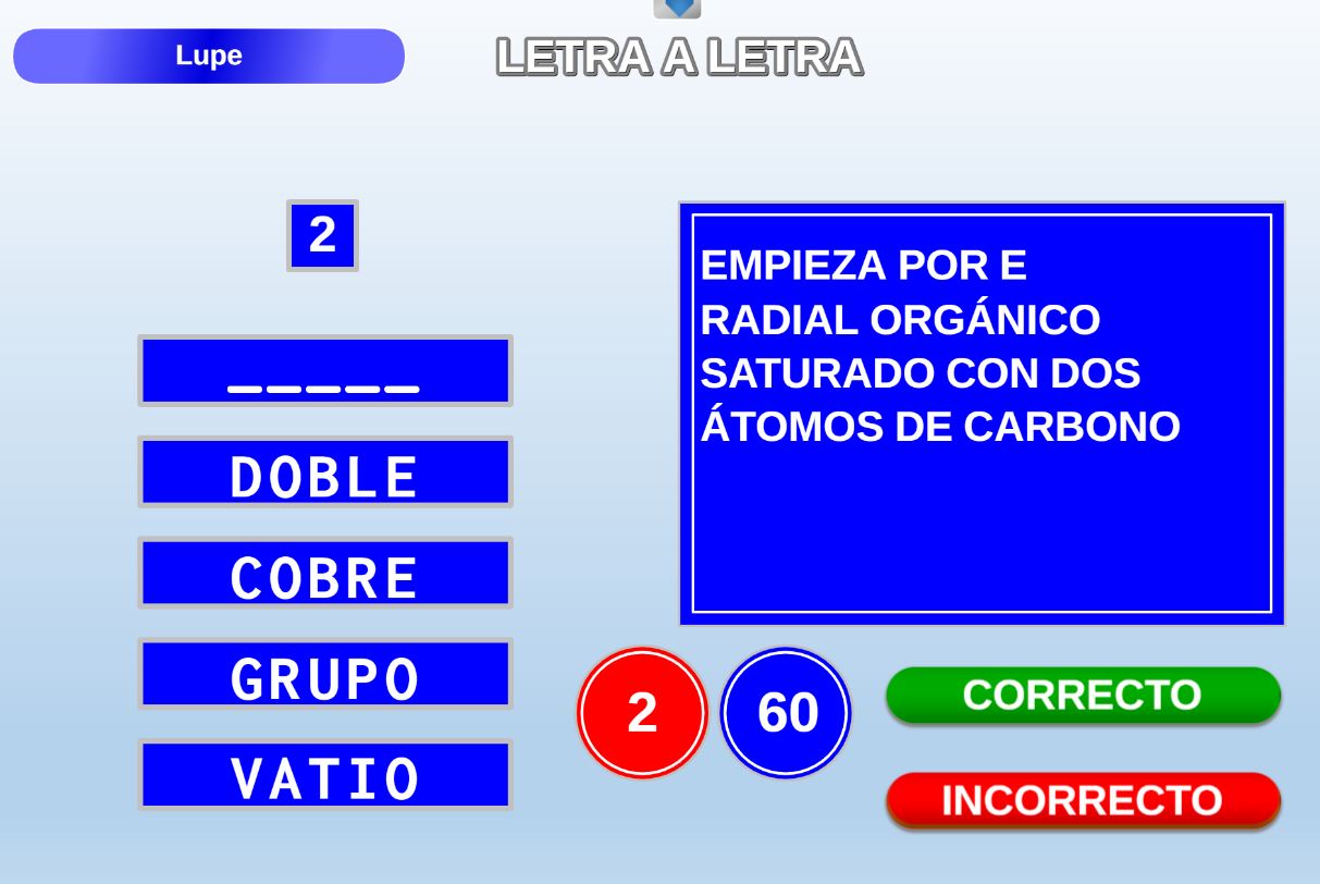Juego en el que cada equipo participante jugará 6 rondas o palabras. Gana el equipo que al final de todas las rondas más palabras haya acertado.