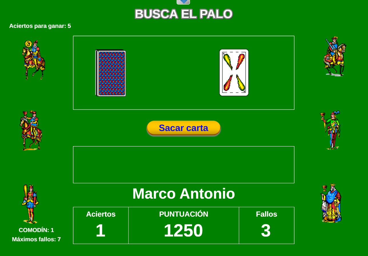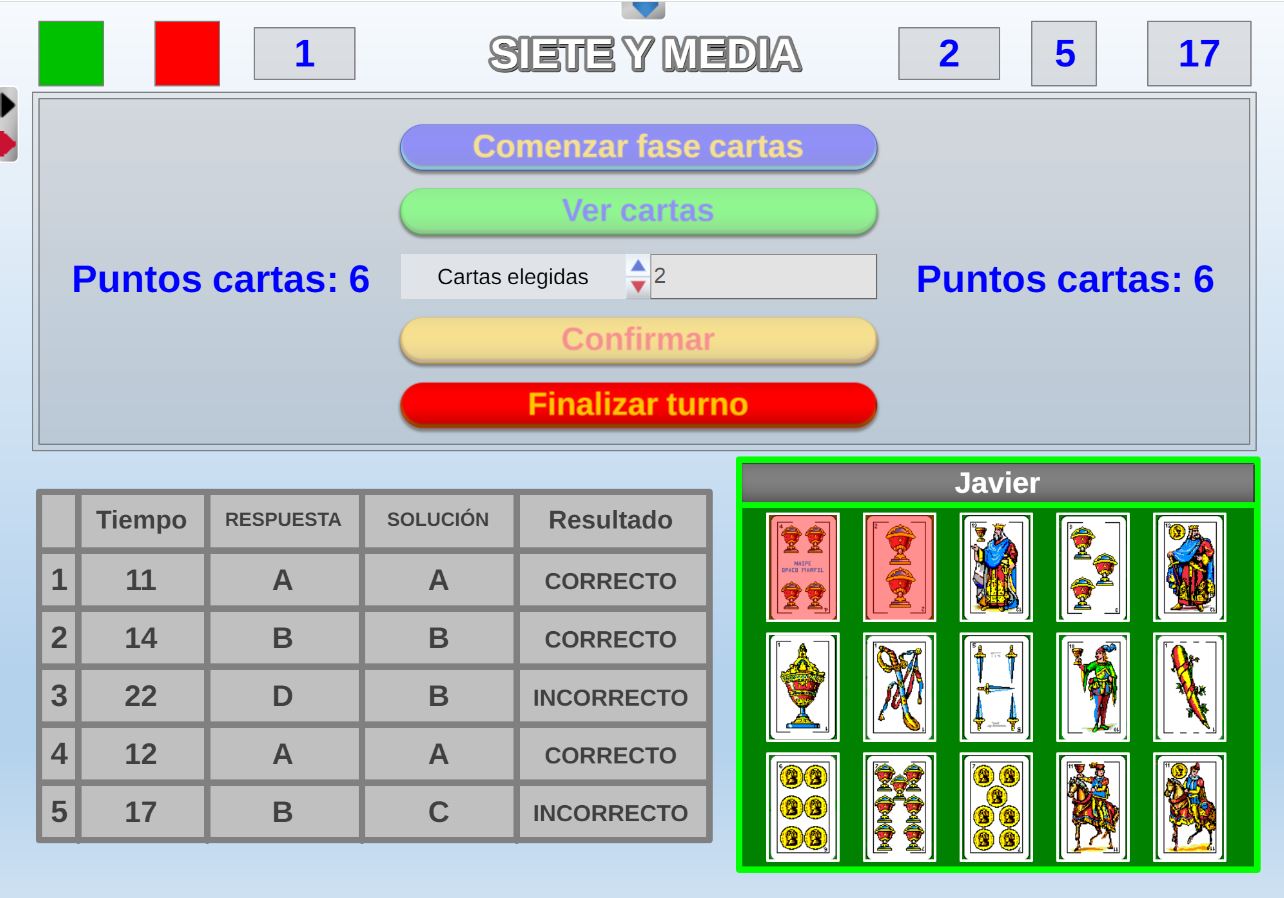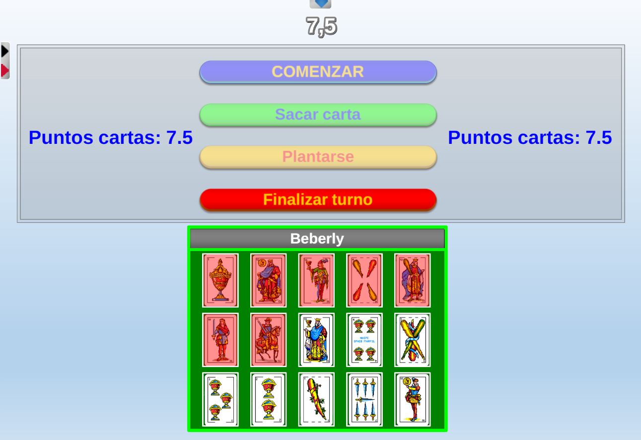 Juego que consiste en intentar sacar de una baraja española, una puntuación lo más cercana posible a siete puntos y medio, sin pasarse.