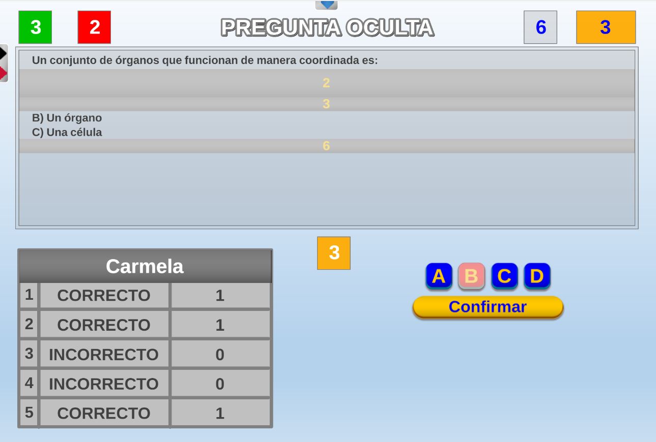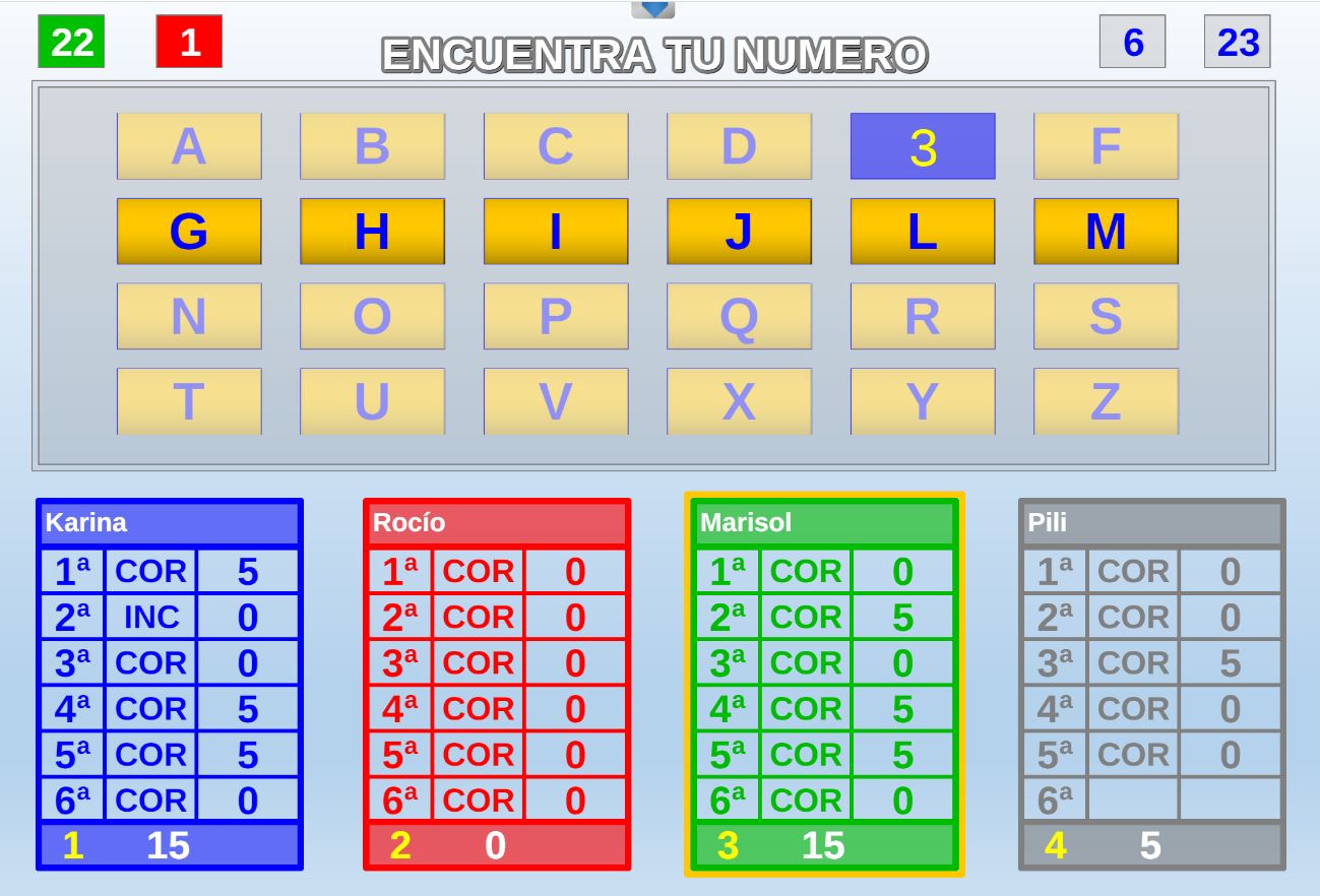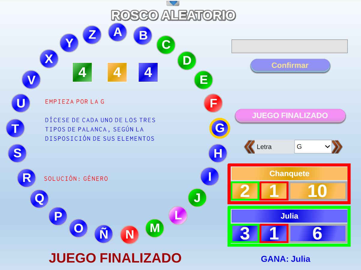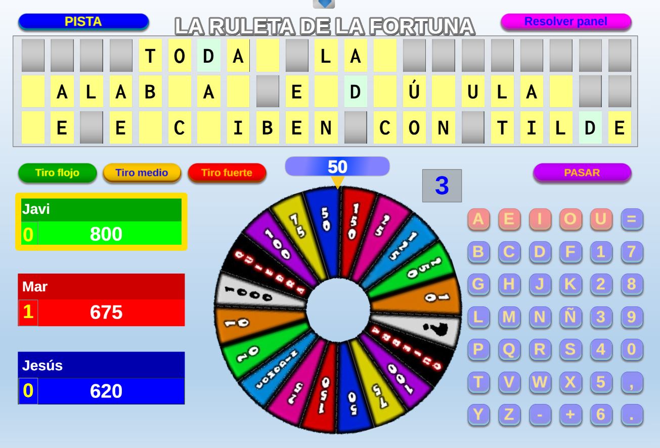 Juego en el que los jugadores son seleccionados aleatoriamente mediante una ruleta. Objetivo: acertar el mayor número de preguntas posible y obtener la mayor puntuación.