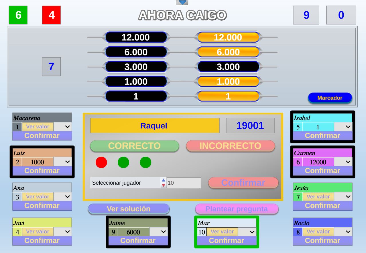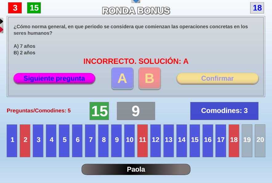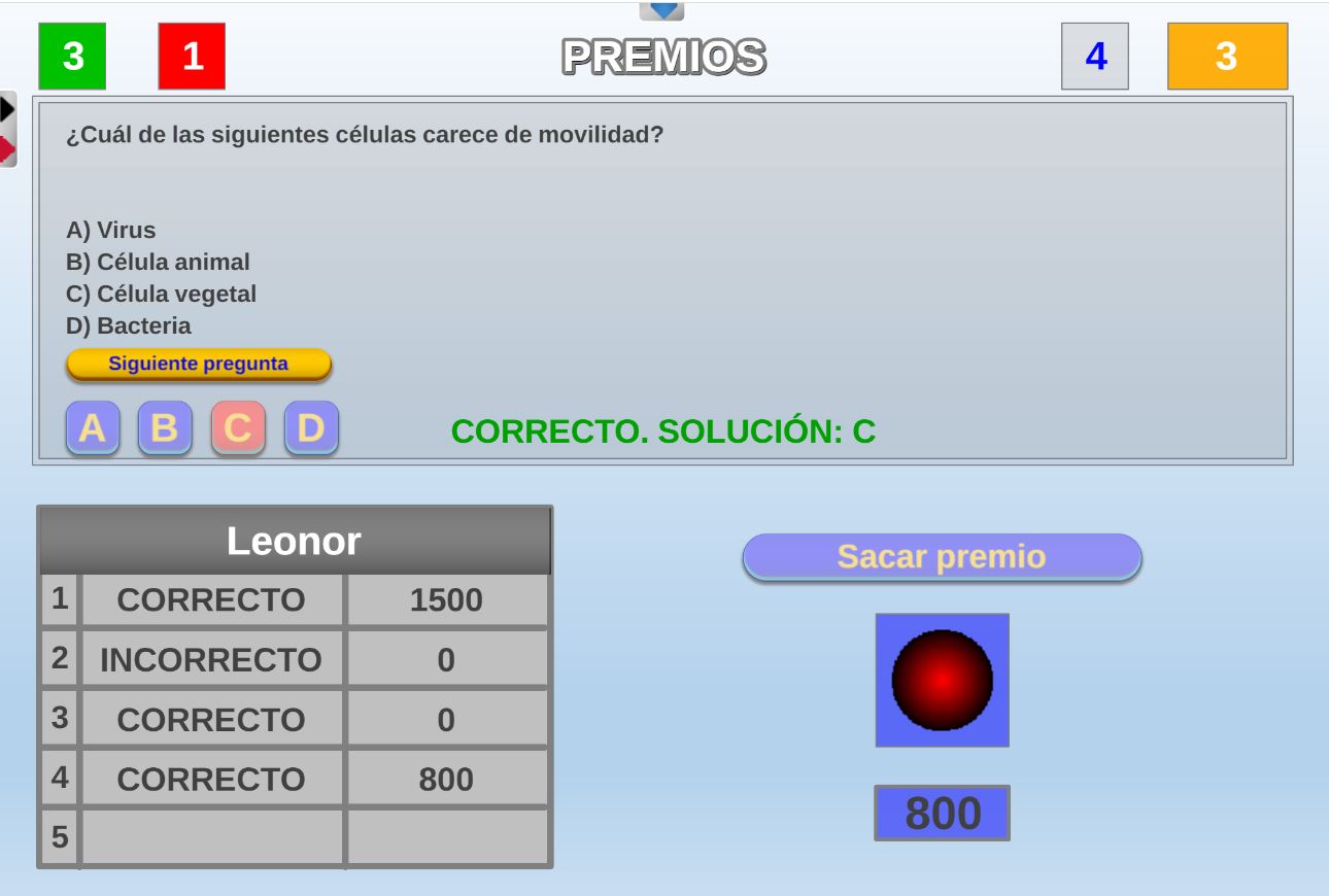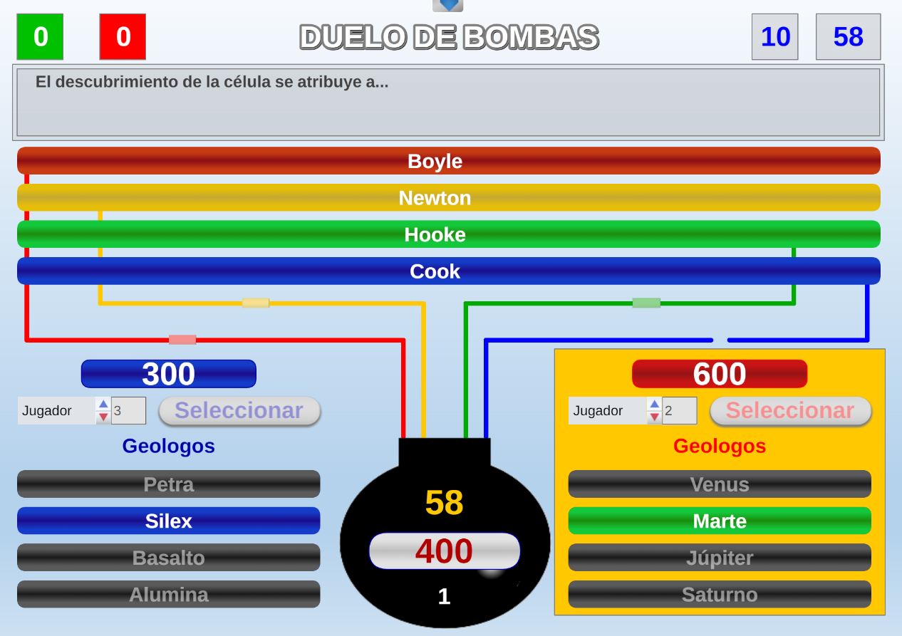 Juego en el que los jugadores son seleccionados aleatoriamente mediante una ruleta. Objetivo: acertar el mayor número de preguntas posible y obtener la mayor puntuación.