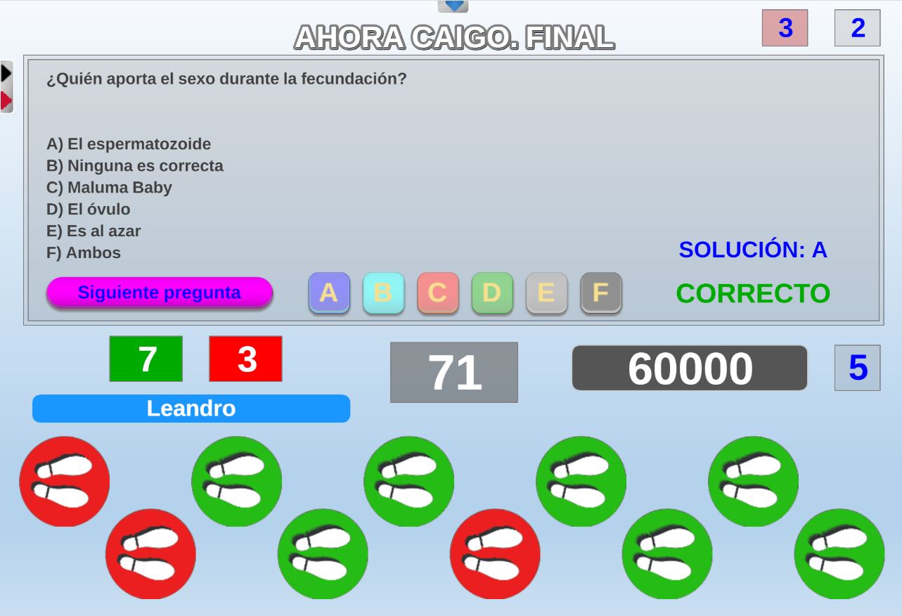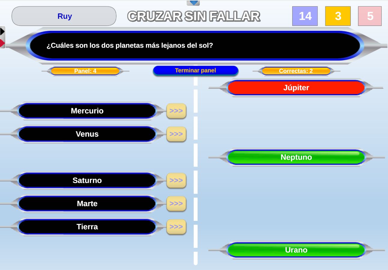 Juego en el que pueden participar hasta 9 jugadores que deberán intentar no caer en las respuestas falsas de los paneles y evitar así ser eliminados.