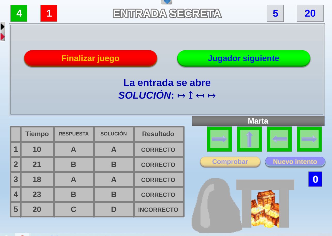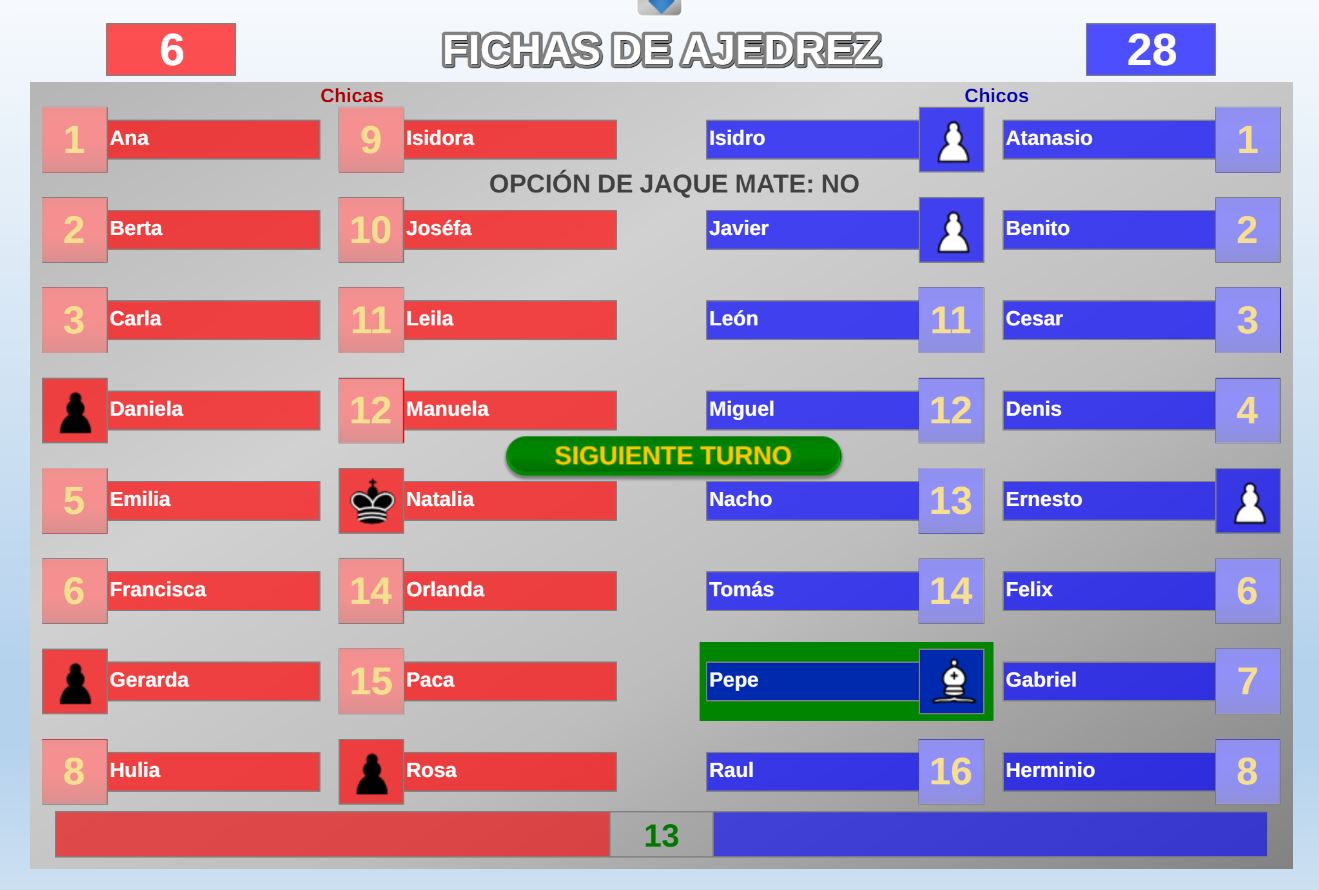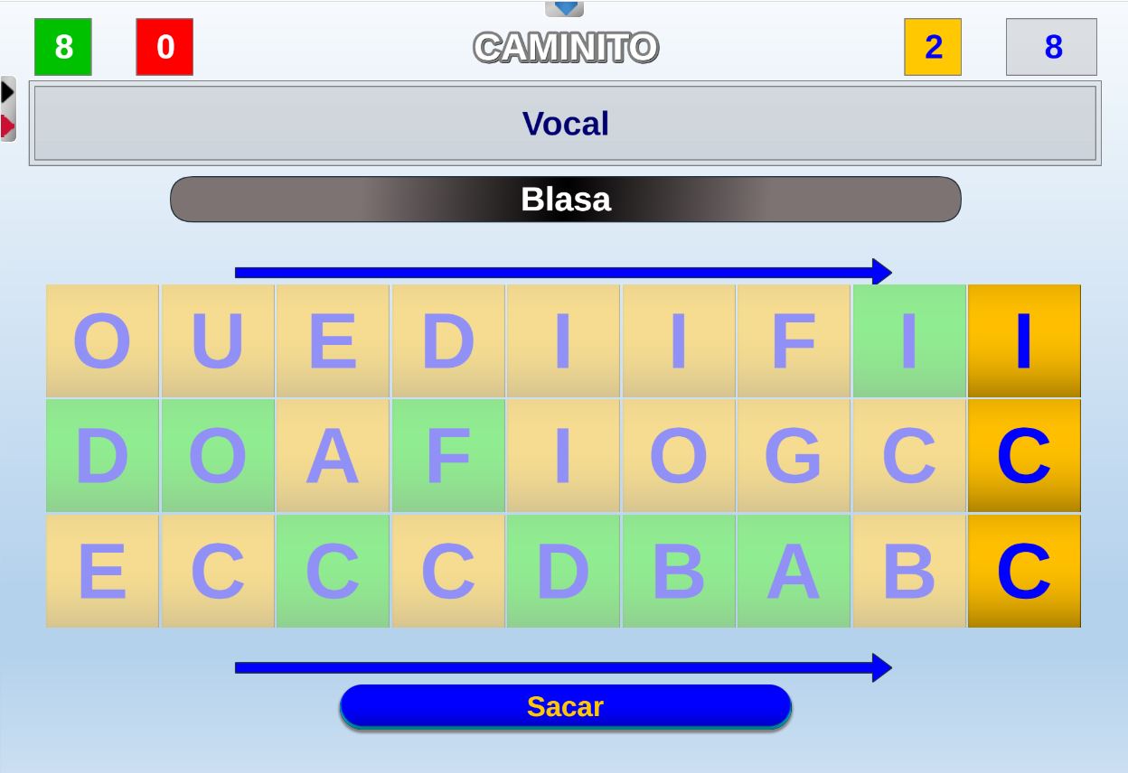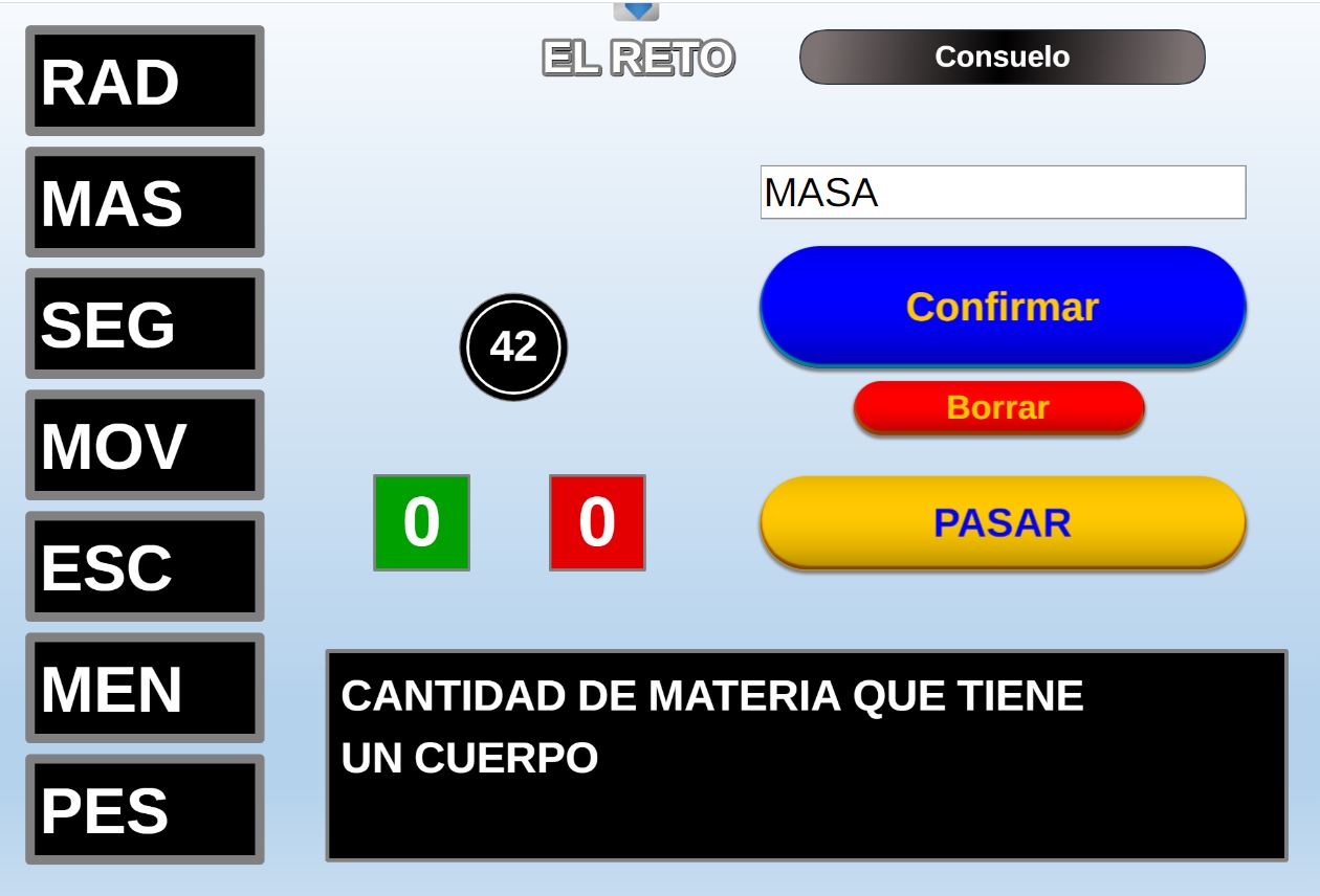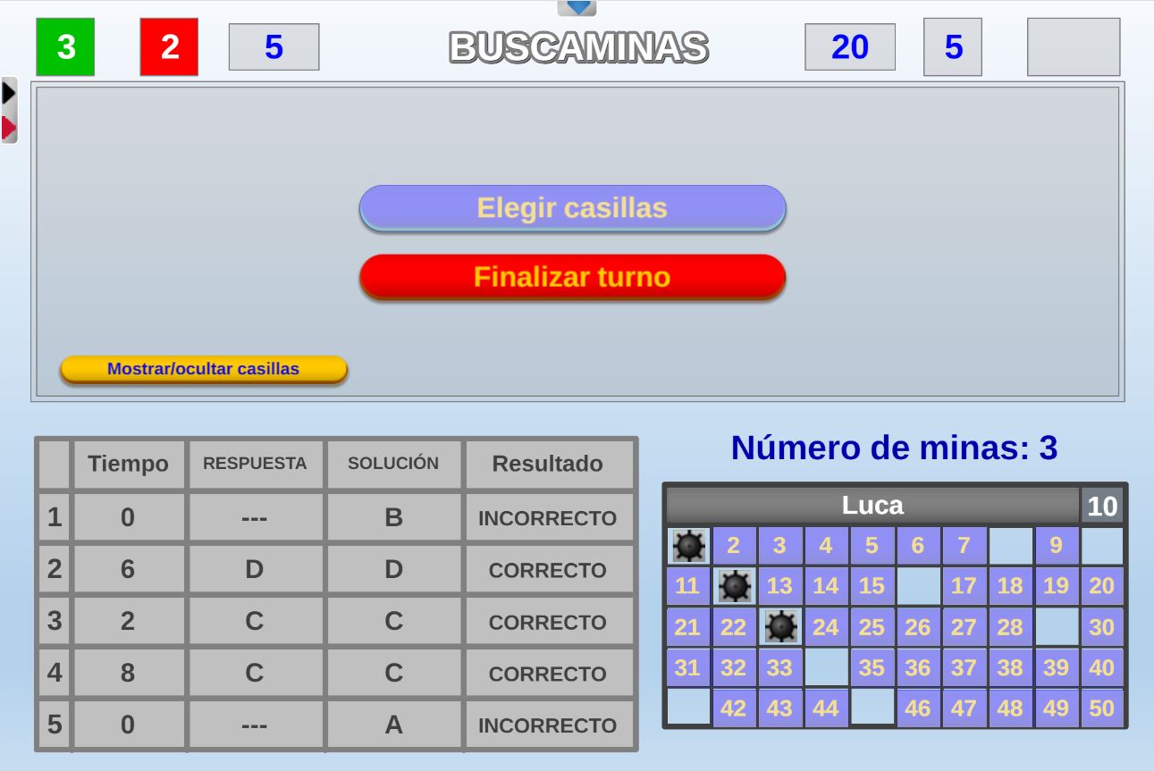 Acceso a la página de configuración inicial. Permite volver a la pantalla de configuración inicial para realizar los cambios que se deseen. Después, al pulsar en el botón "Jugar" se continúa la partida en el punto en que estaba.