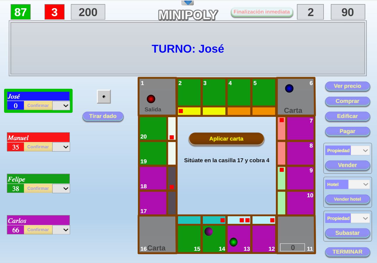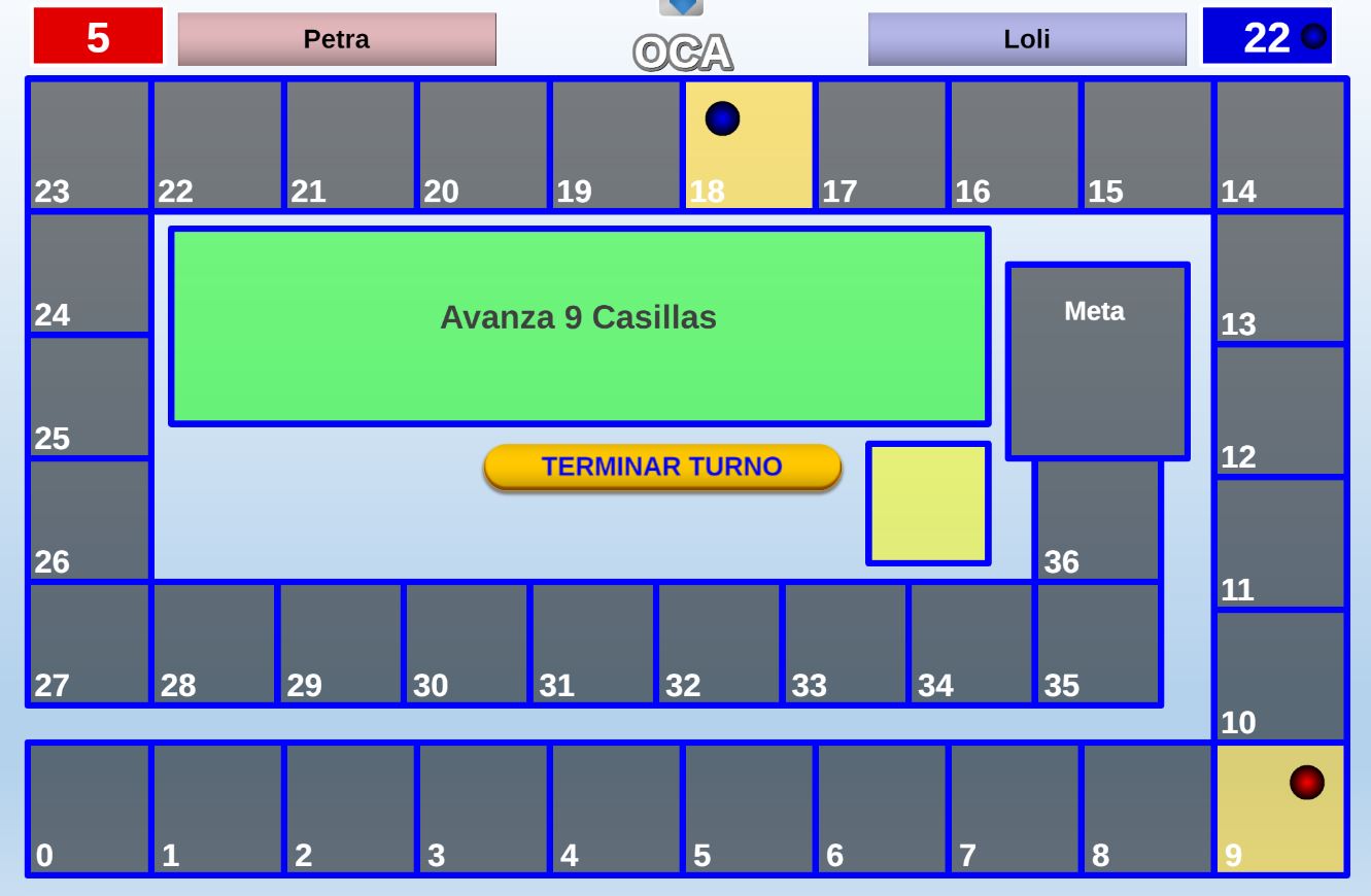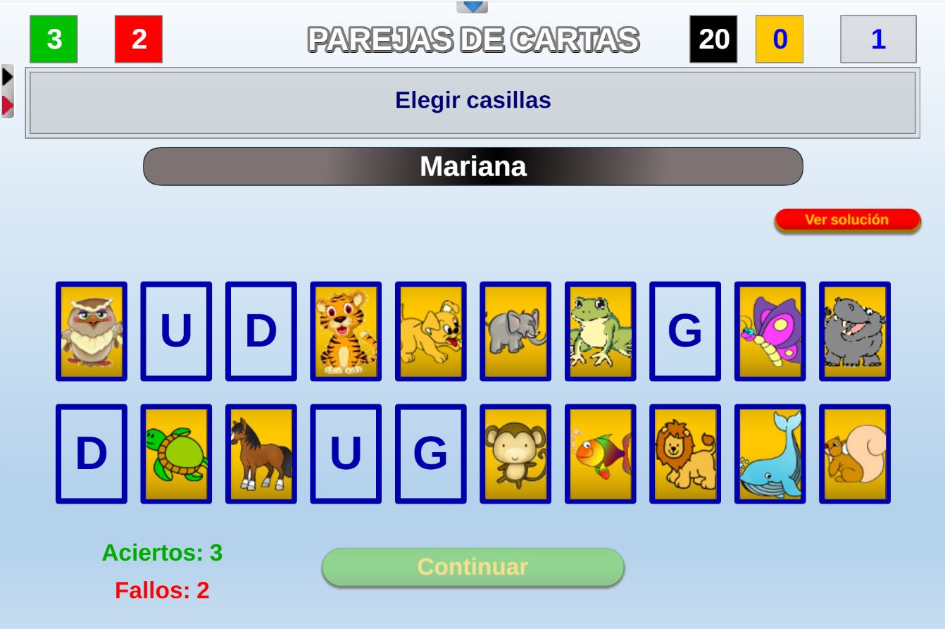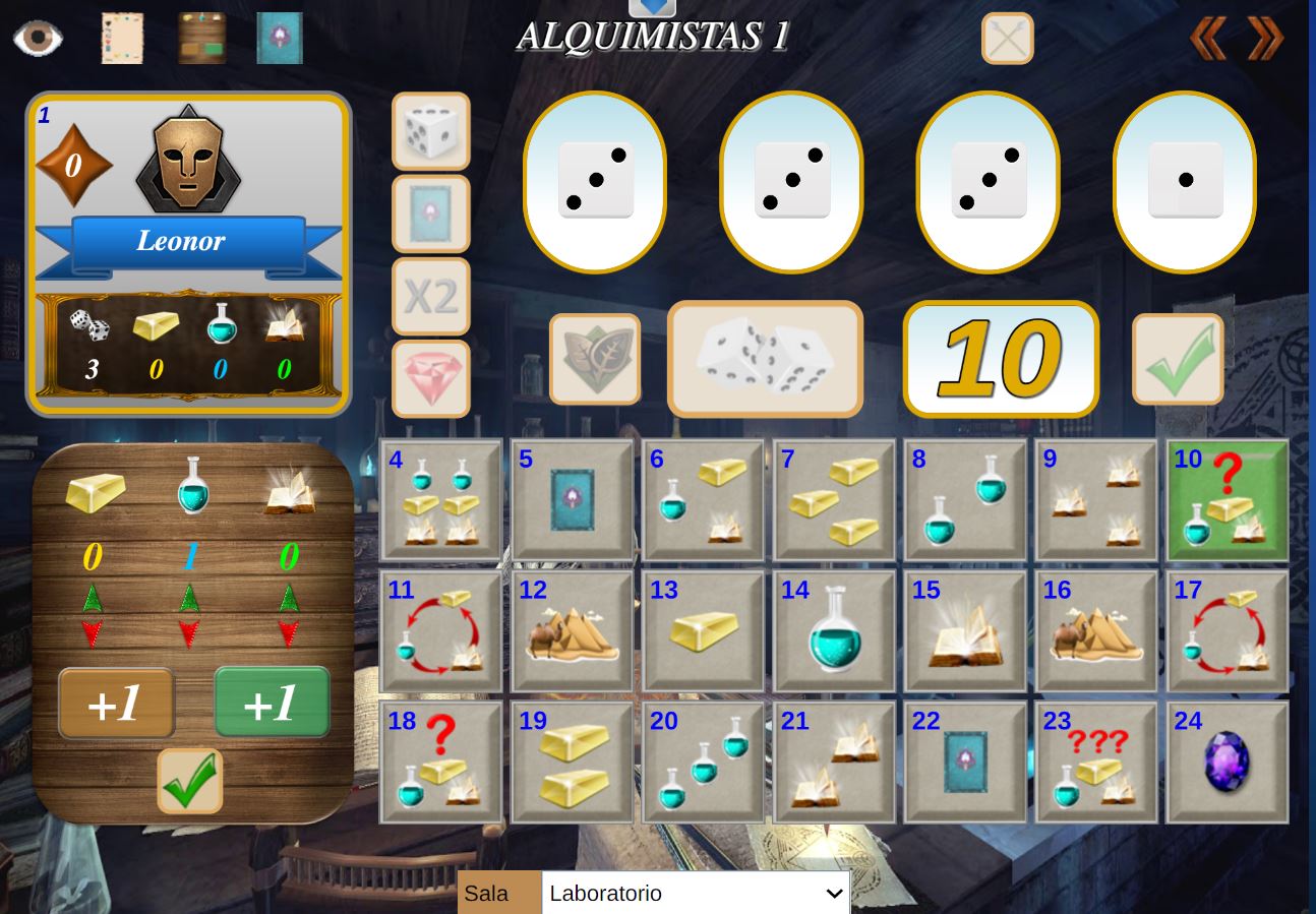 Acceso a la página de configuración inicial. Permite volver a la pantalla de configuración inicial para realizar los cambios que se deseen. Después, al pulsar en el botón "Jugar" se continúa la partida en el punto en que estaba.