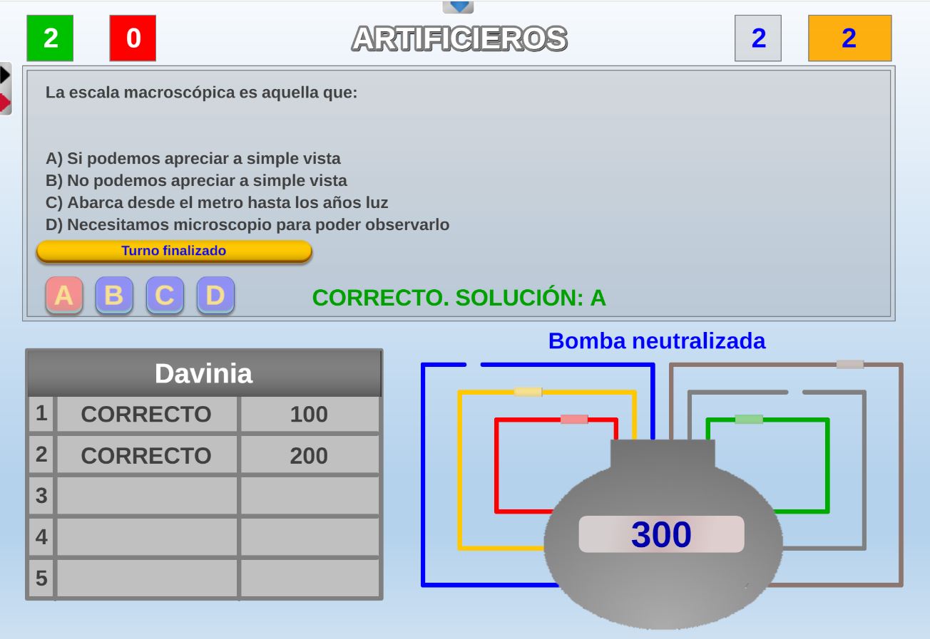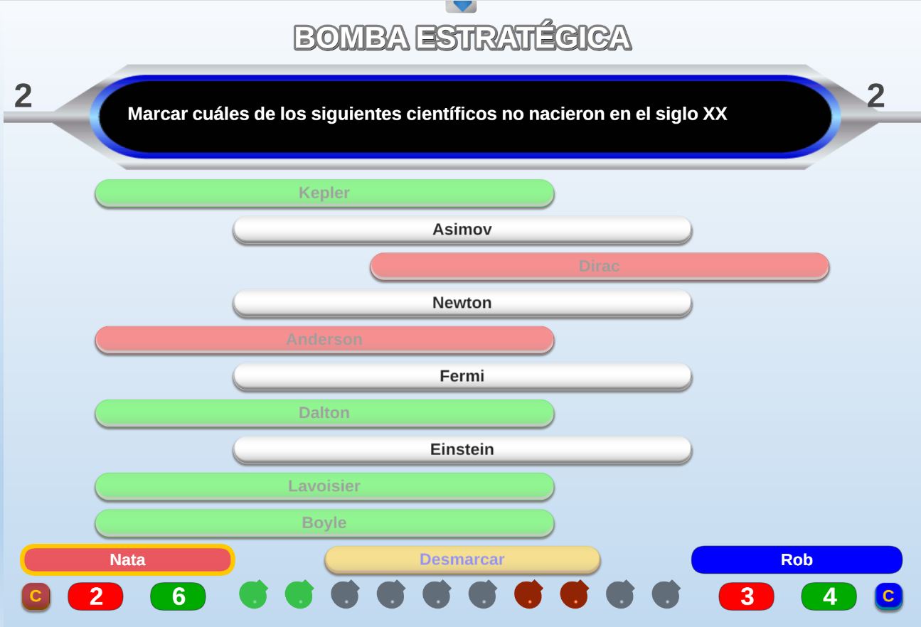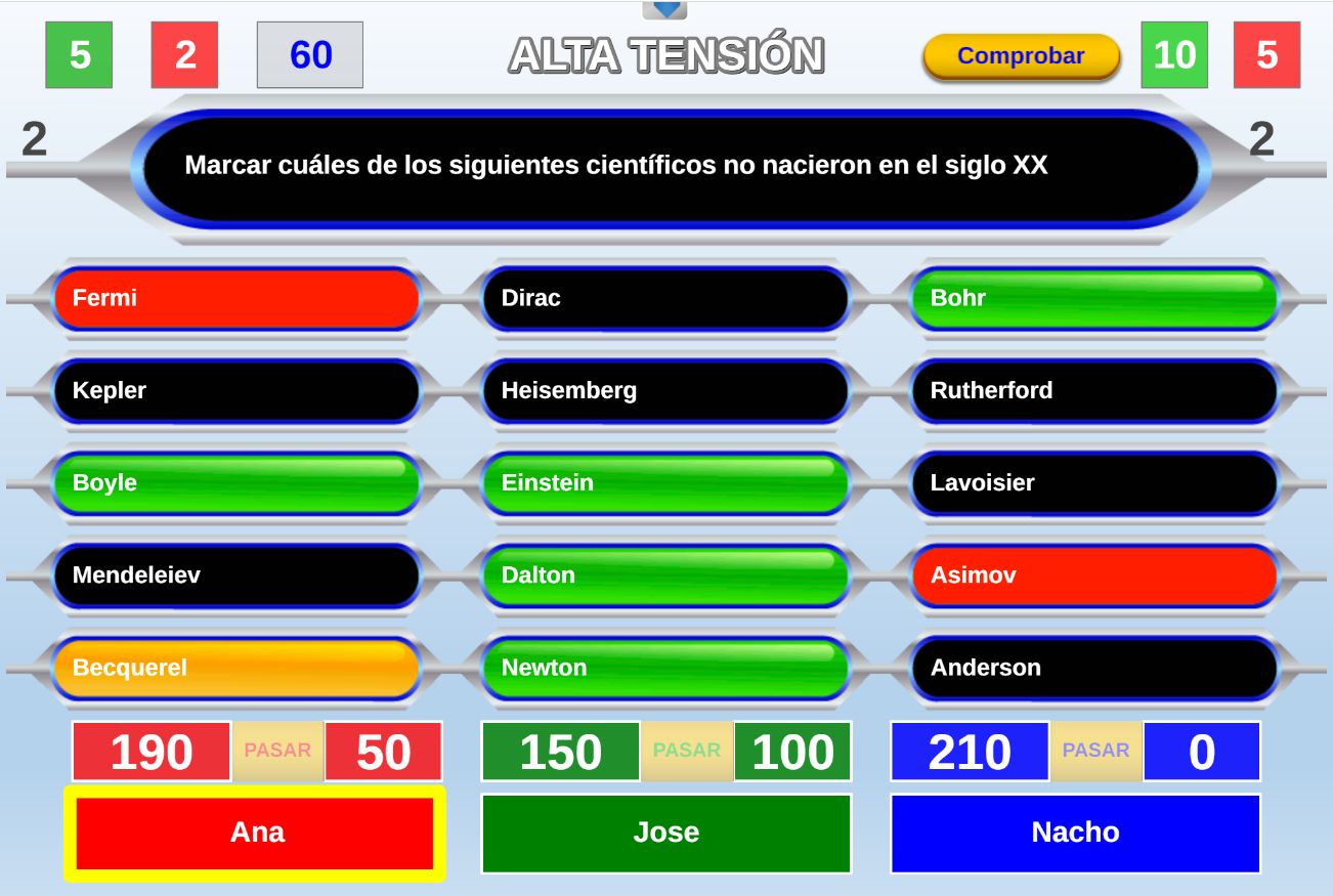 Juego cuyos participantes deberán intentar alcanzar la zona verde del marcador del juego con la máxima puntuación posible y evitar fallar preguntas.