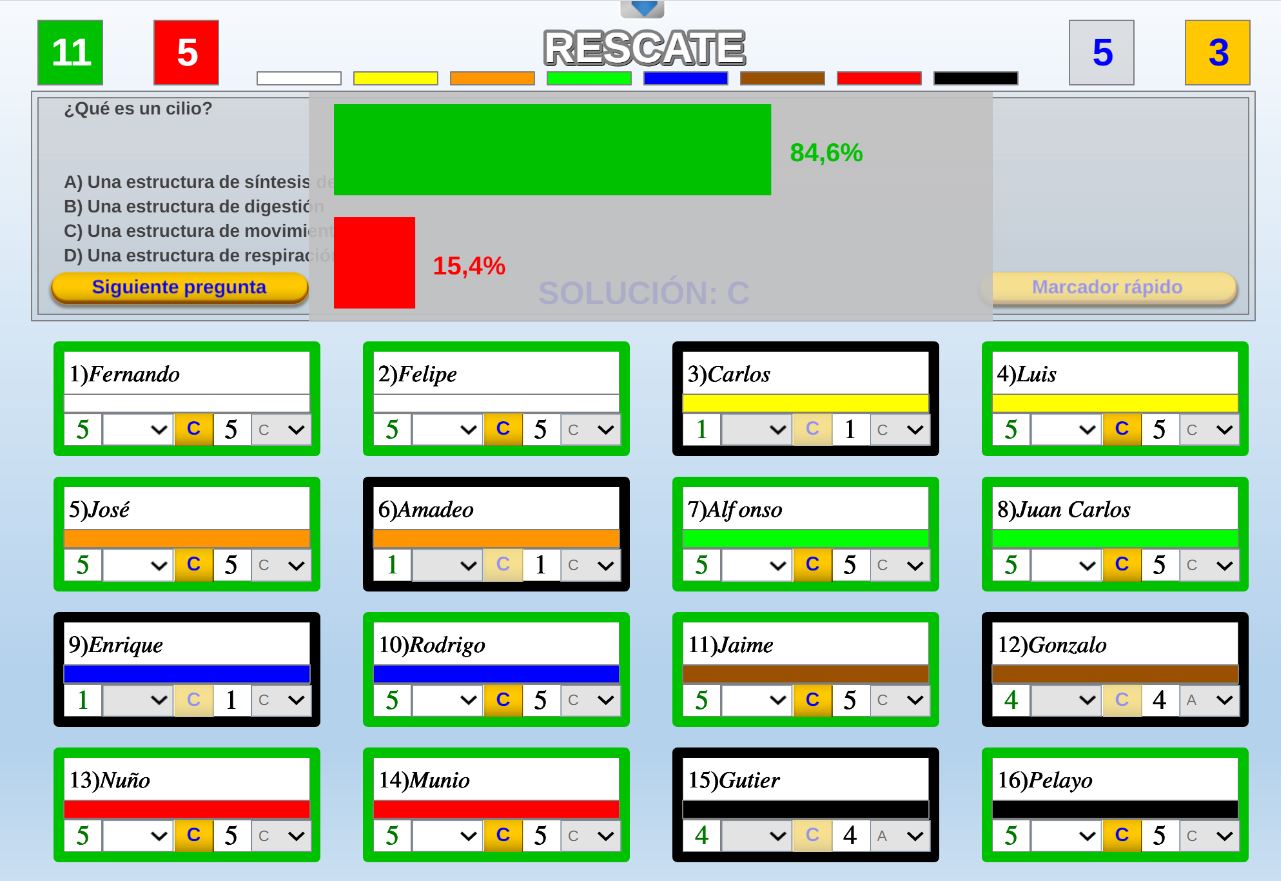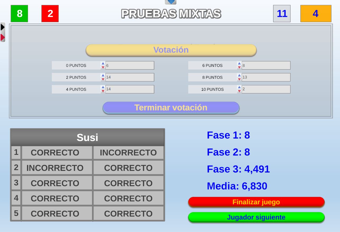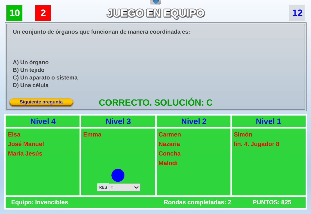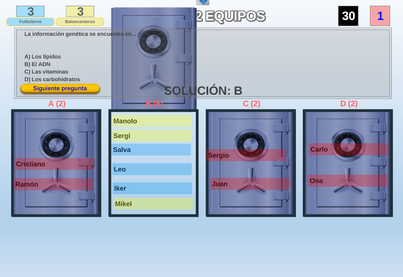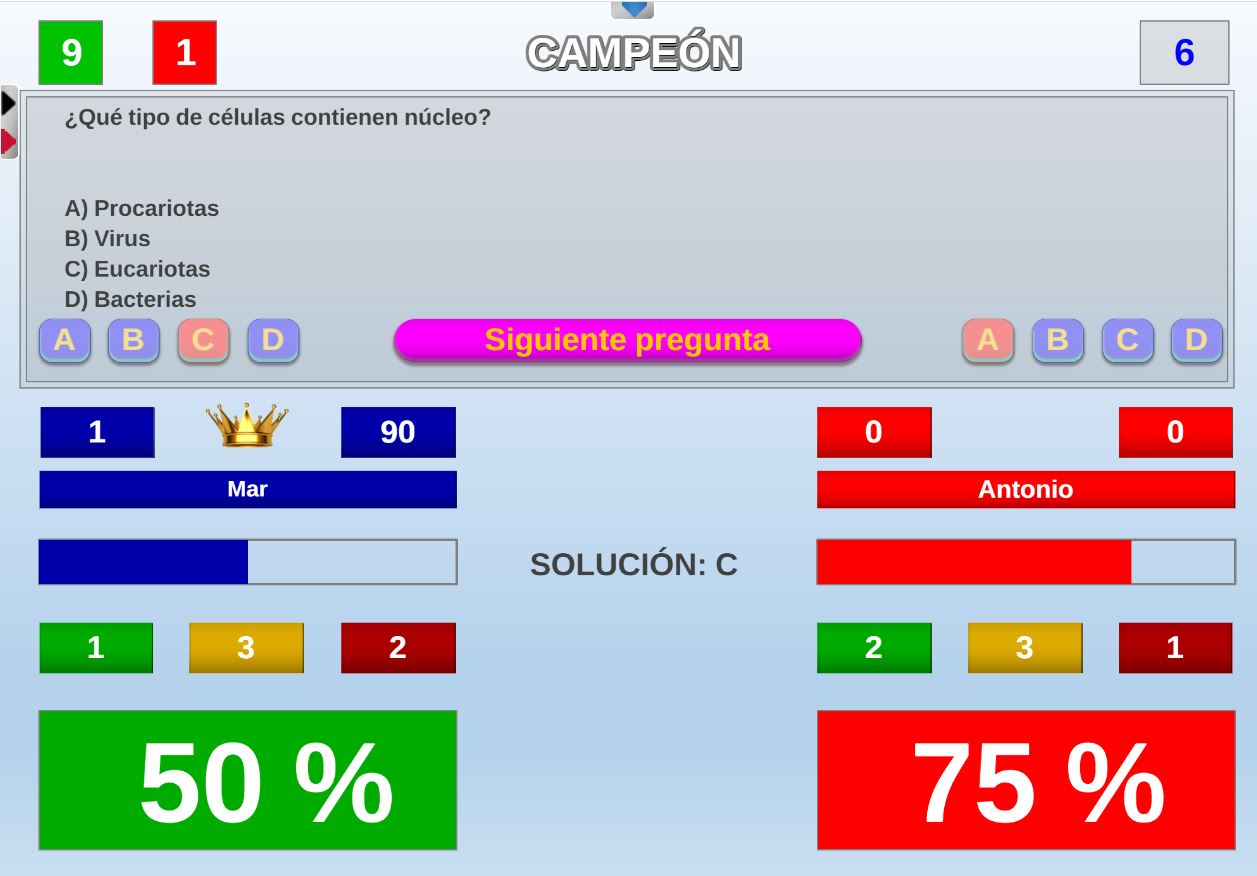 Juego por equipos donde todos los miembros de cada equipo, con su voto, influirá en el resultado final de la respuesta de forma proporcional.