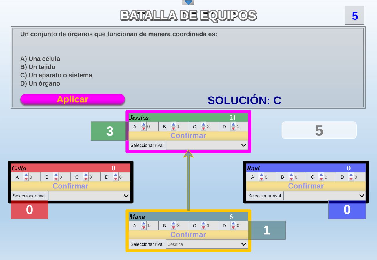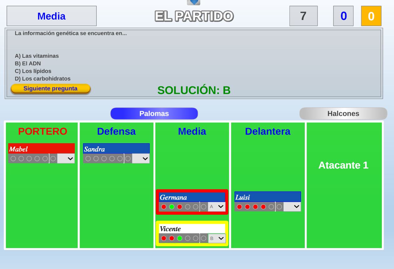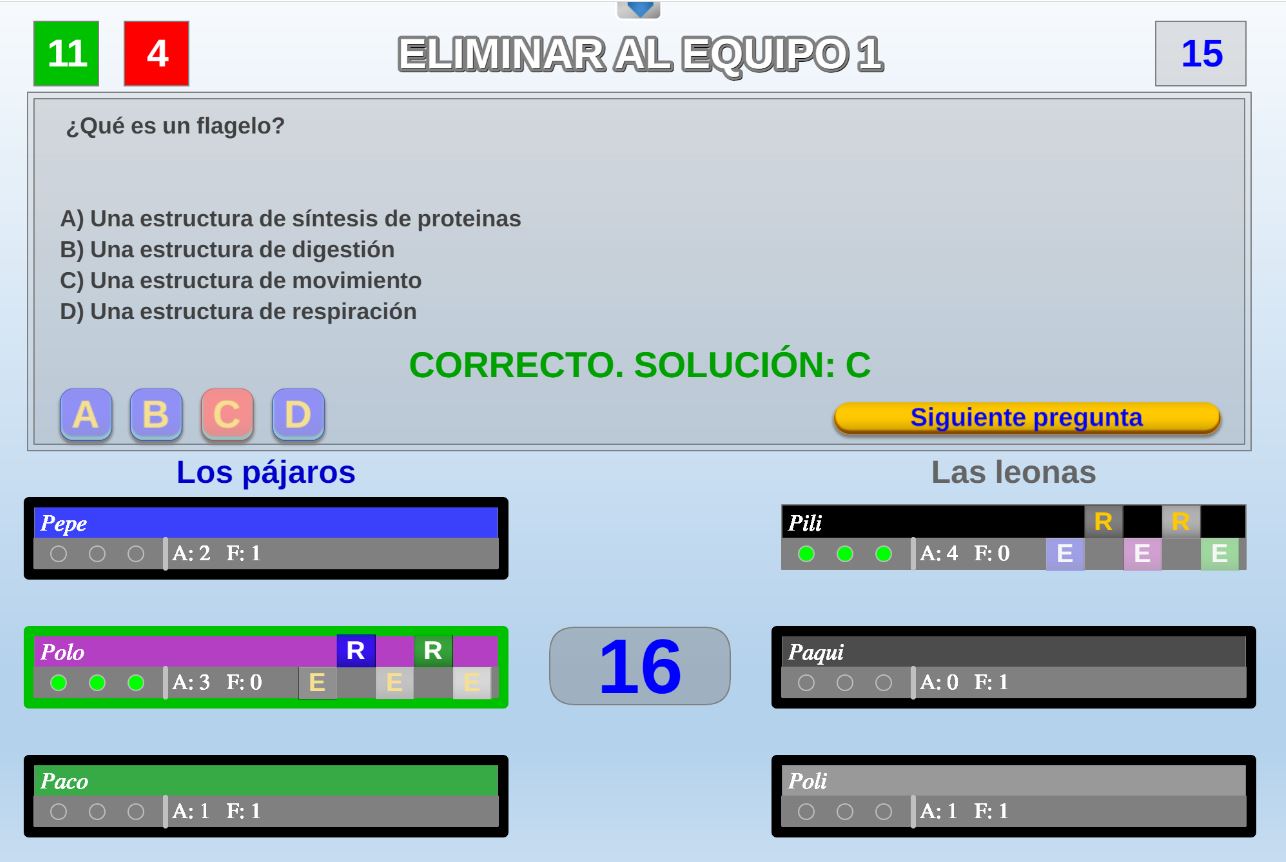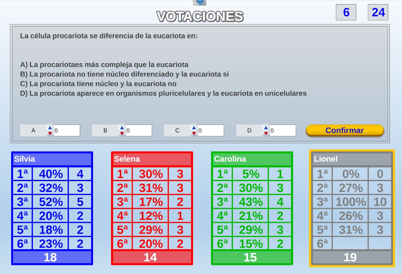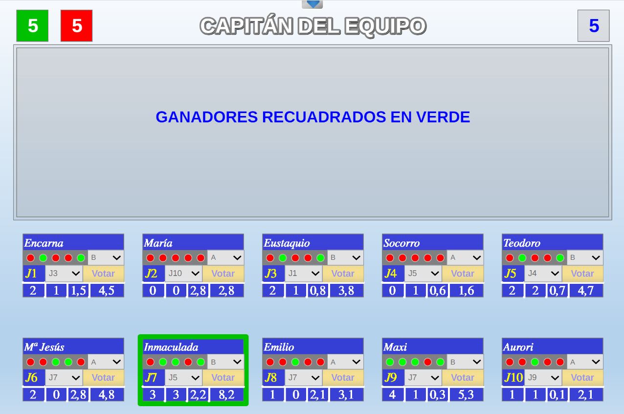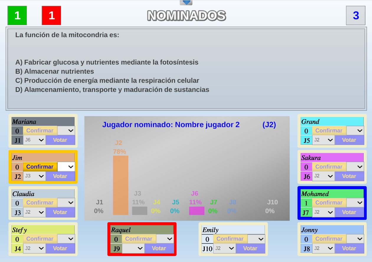 Juego por equipos donde todos los miembros de cada equipo, con su voto, influirá en el resultado final de la respuesta de forma proporcional.