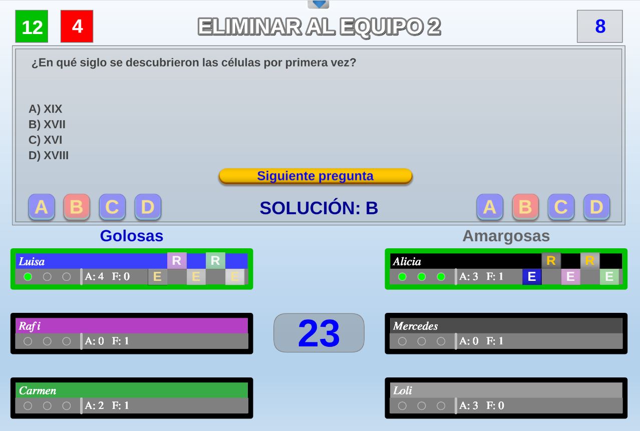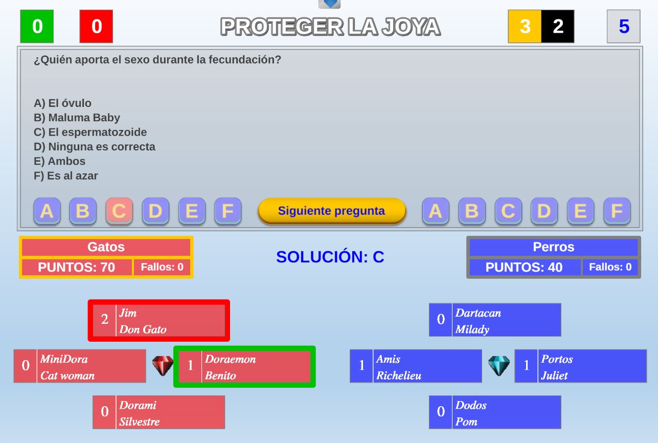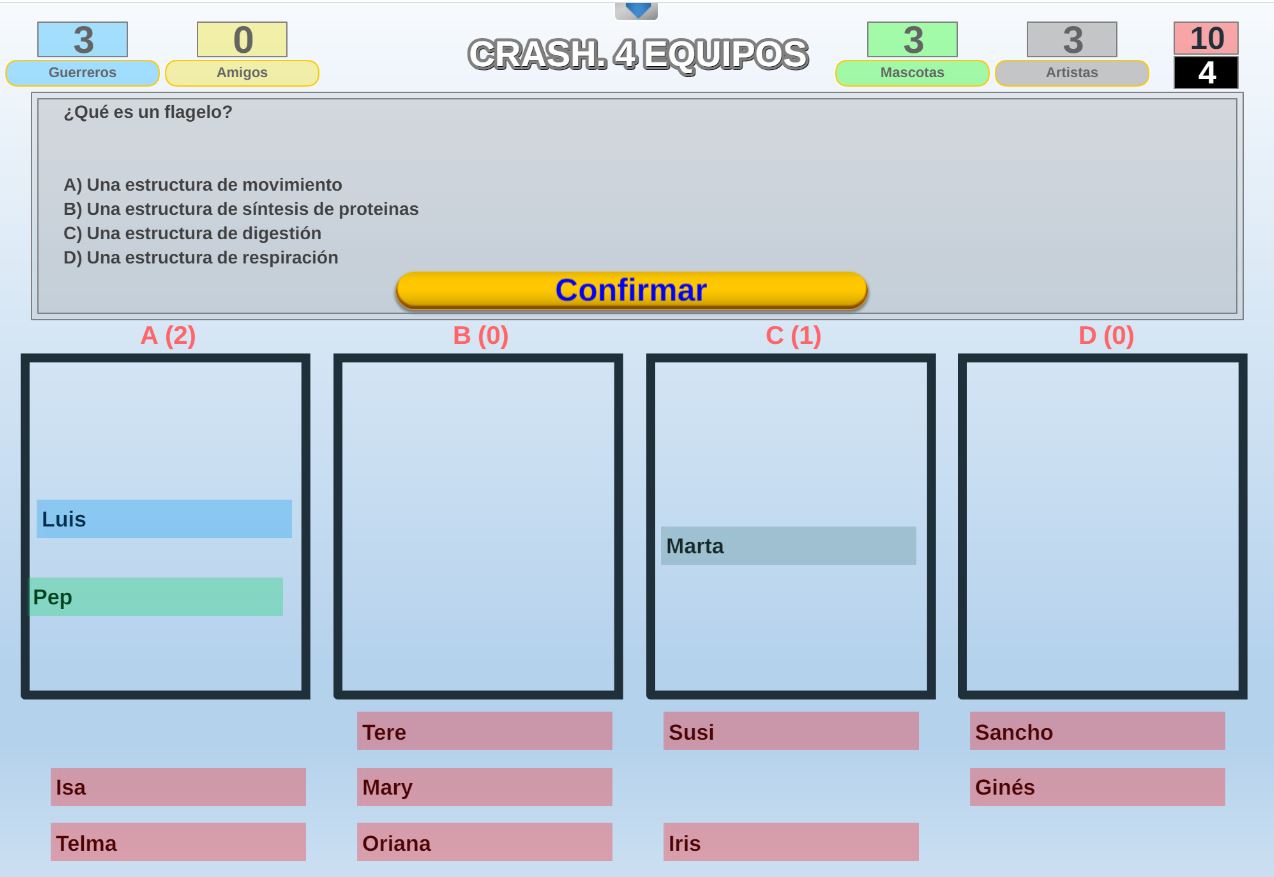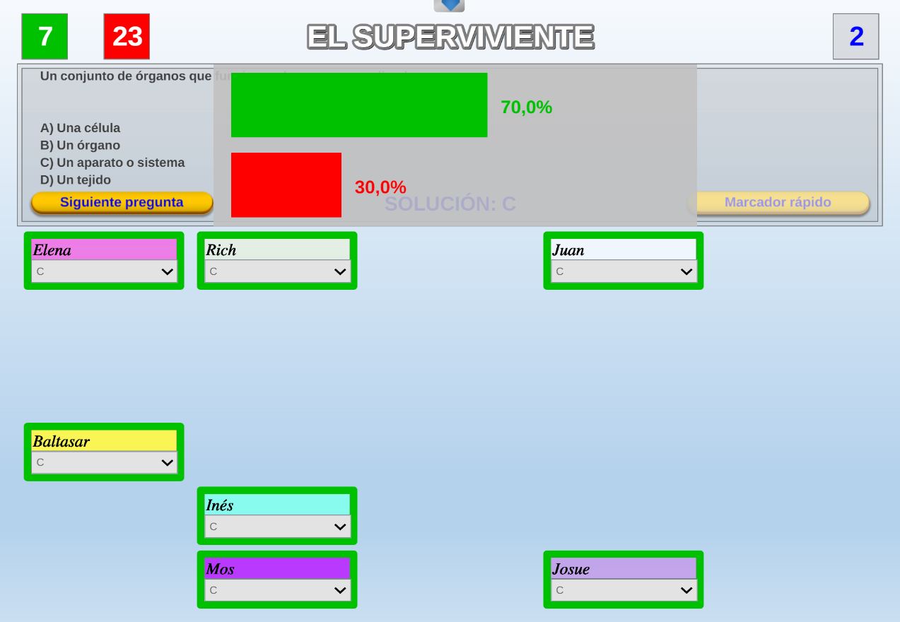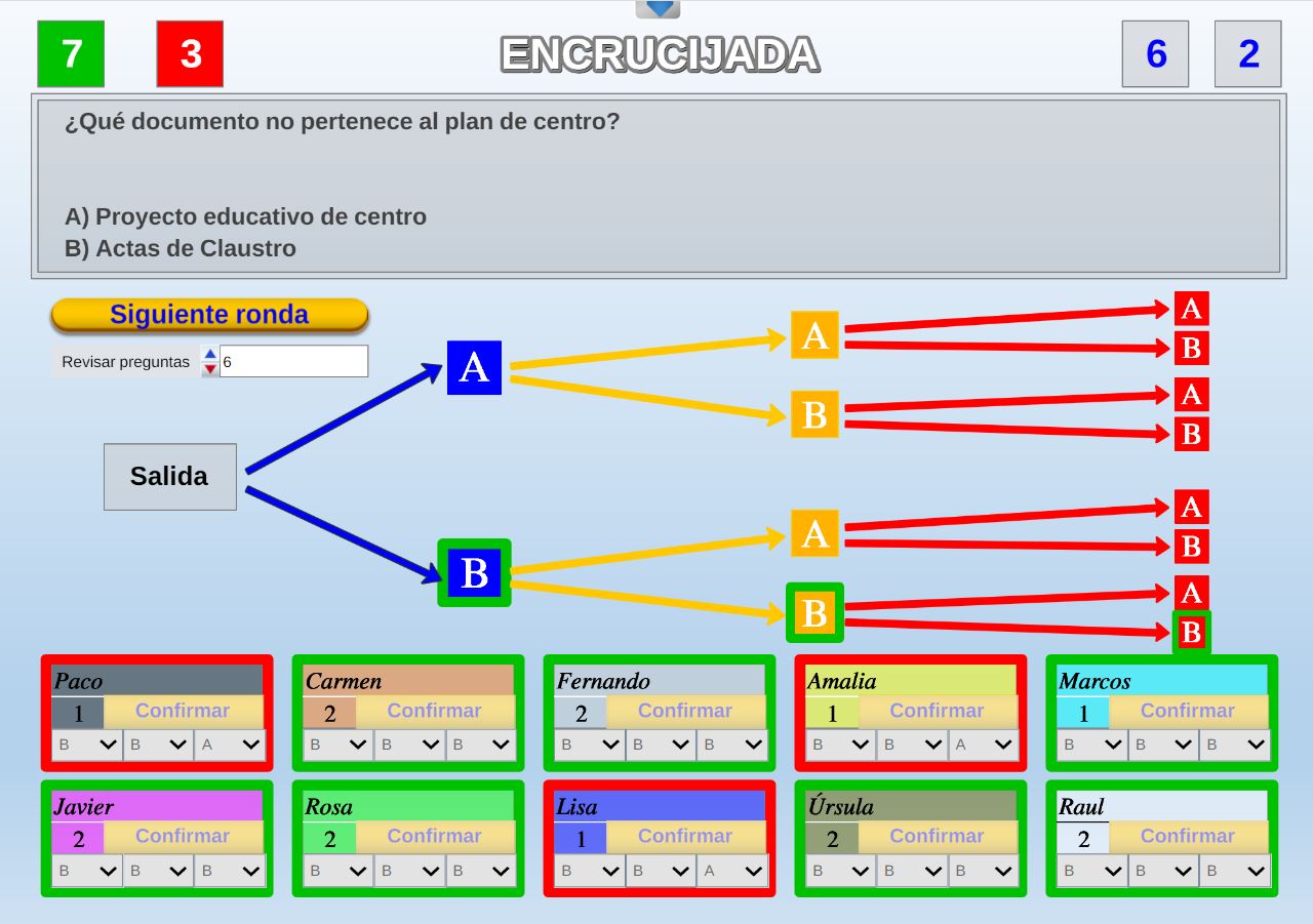 Juego por equipos donde todos los miembros de cada equipo, con su voto, influirá en el resultado final de la respuesta de forma proporcional.
