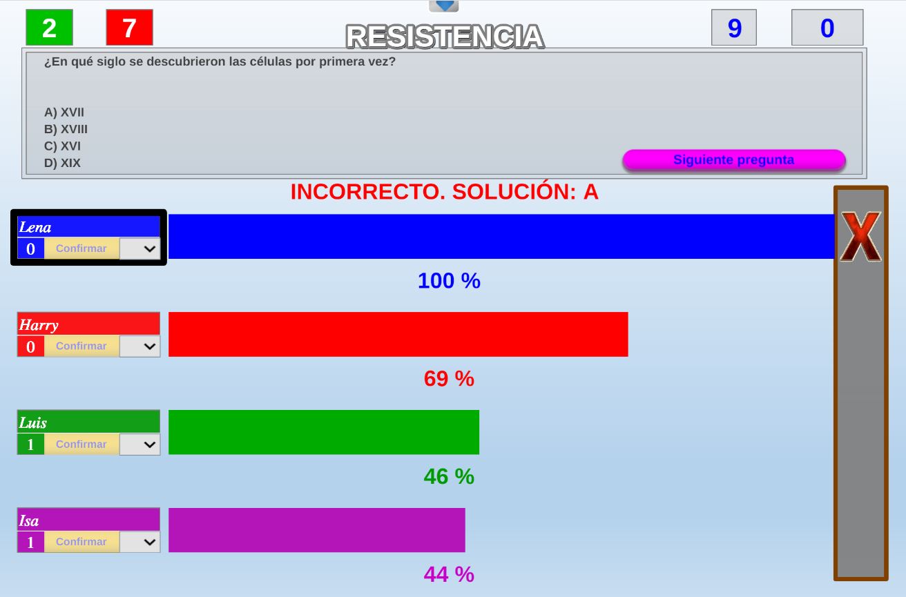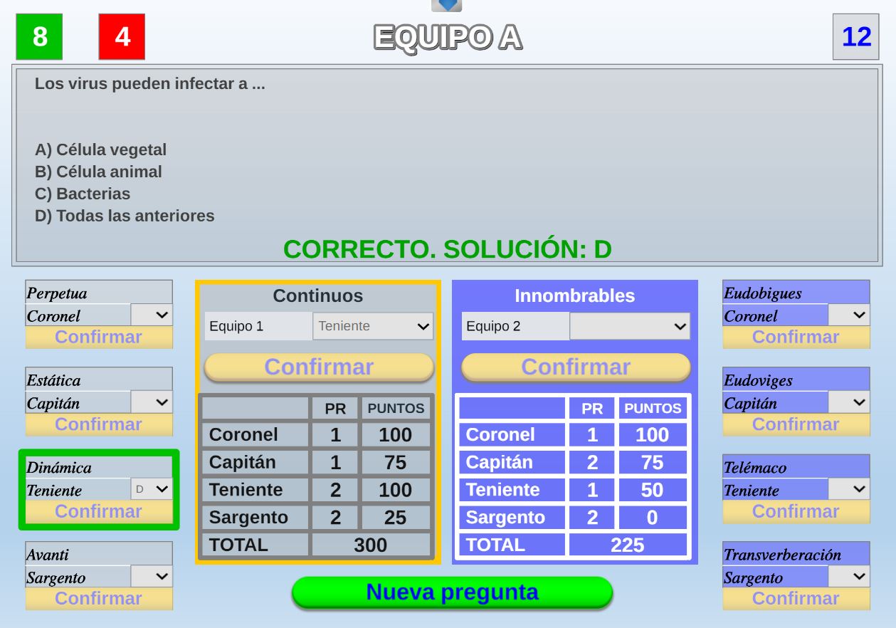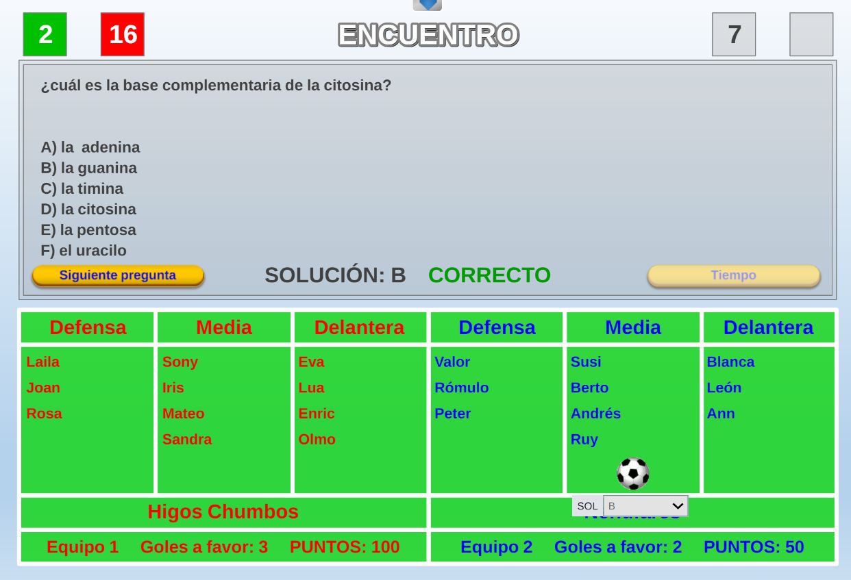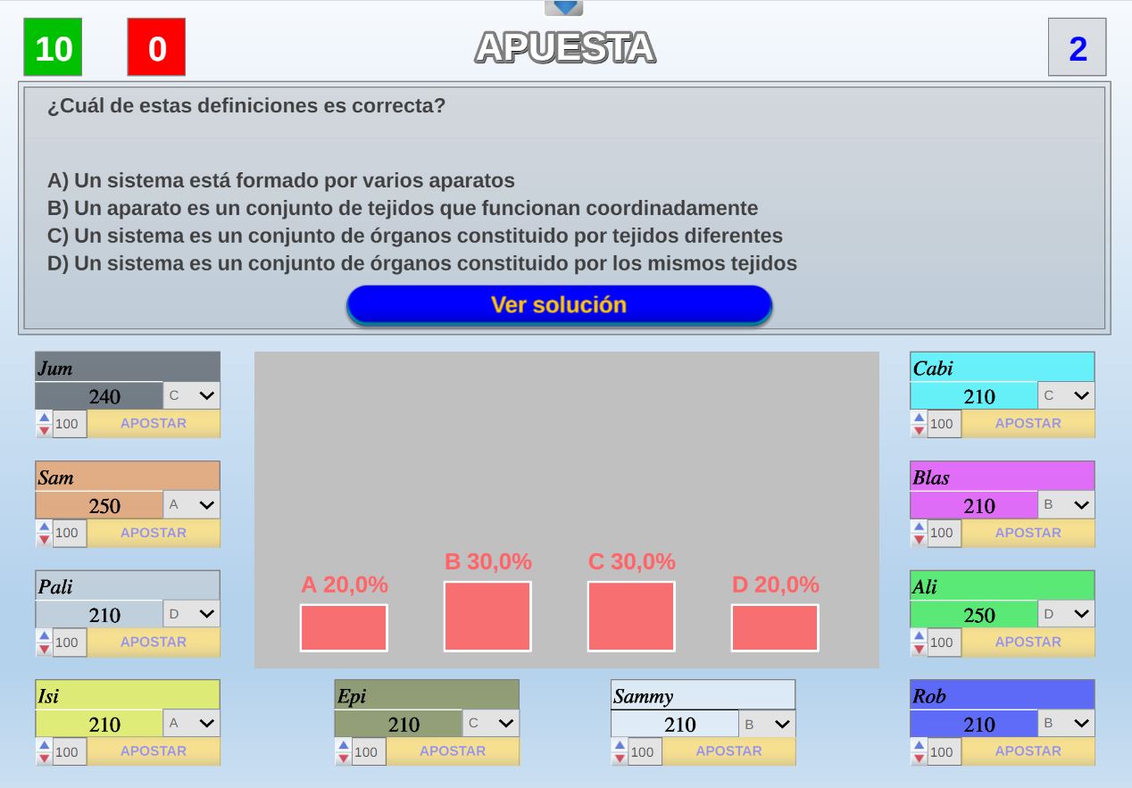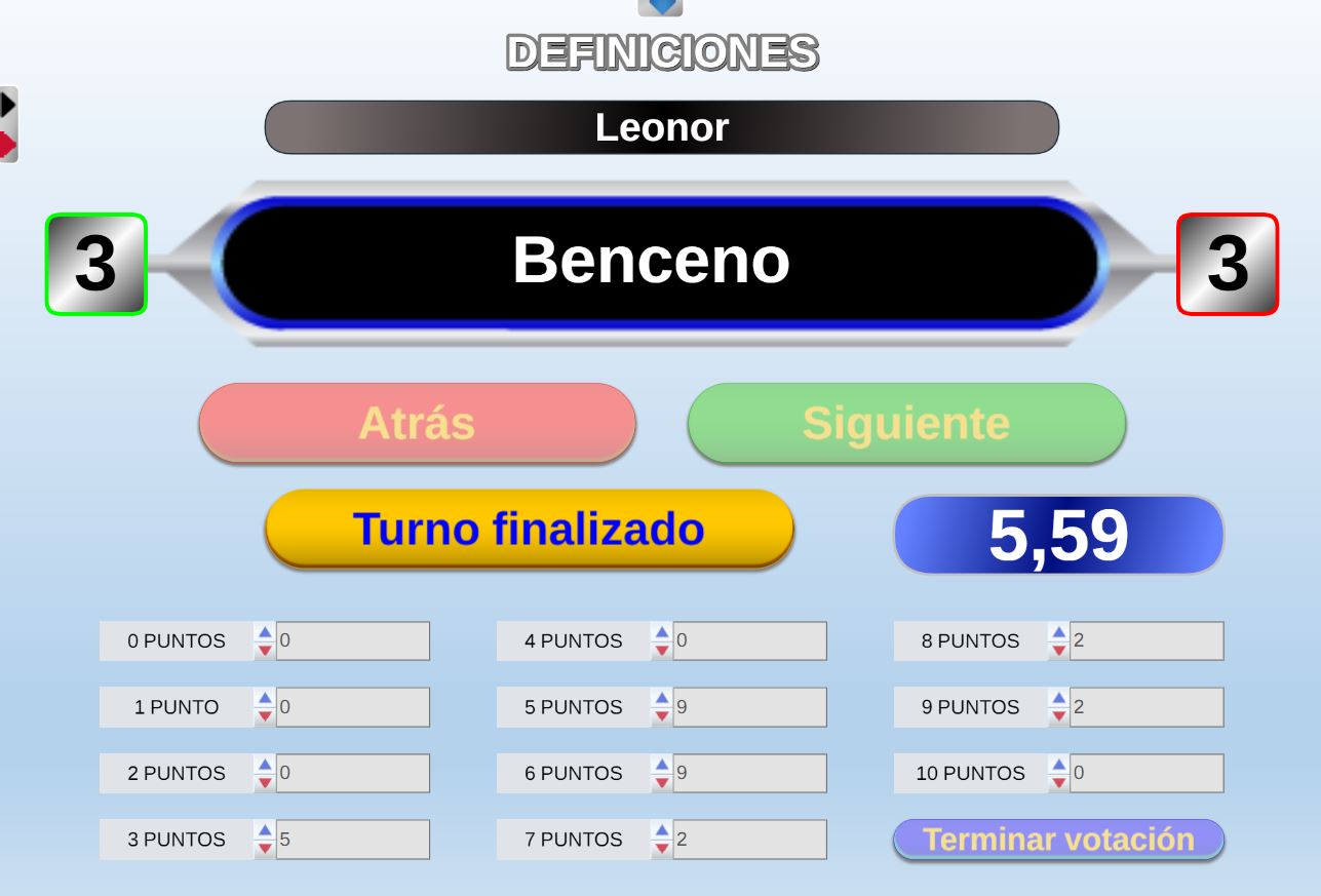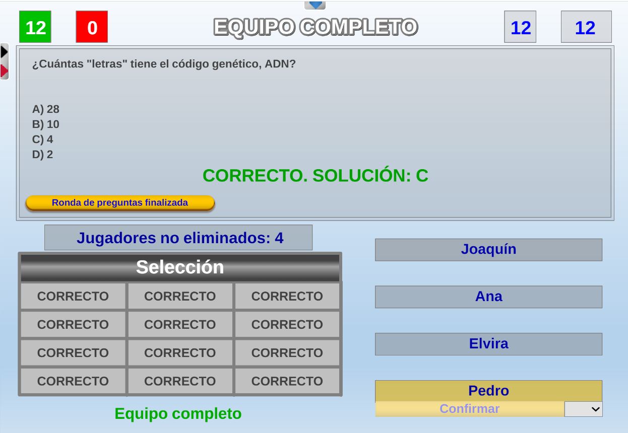 Juego por equipos donde todos los miembros de cada equipo, con su voto, influirá en el resultado final de la respuesta de forma proporcional.
