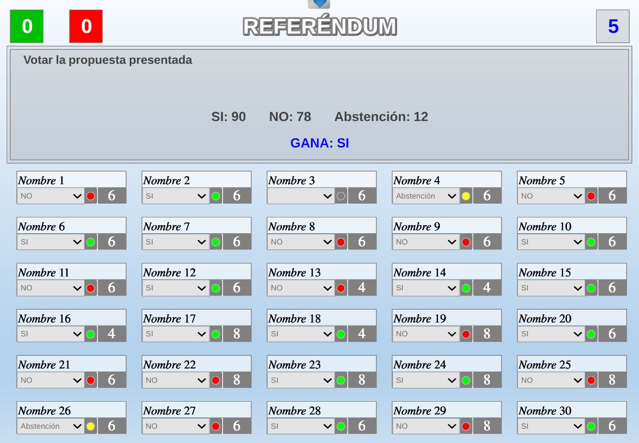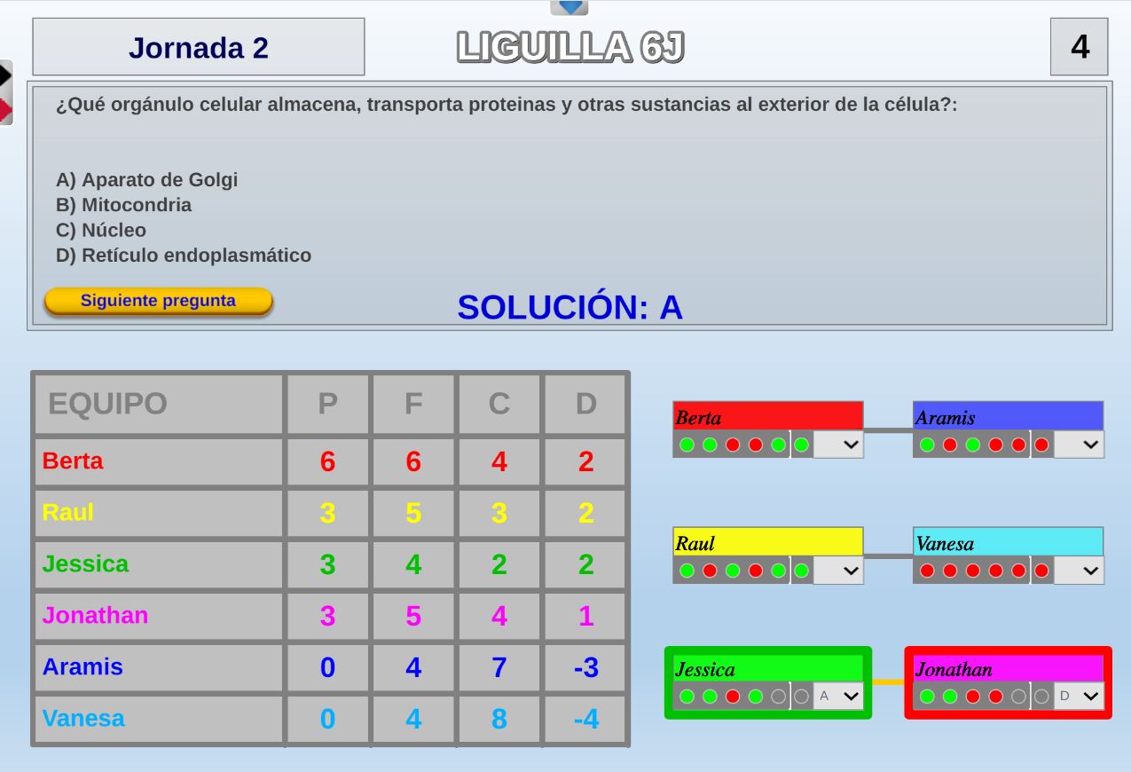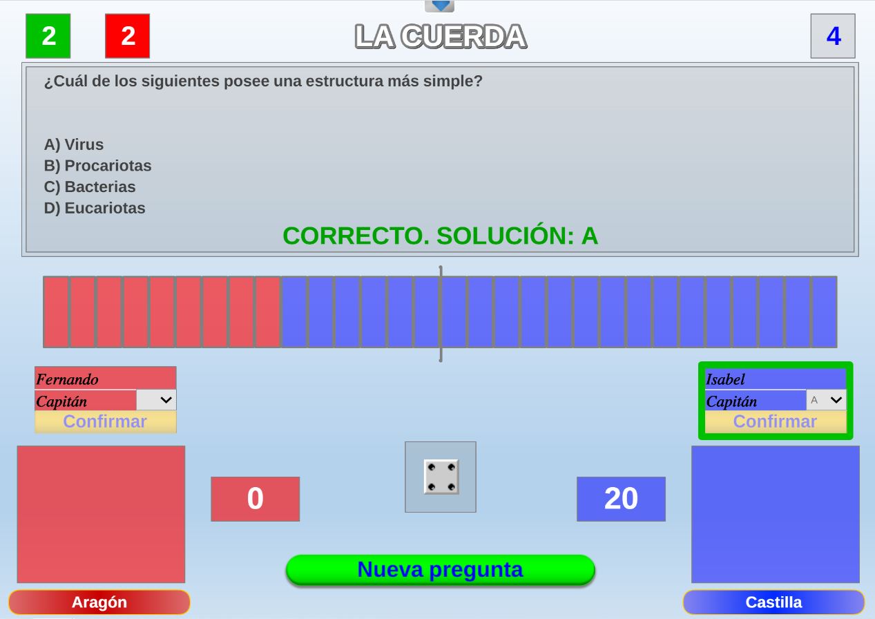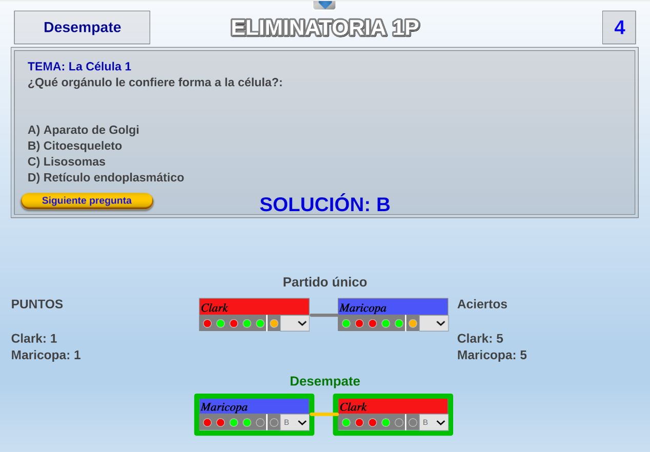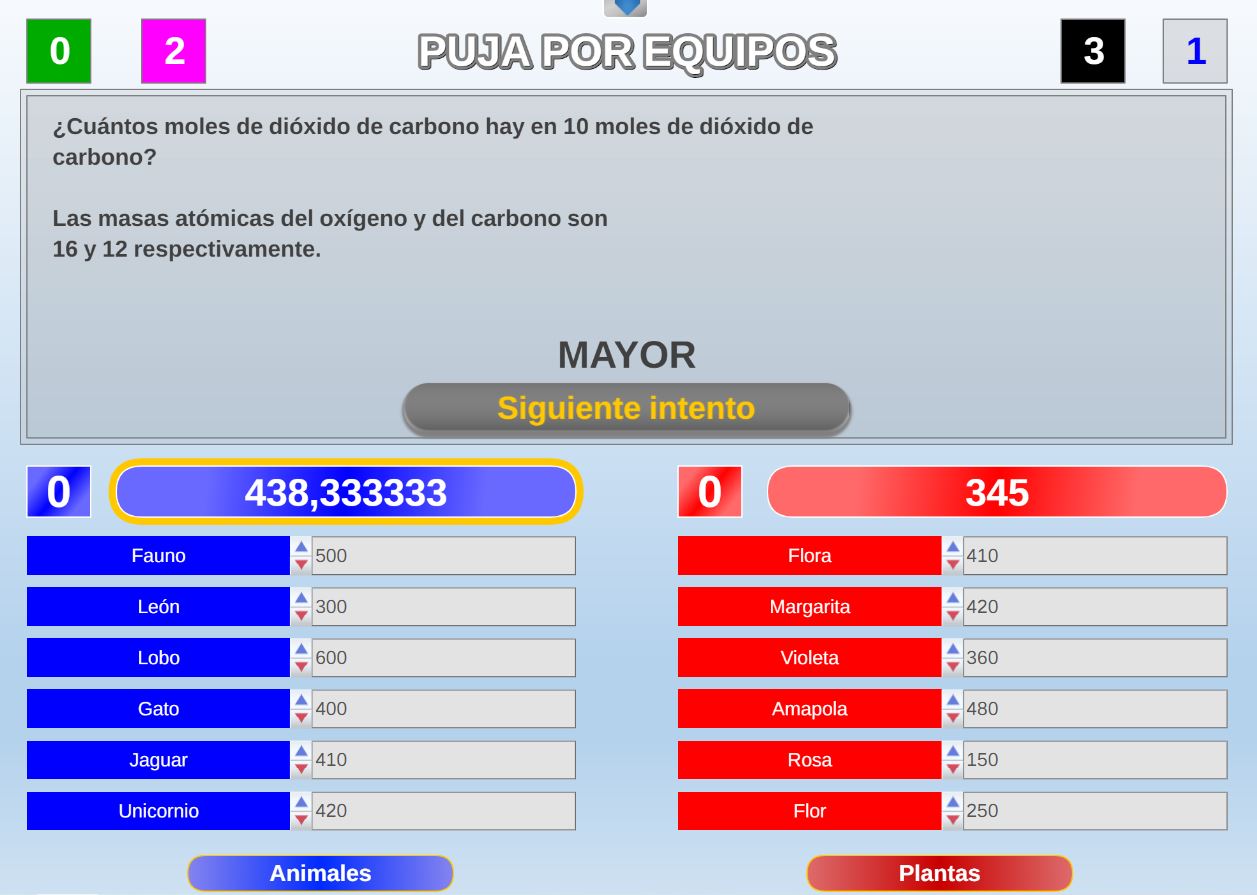 Juego por equipos donde todos los miembros de cada equipo, con su voto, influirá en el resultado final de la respuesta de forma proporcional.