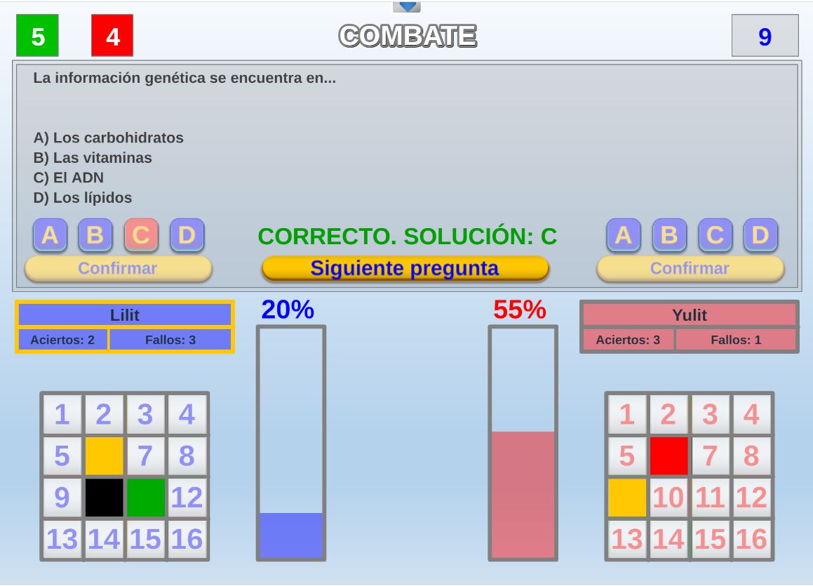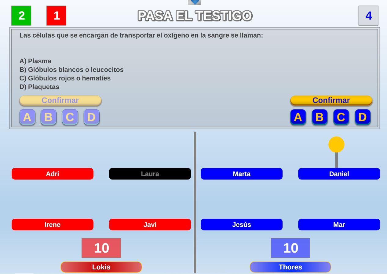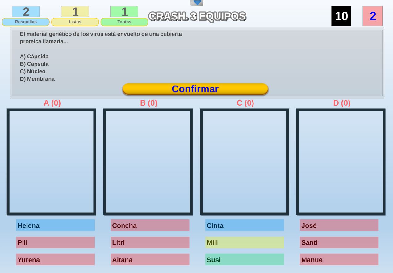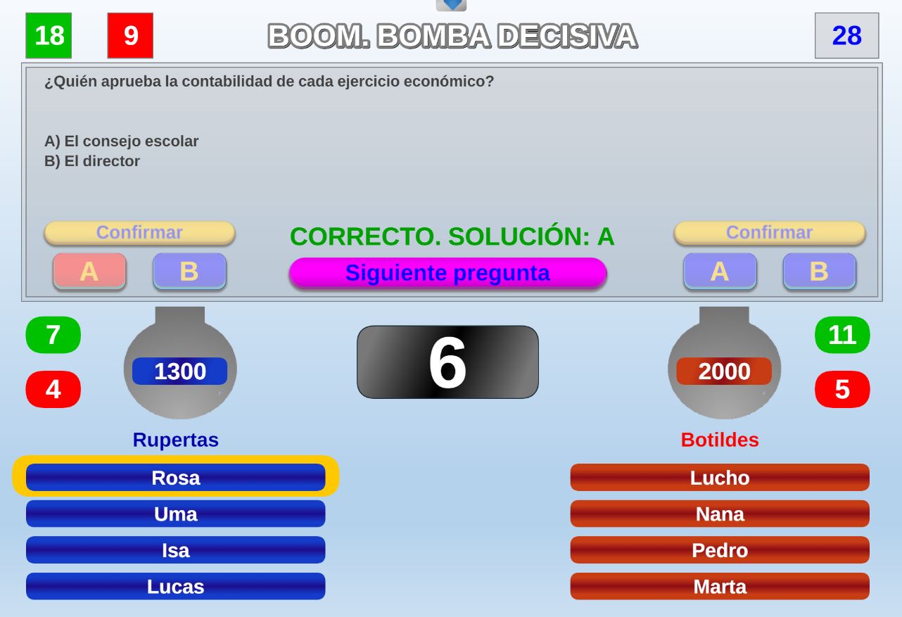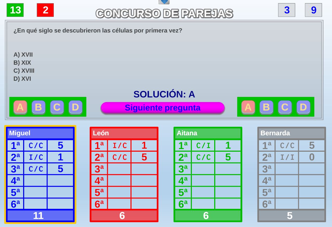 Juego por equipos donde todos los miembros de cada equipo, con su voto, influirá en el resultado final de la respuesta de forma proporcional.
