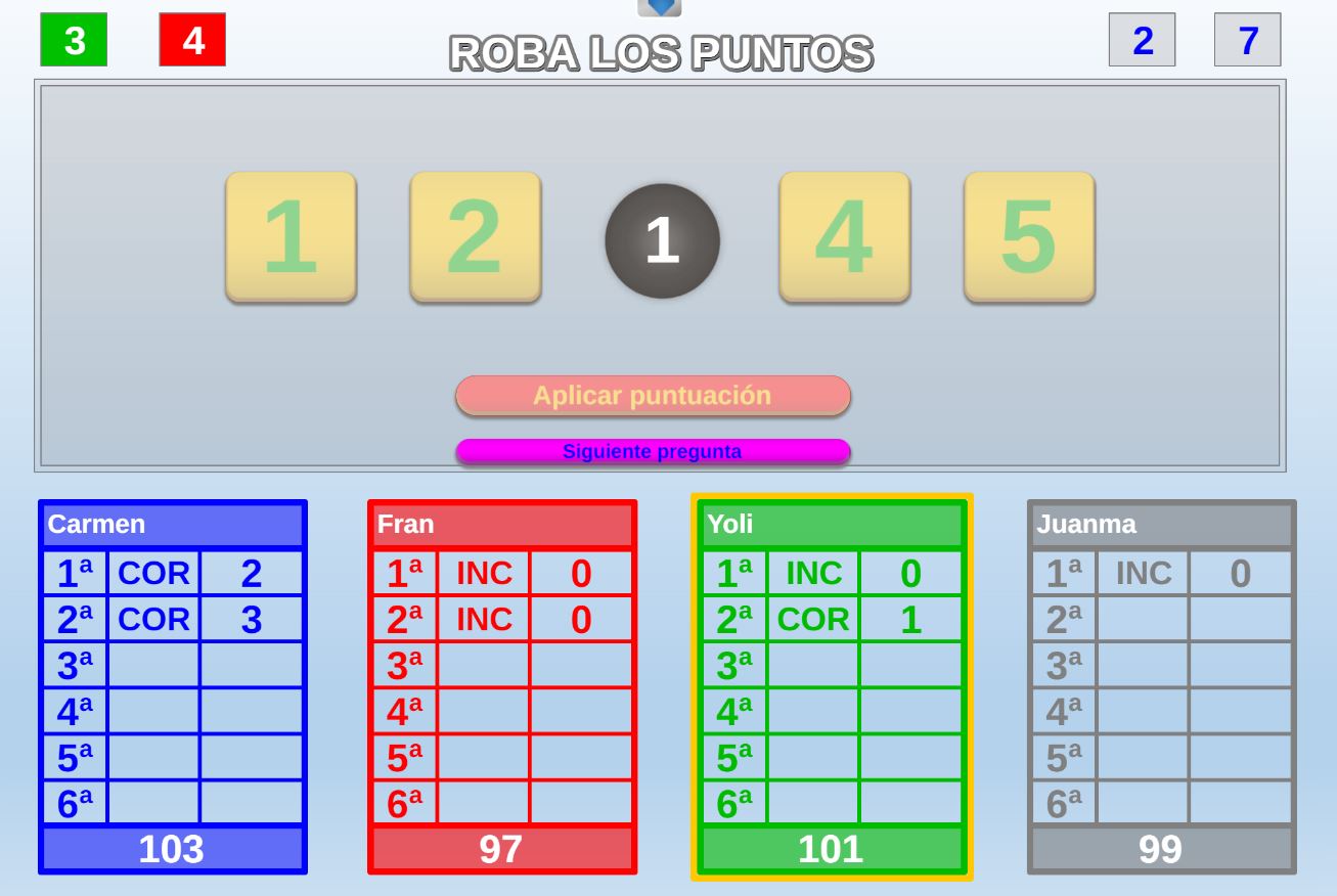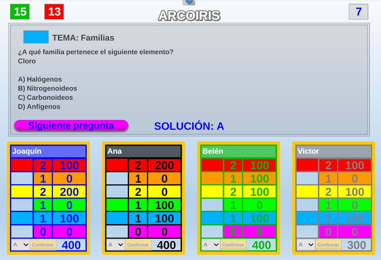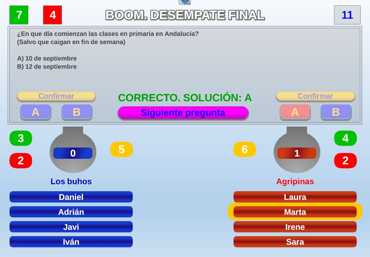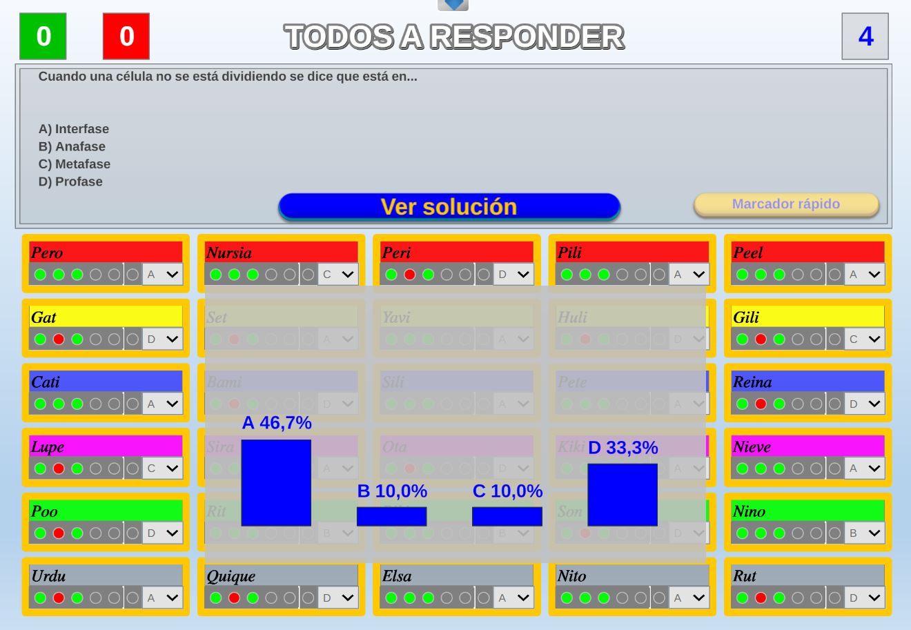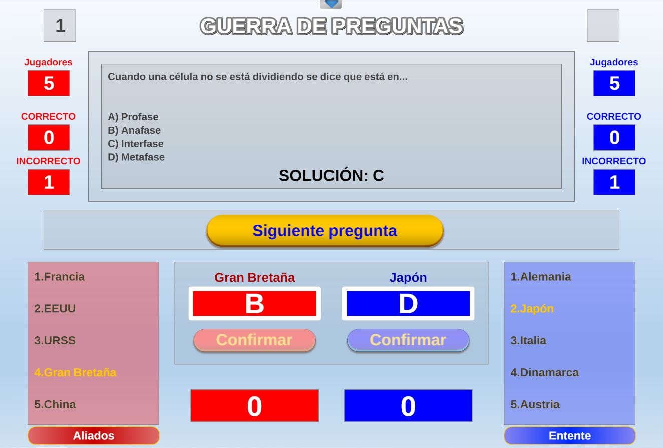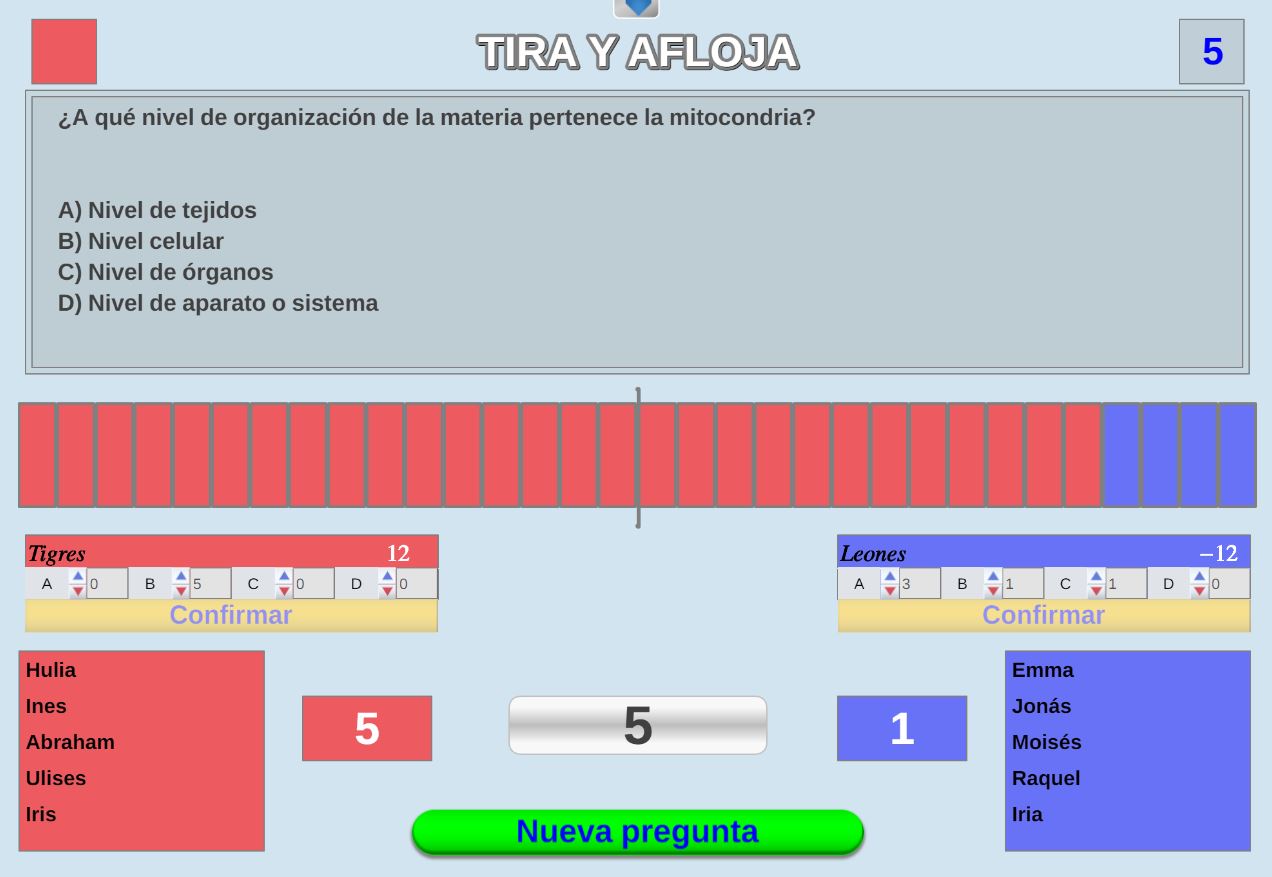 Juego por equipos donde todos los miembros de cada equipo, con su voto, influirá en el resultado final de la respuesta de forma proporcional.
