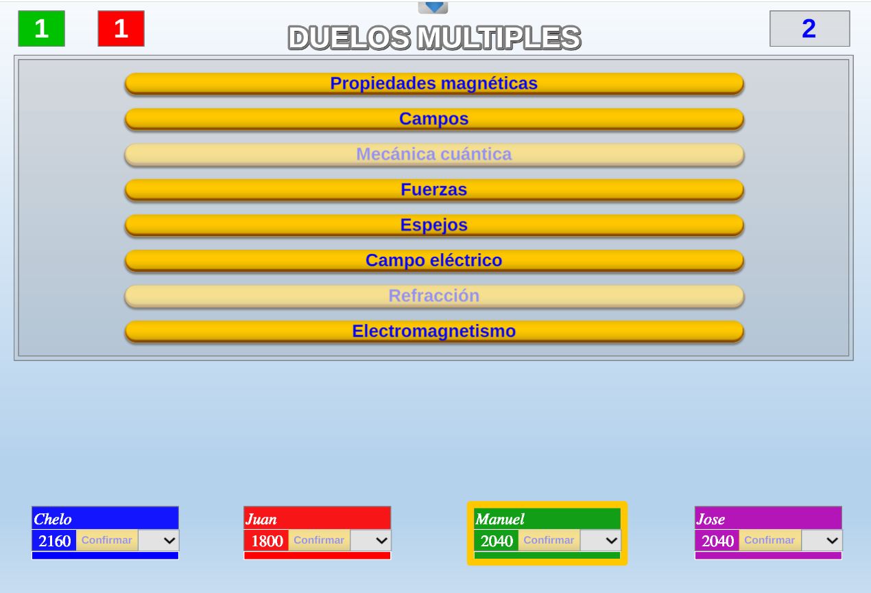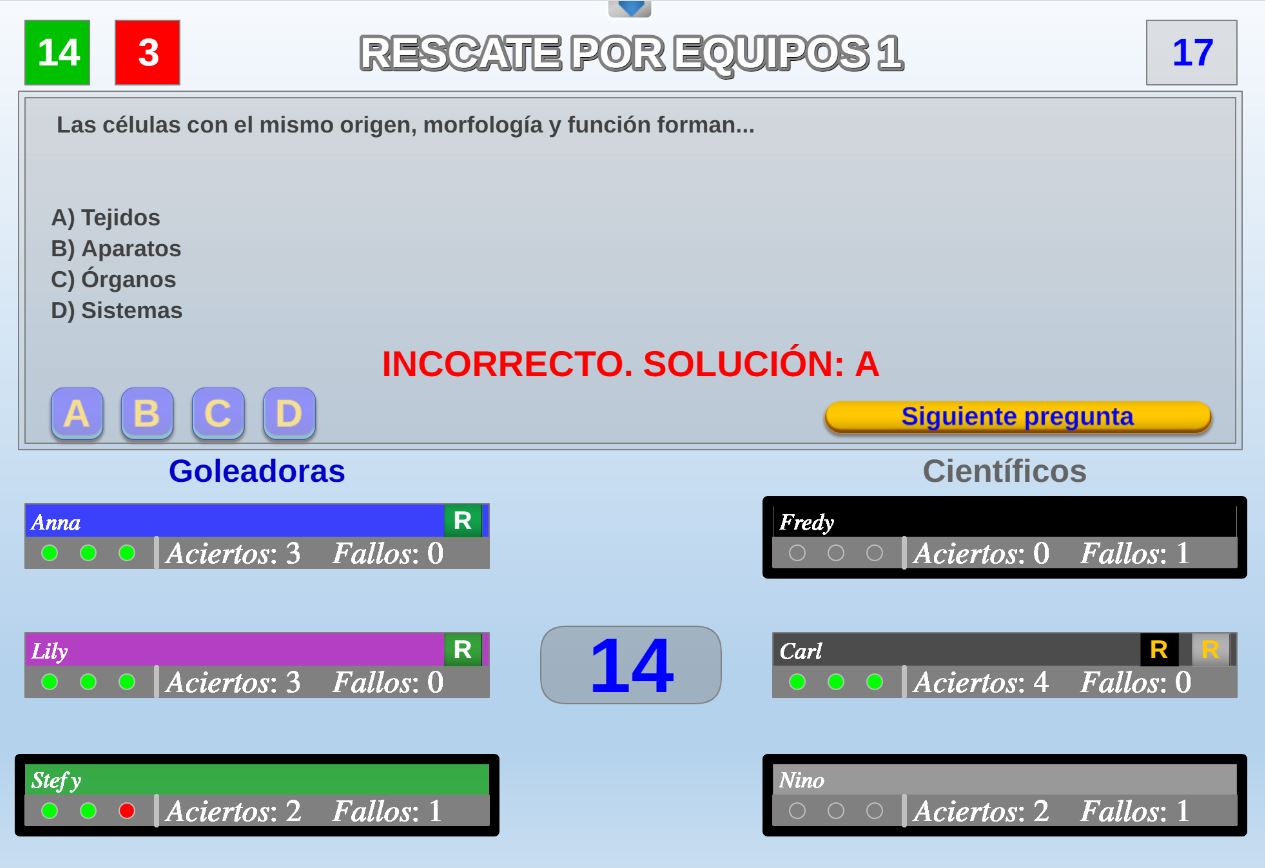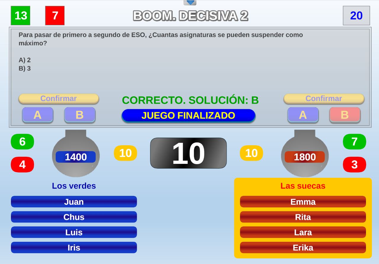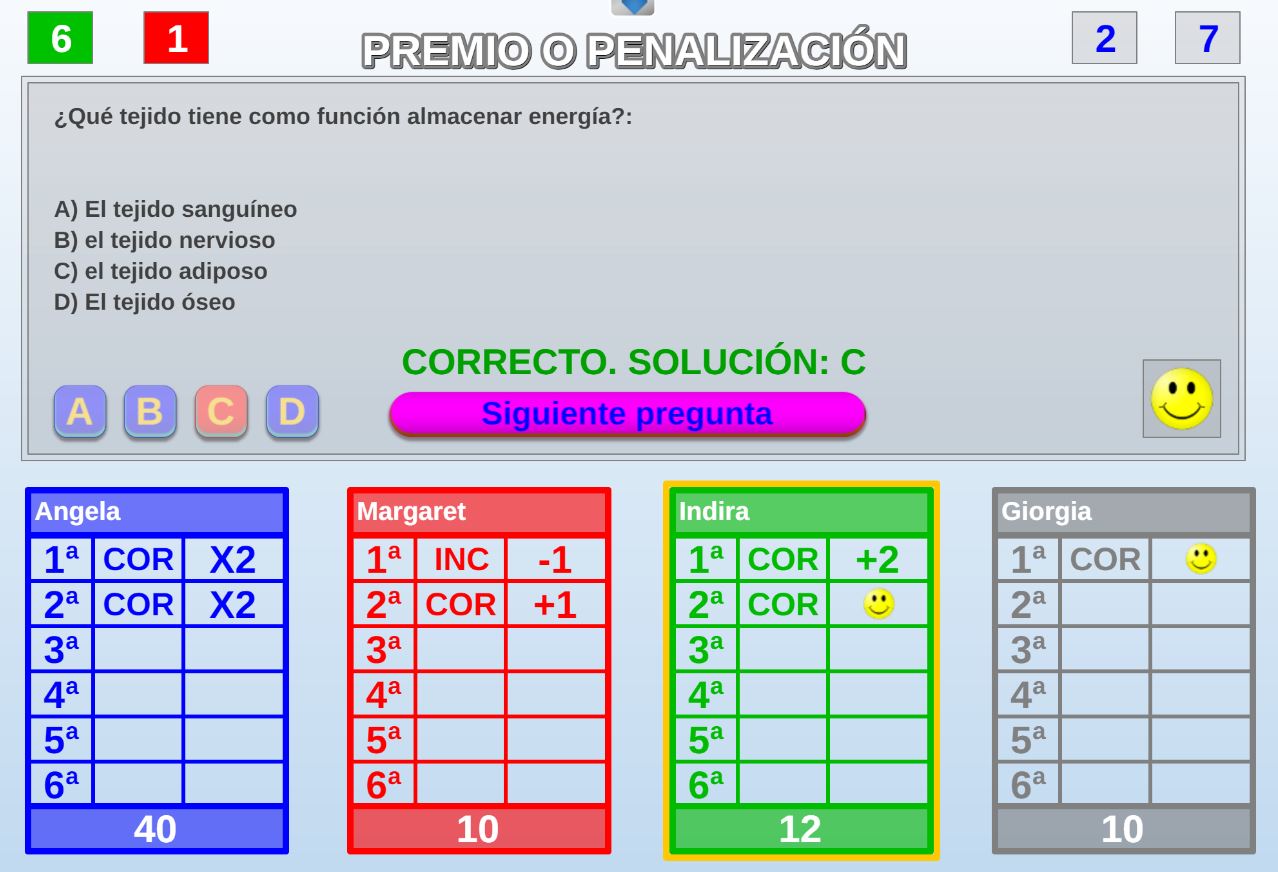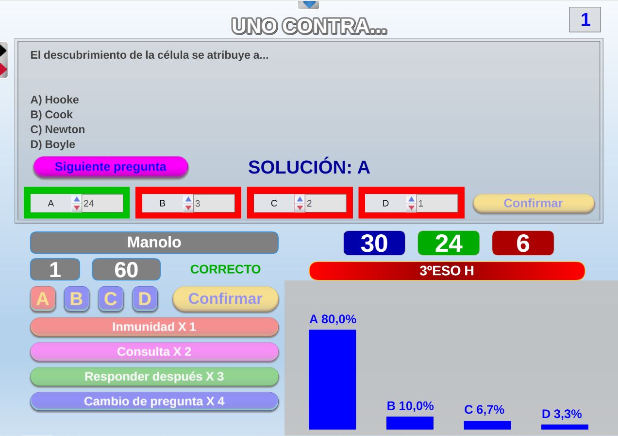 Juego por equipos donde todos los miembros de cada equipo, con su voto, influirá en el resultado final de la respuesta de forma proporcional.