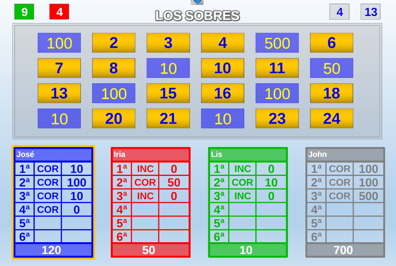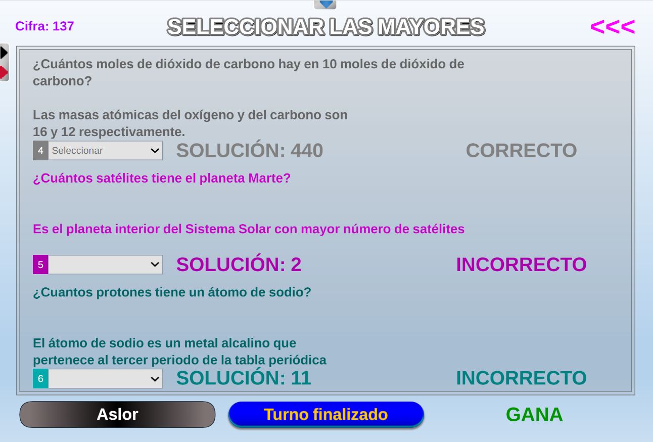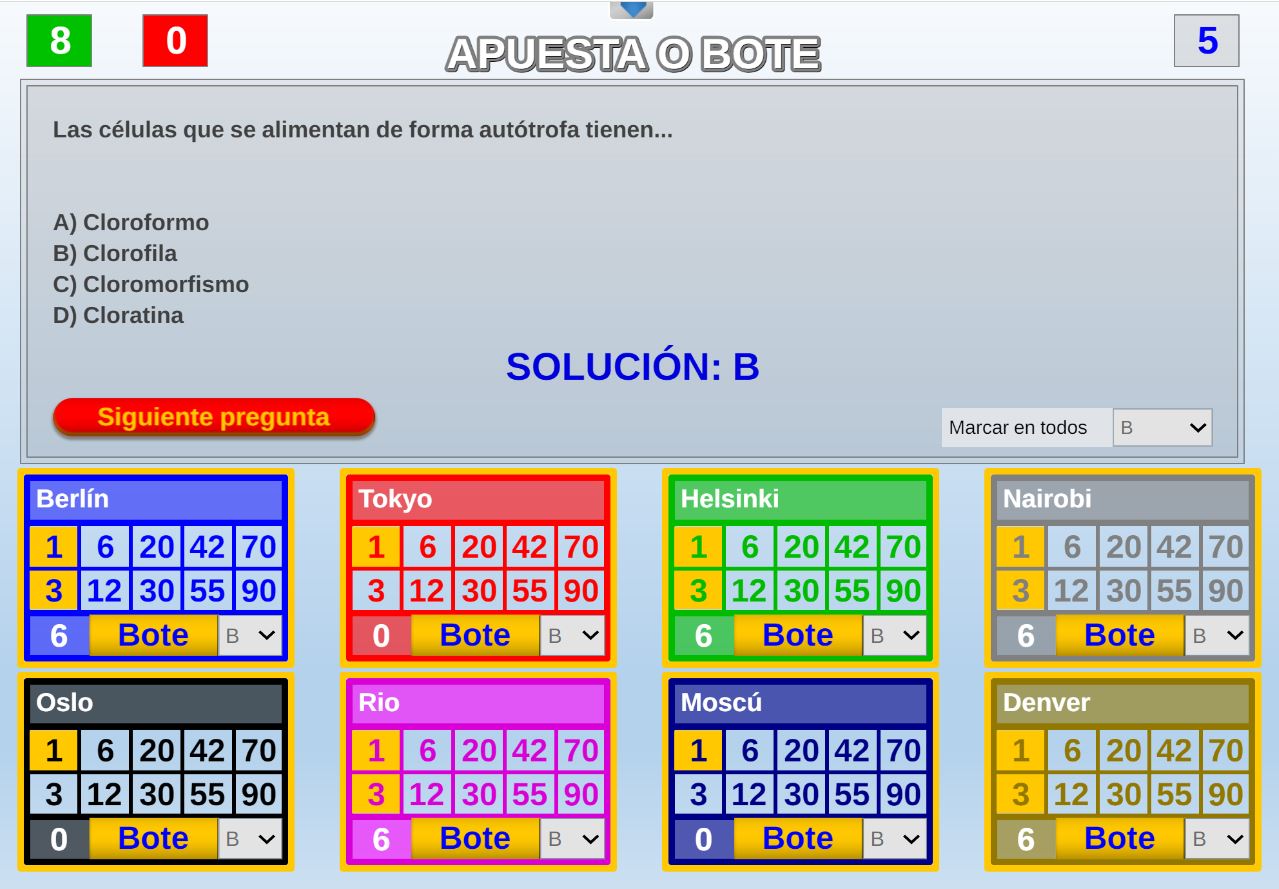 Juego que ganará el participante que más preguntas correctas conteste, pero para poder contestar a las preguntas deberá pujar por ellas.