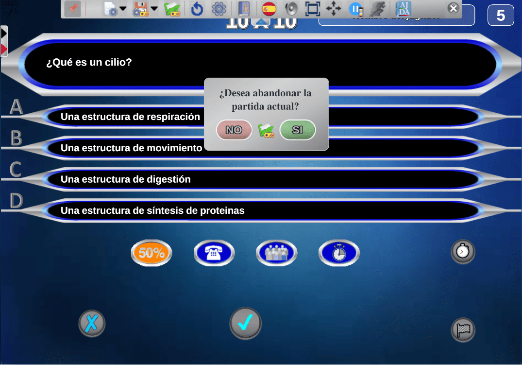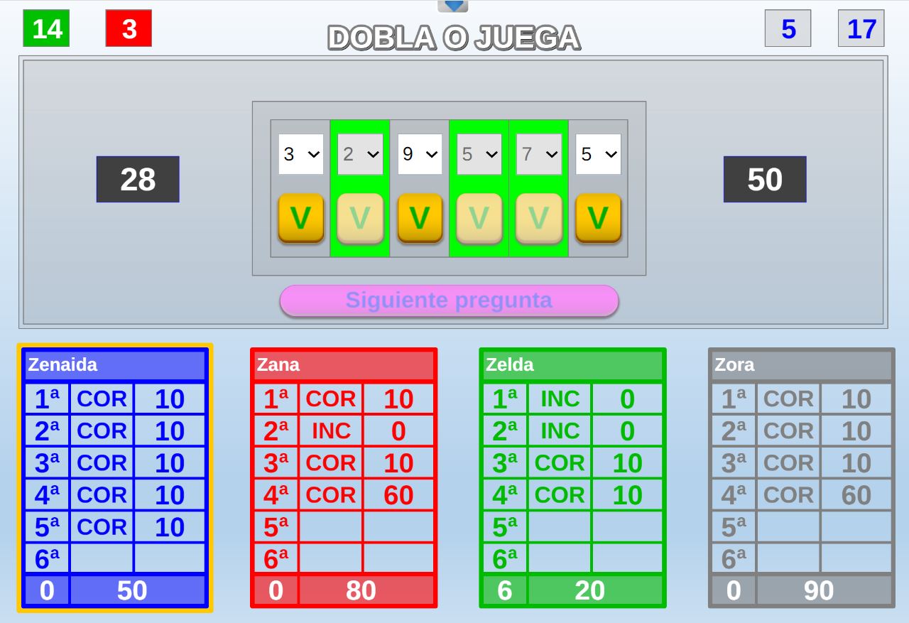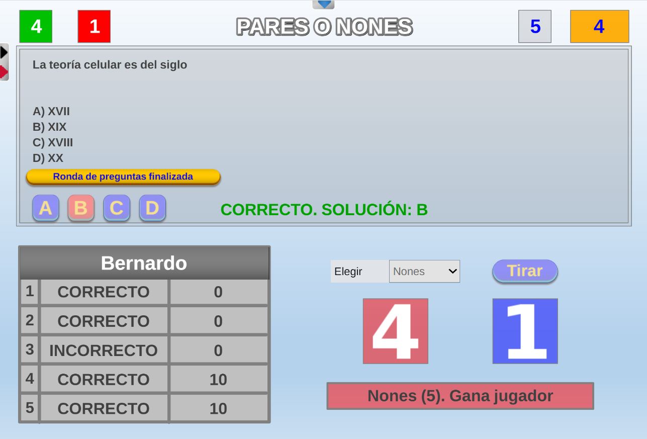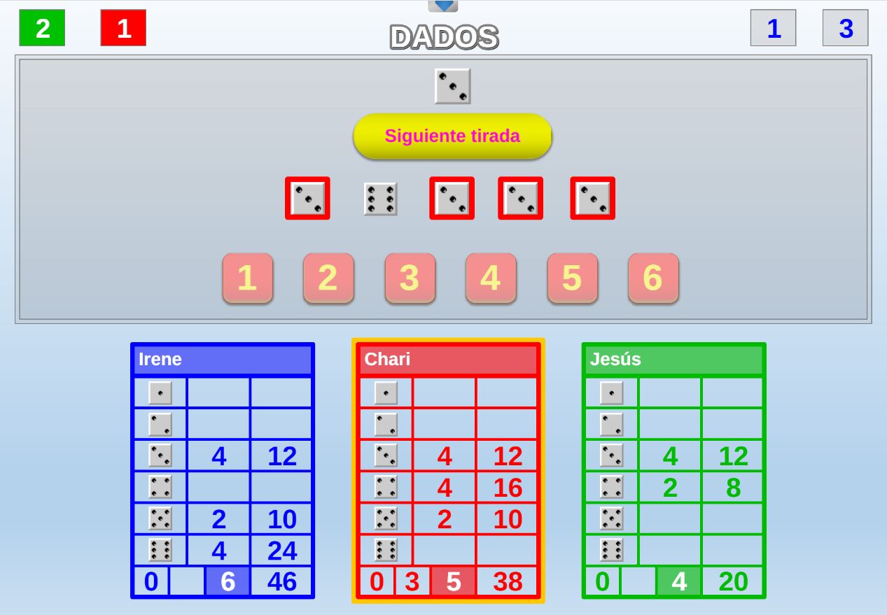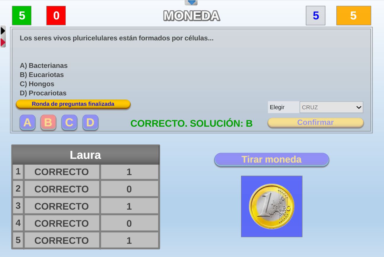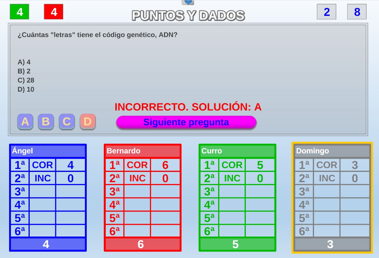 Juego cuyo objetivo es obtener la mayor puntuación posible en una tirada de dados. Por cada respuesta correcta el jugador podrá lanzar un dado, si acierta las cinco preguntas tirará cinco dados.