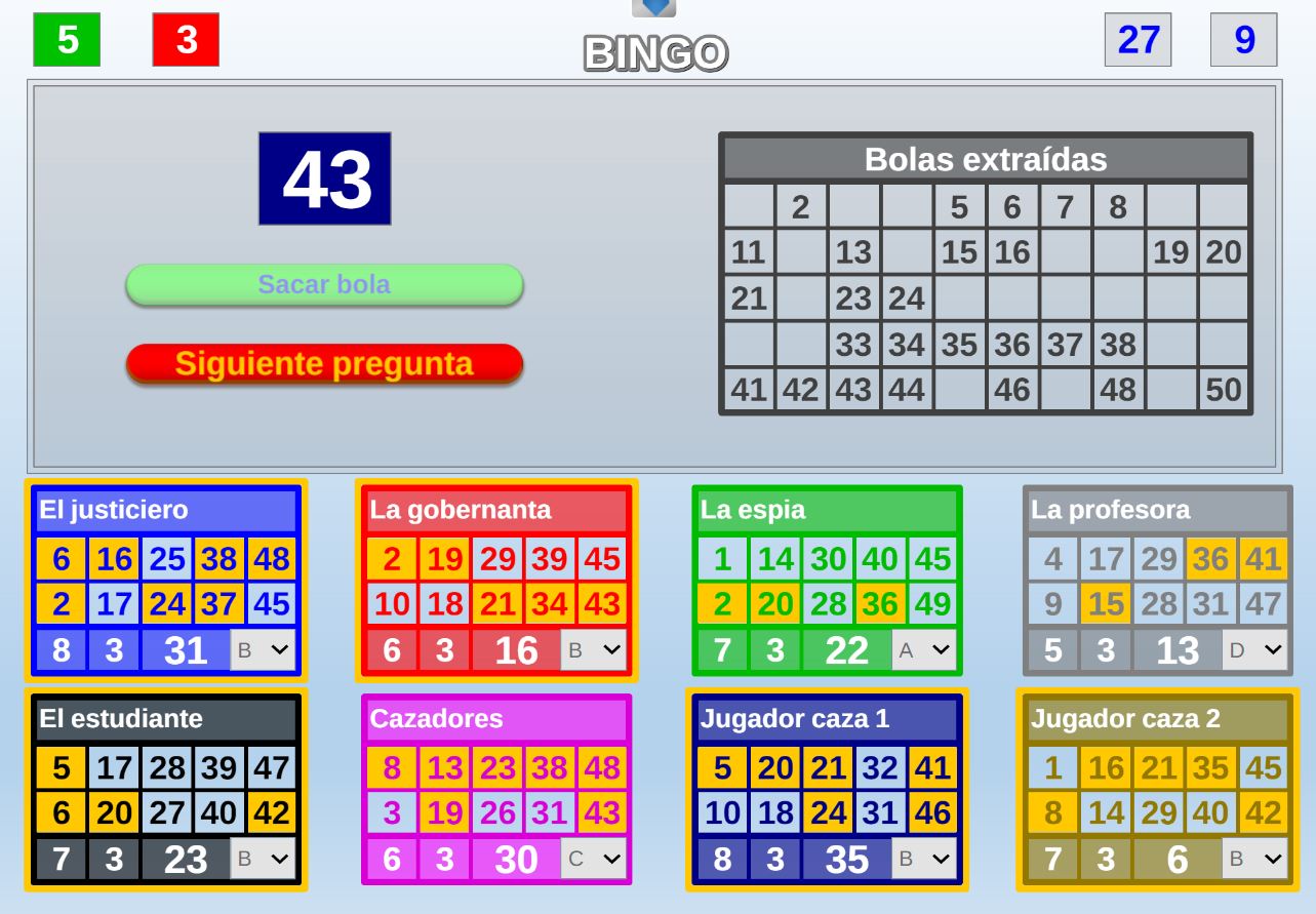 Durante el juego, a través del correspondiente control del menú superior desplegable, se podrá volver a esta pantalla de configuración y se podrán modificar aquellos parámetros que estén activos, incluido el de la fuente de preguntas. Que estén habilitados dependerá del juego en cuestión y del momento en el que se encuentre la partida.