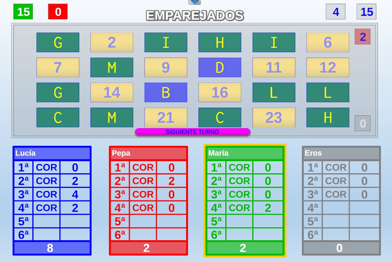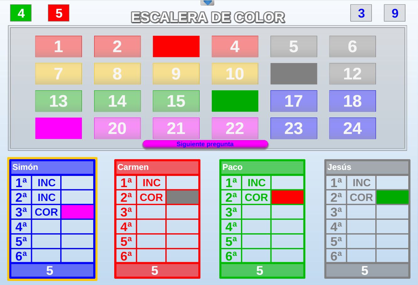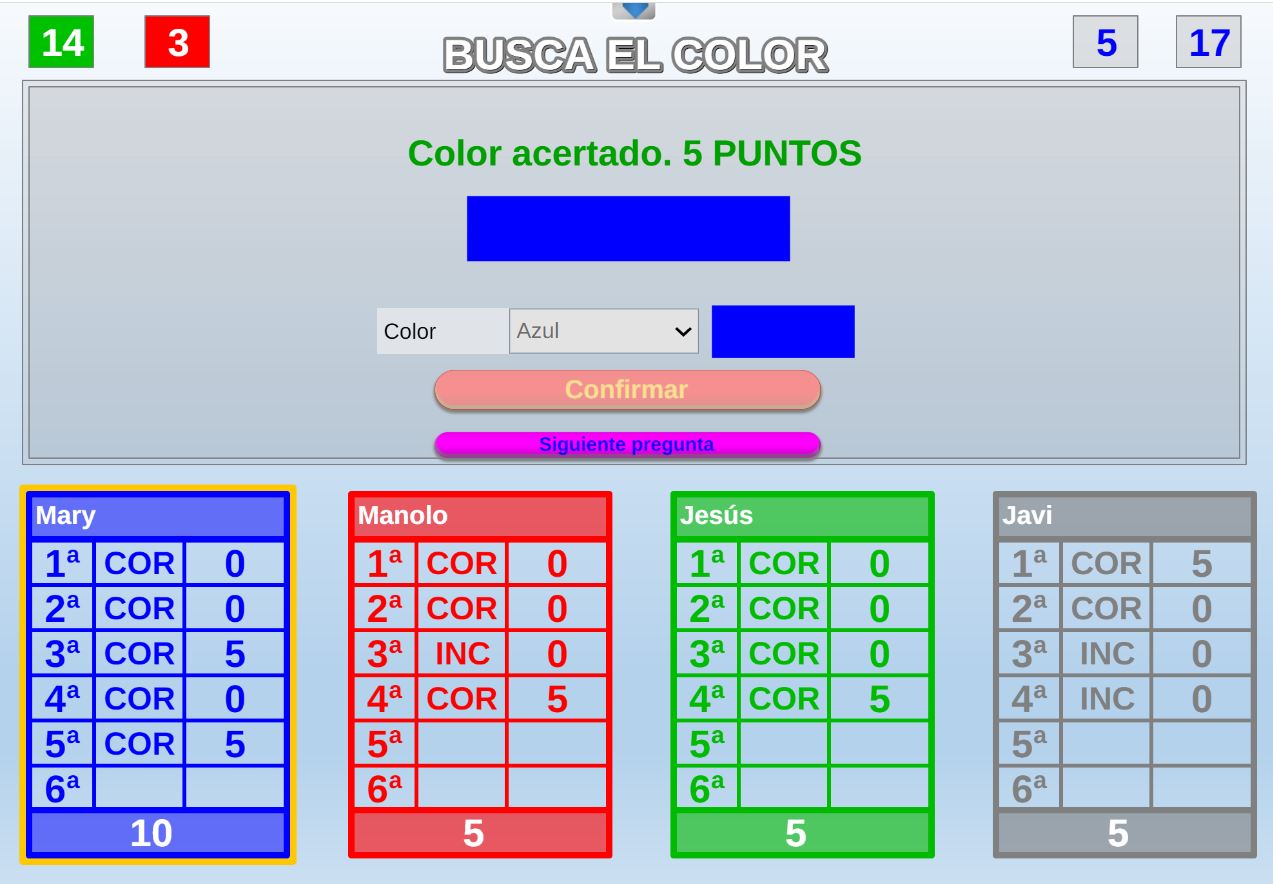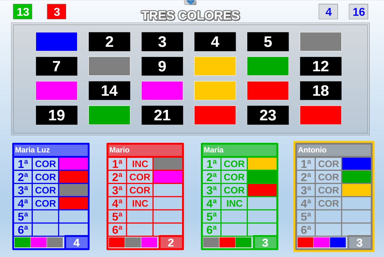 Juego en el que a cada participante se le asignan tres colores. El objetivo será encontrar en un panel de colores los tres que le han sido asignados al jugador.