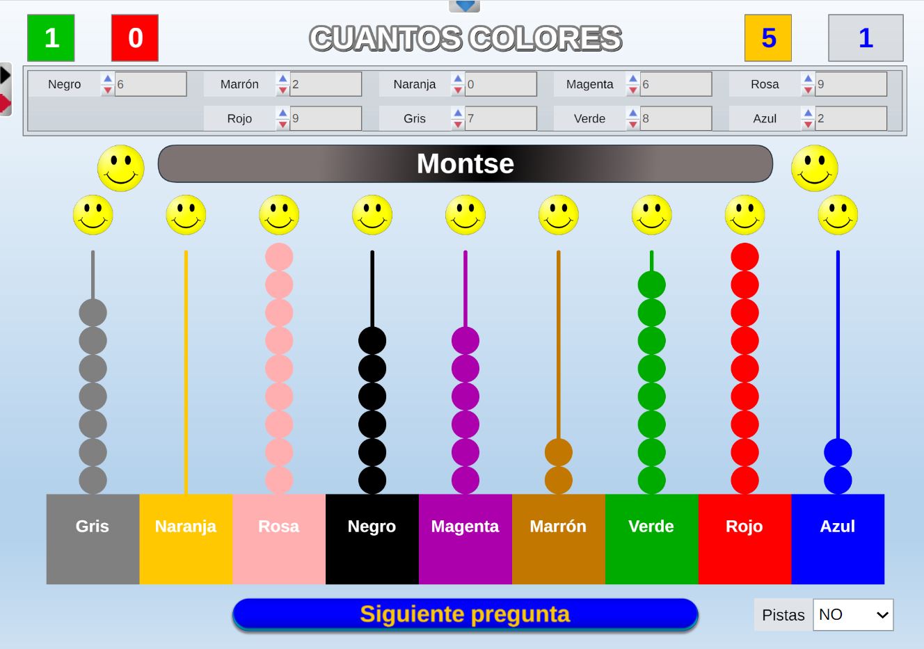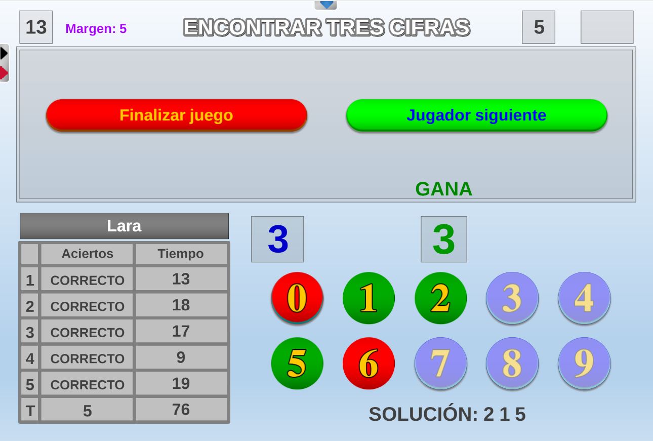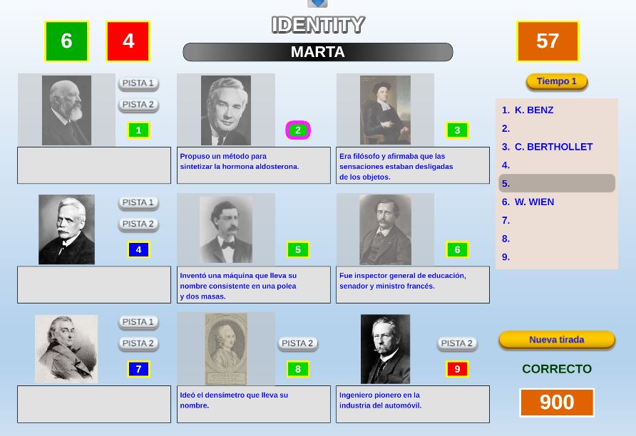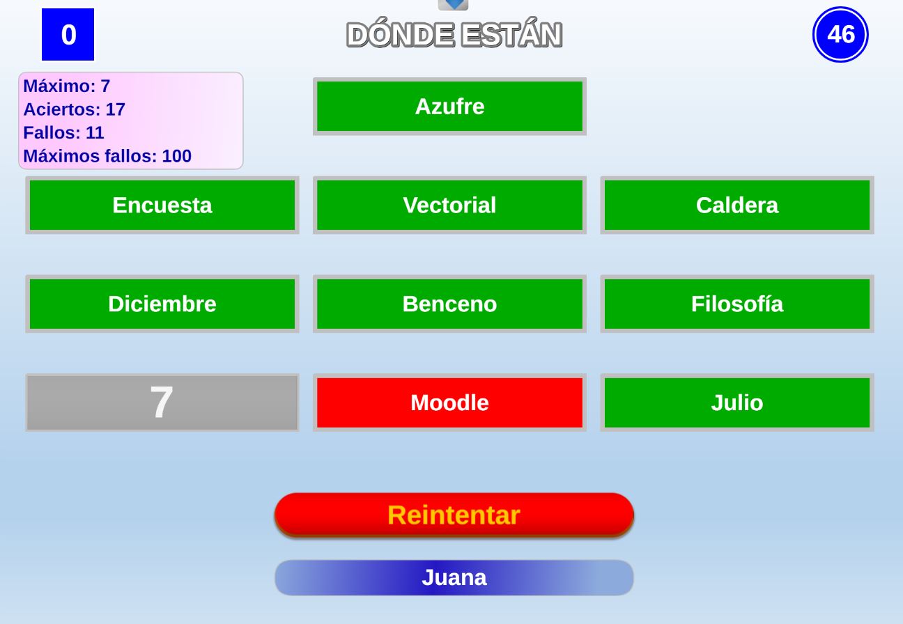 Juego en el que a cada participante se le asignan tres colores. El objetivo será encontrar en un panel de colores los tres que le han sido asignados al jugador.