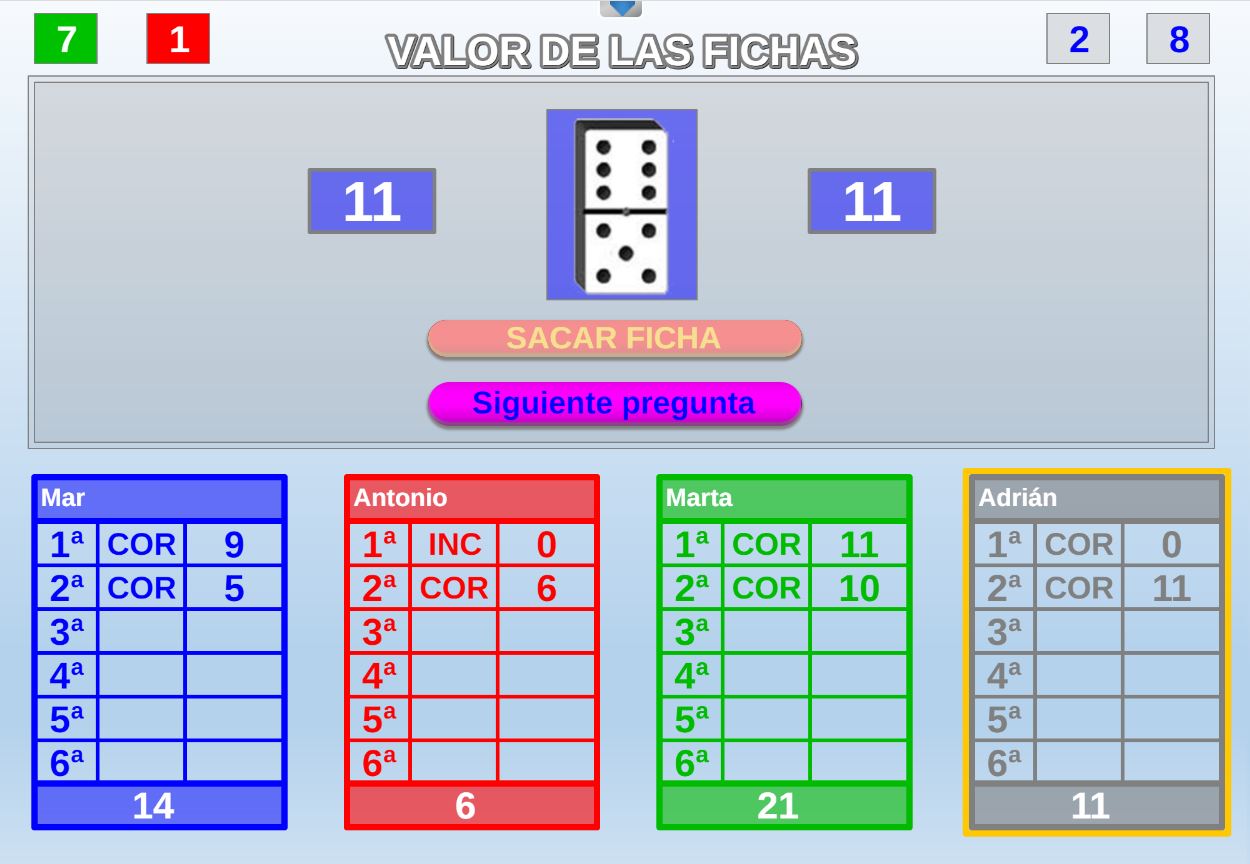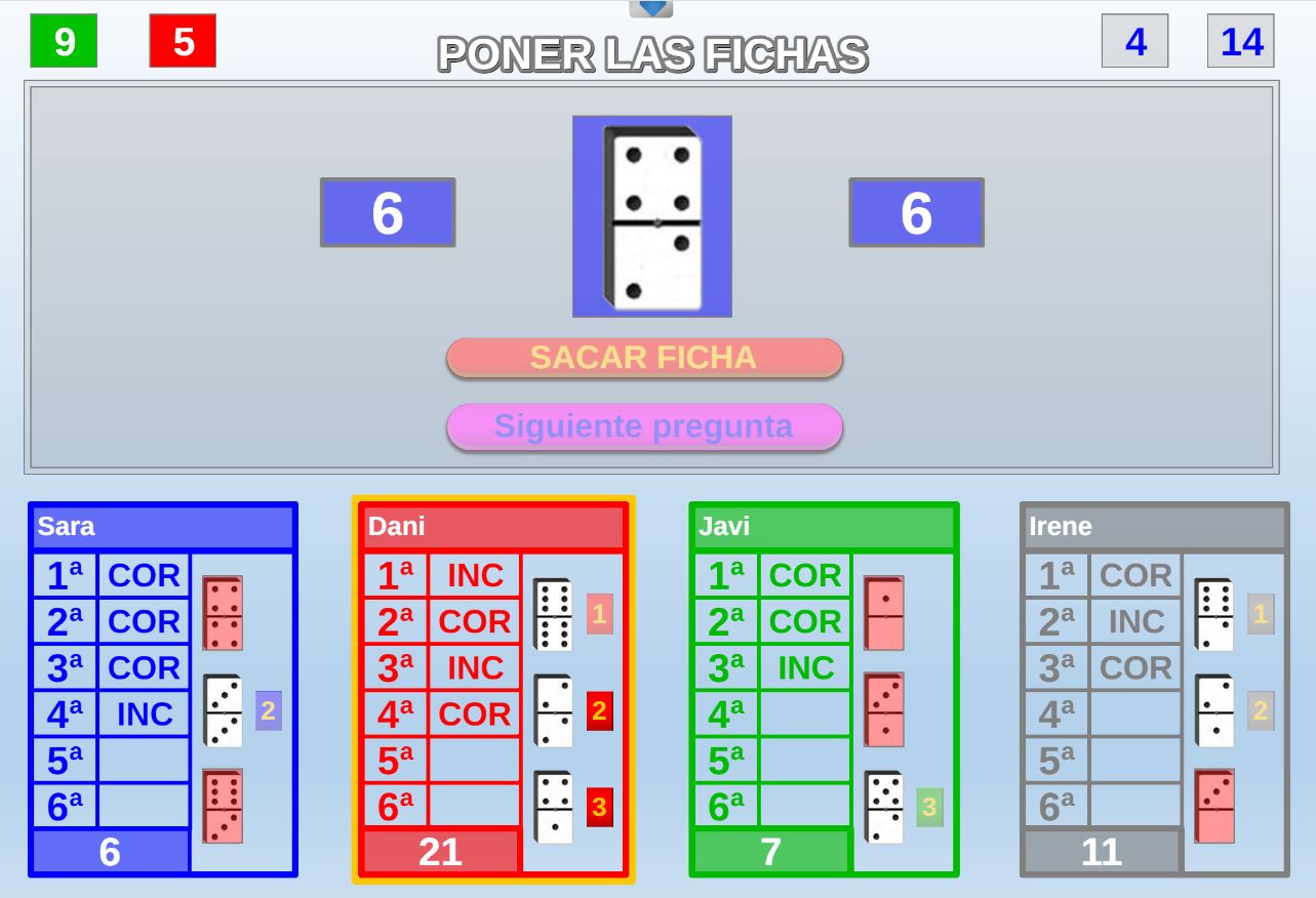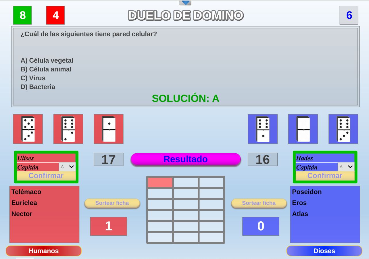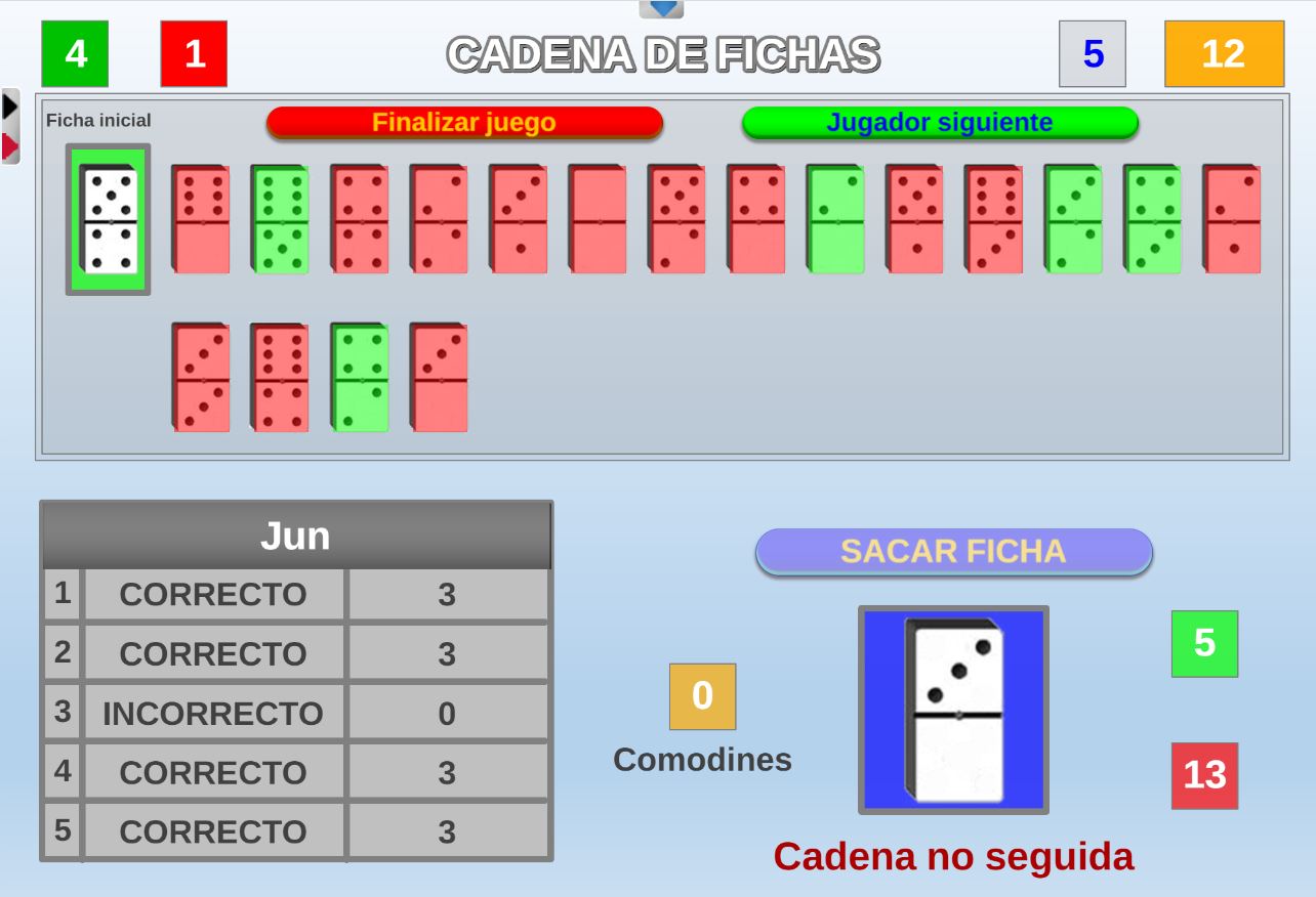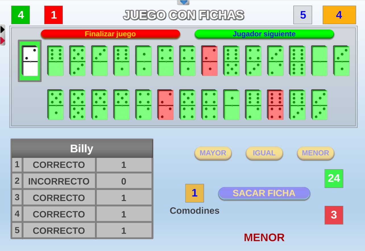 Juego que se fundamenta en el que el conocimiento y la suerte a la hora de obtener la mayor puntuación en las fichas de dominó extraidas.