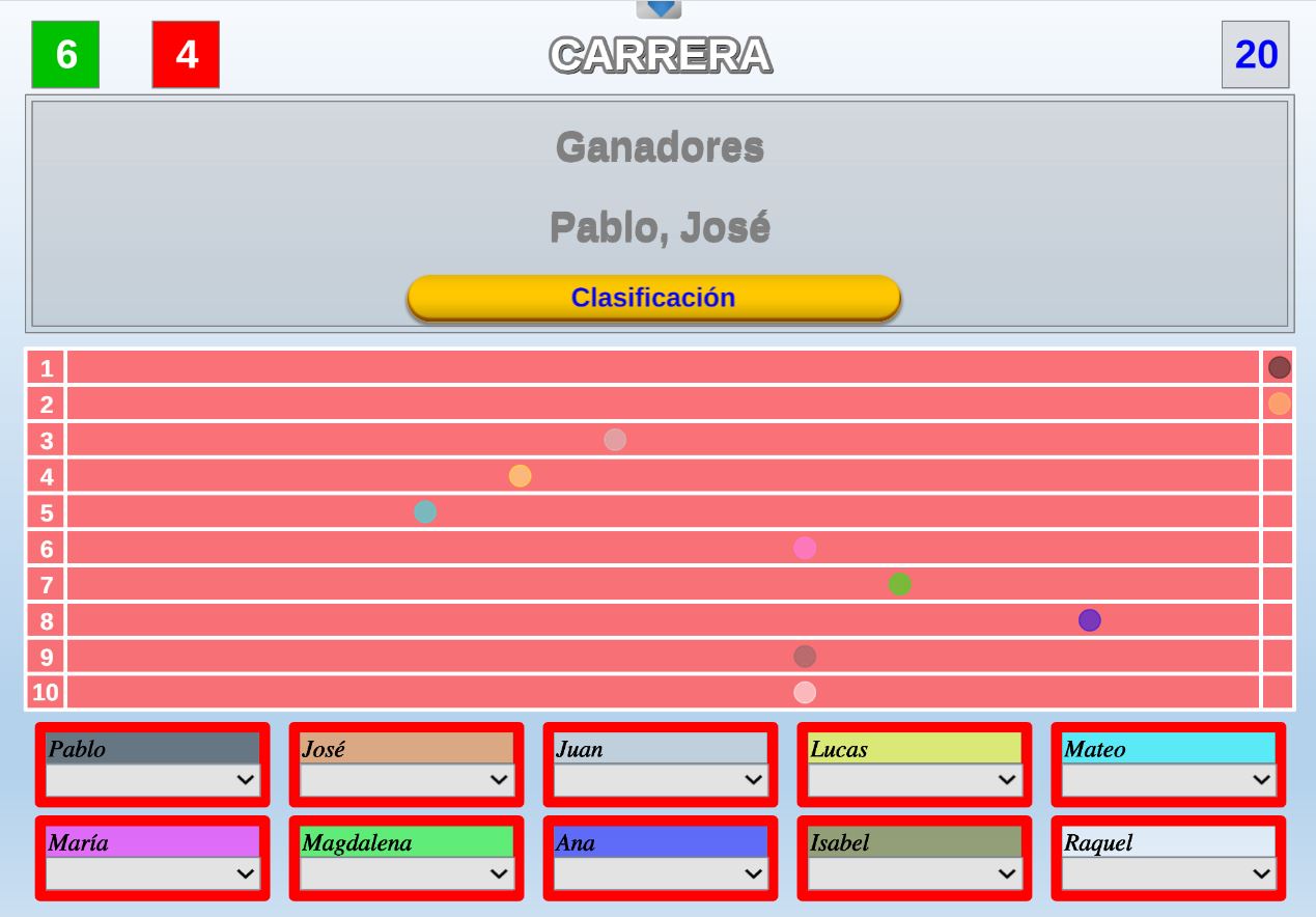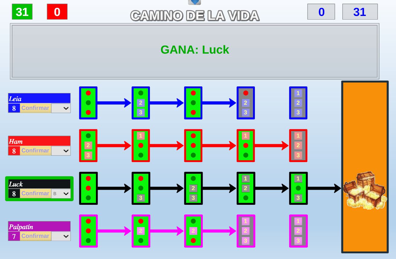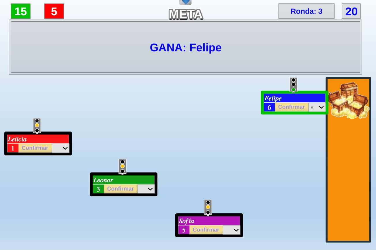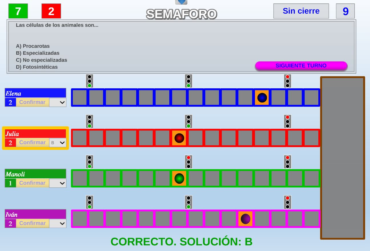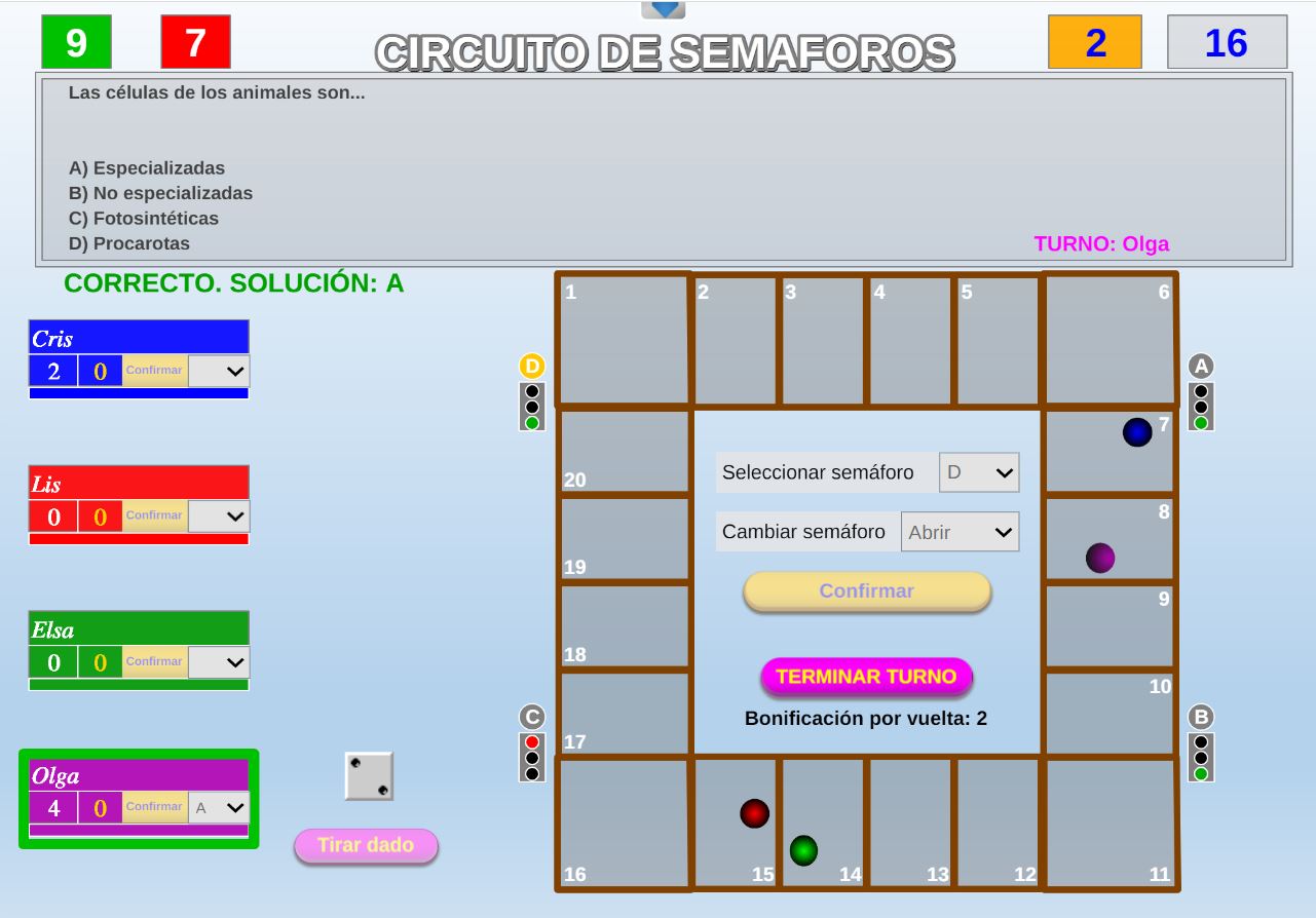 Juego en el que varios jugadores deberán avanzar por sus respectivos caminos intentando llegar lo antes posible a la meta superando los semáforos.