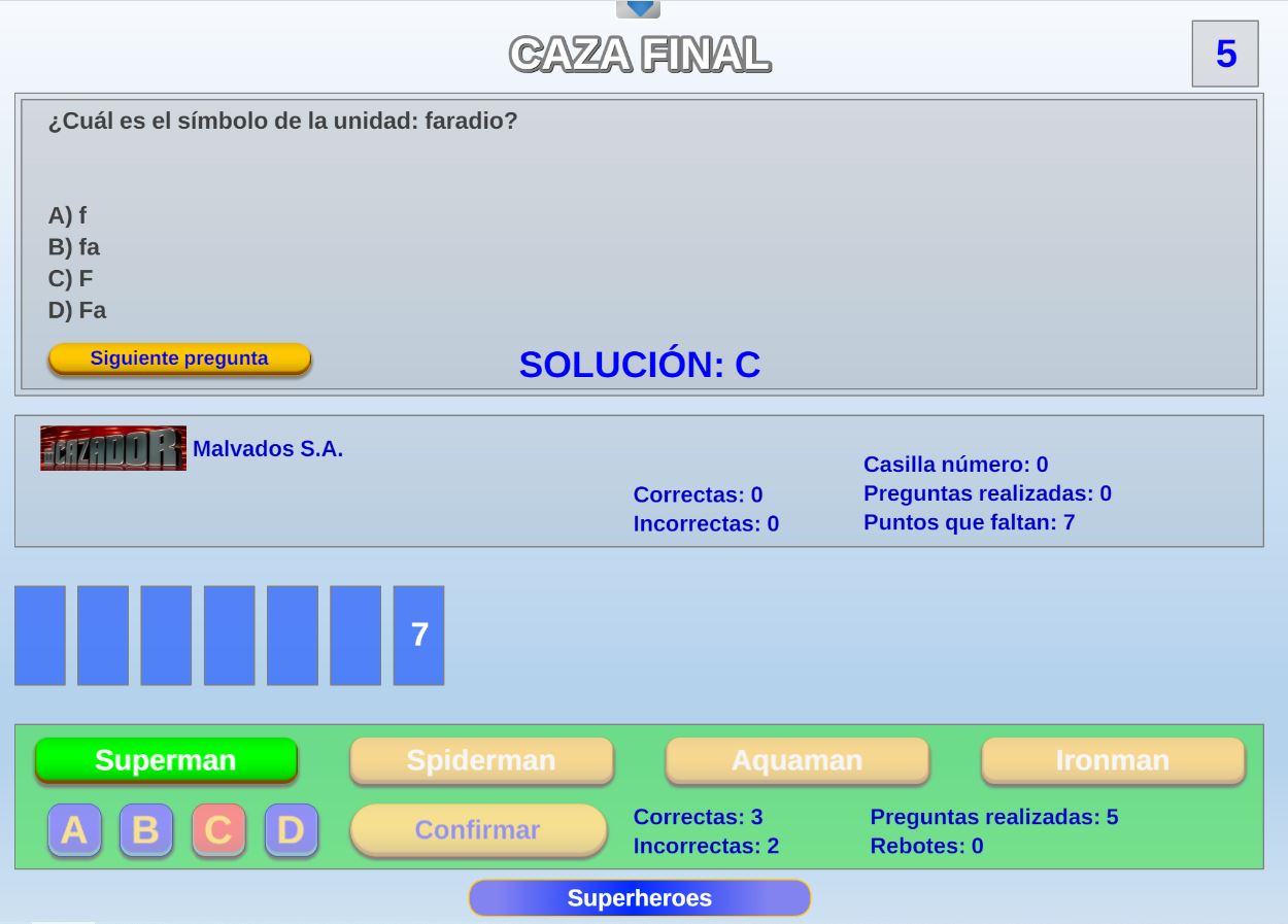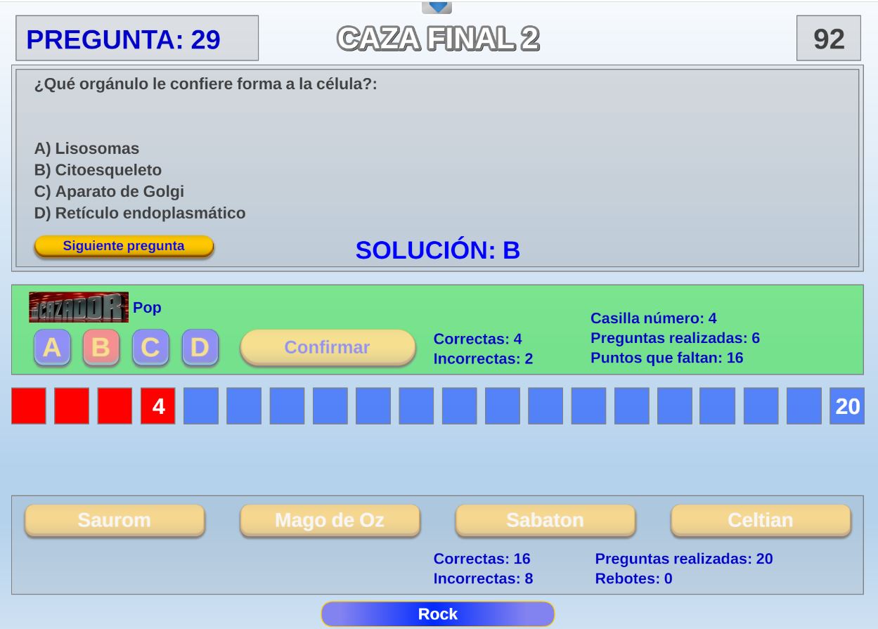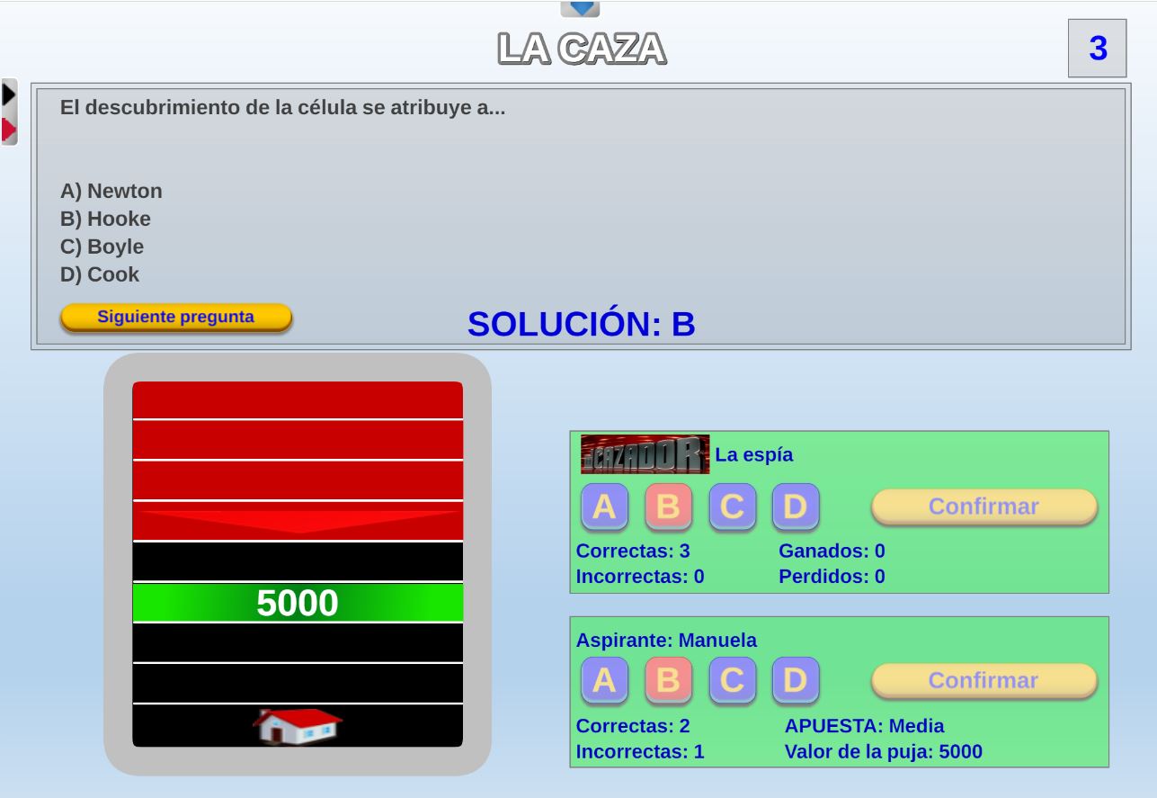 Juego basado en la primera prueba del concurso de TV el cazador, que consiste en responder el máximo de preguntas posible durante un tiempo determinado.