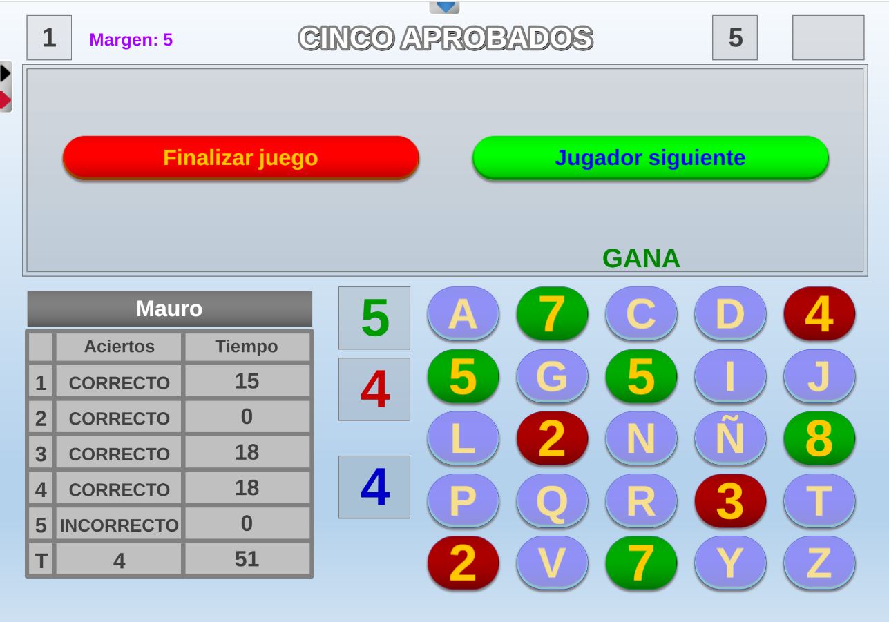 Juego que permite la participación de un gran número de jugadores simultáneamente, que gana el participante que consiga responder a cinco preguntas sin cometer fallos.