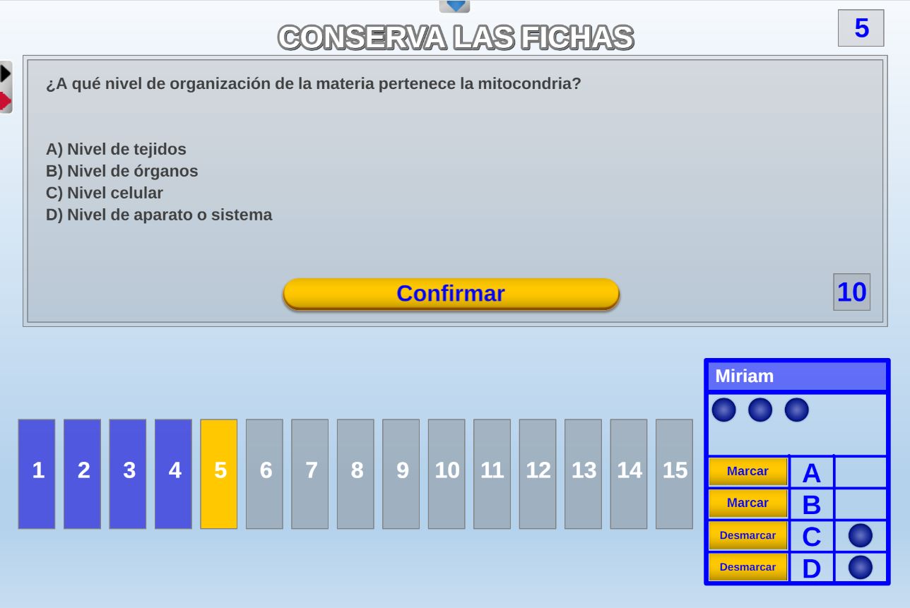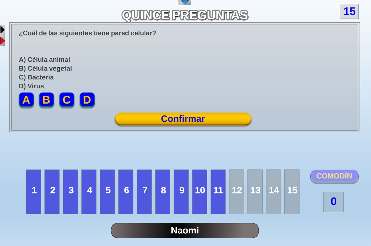 | Tipo de respuesta | 15 (1-15) | Juego sin preguntas | No |