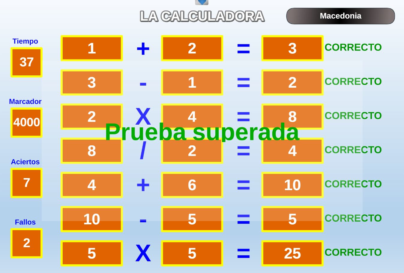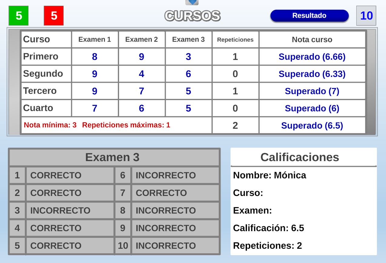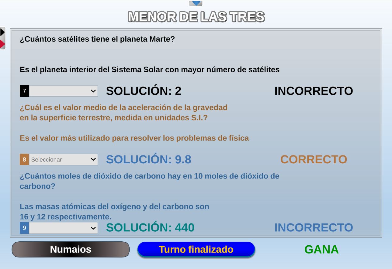 Juego que consiste en realizar un test con respuestas numéricas, de un número de preguntas variable, con o sin control de tiempo y que tras su realización se da la calificación del mismo.