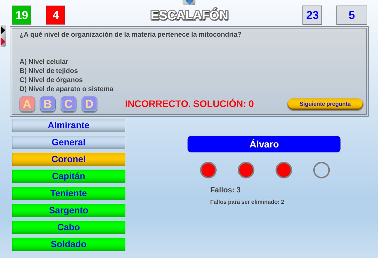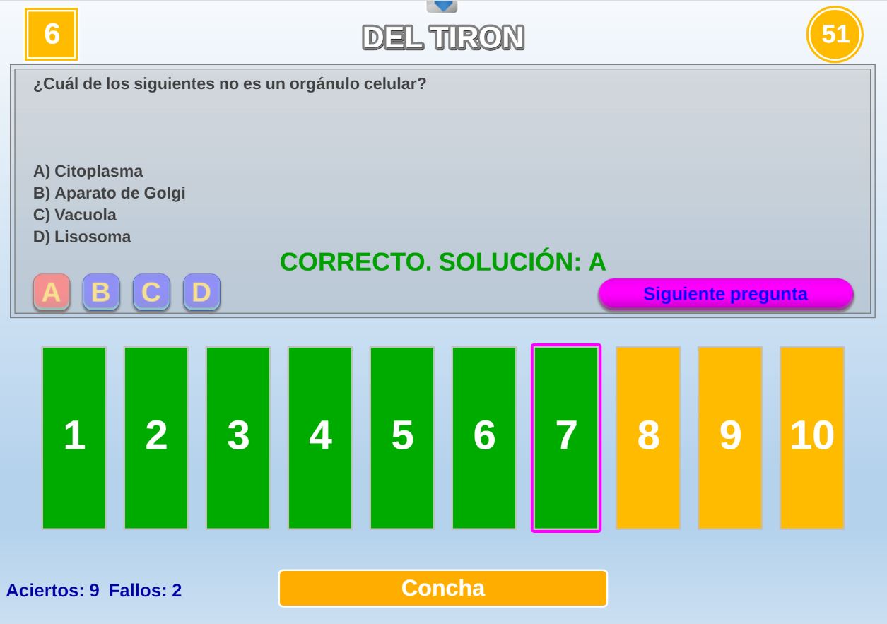 Juego de corte clasificatorio cuyas claves son la elección del tema, los conocimientos y la rapidez en la respuesta del participante para evitar ser eliminado.