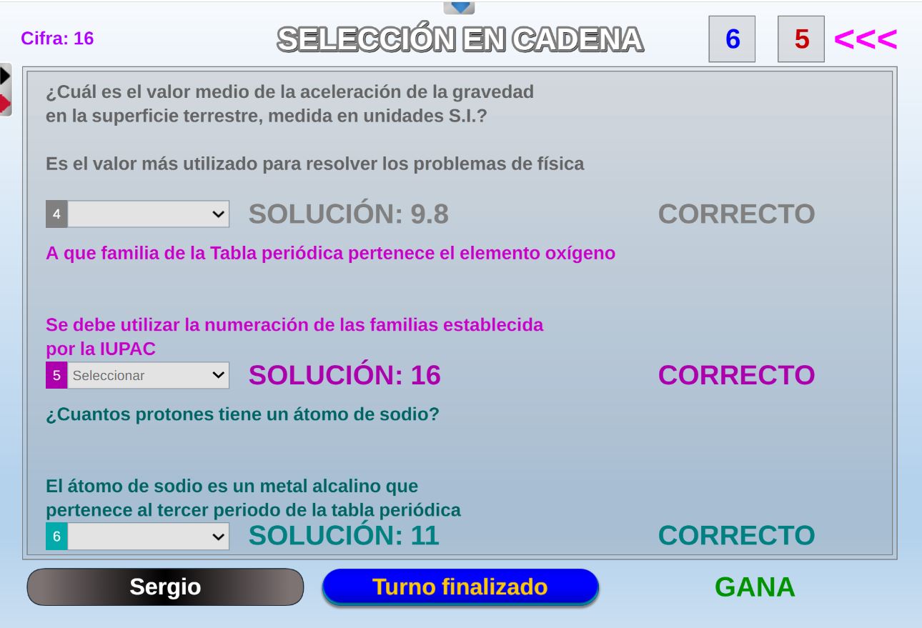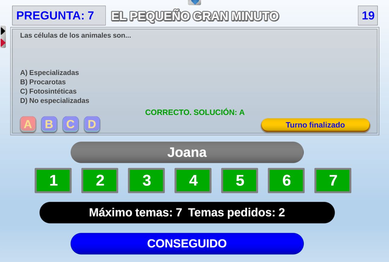 Adaptación de uno de los juegos del programa de TV "Saber y ganar", consistente en contestar el mayor número de preguntas sobre un tema elegido por el participante.