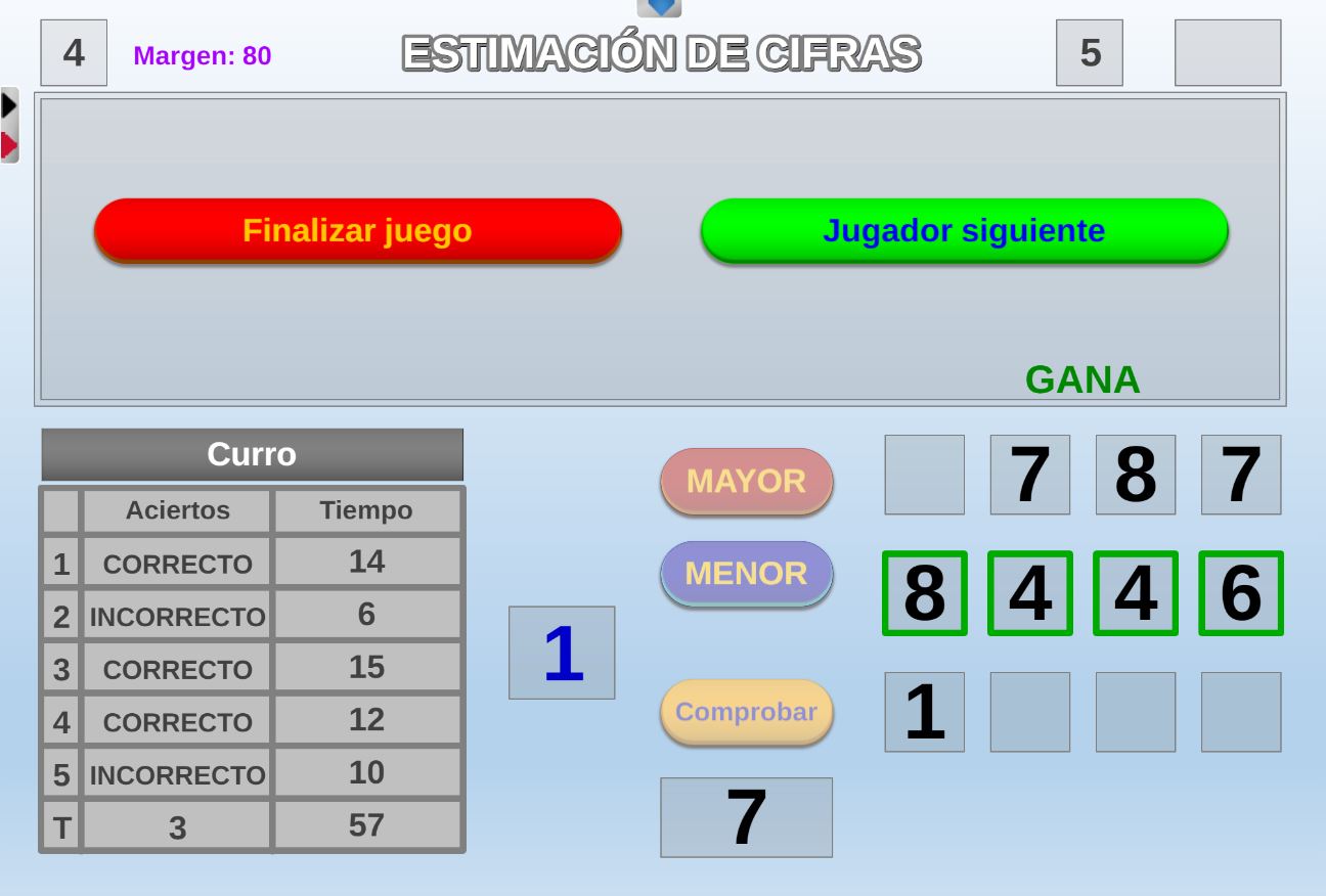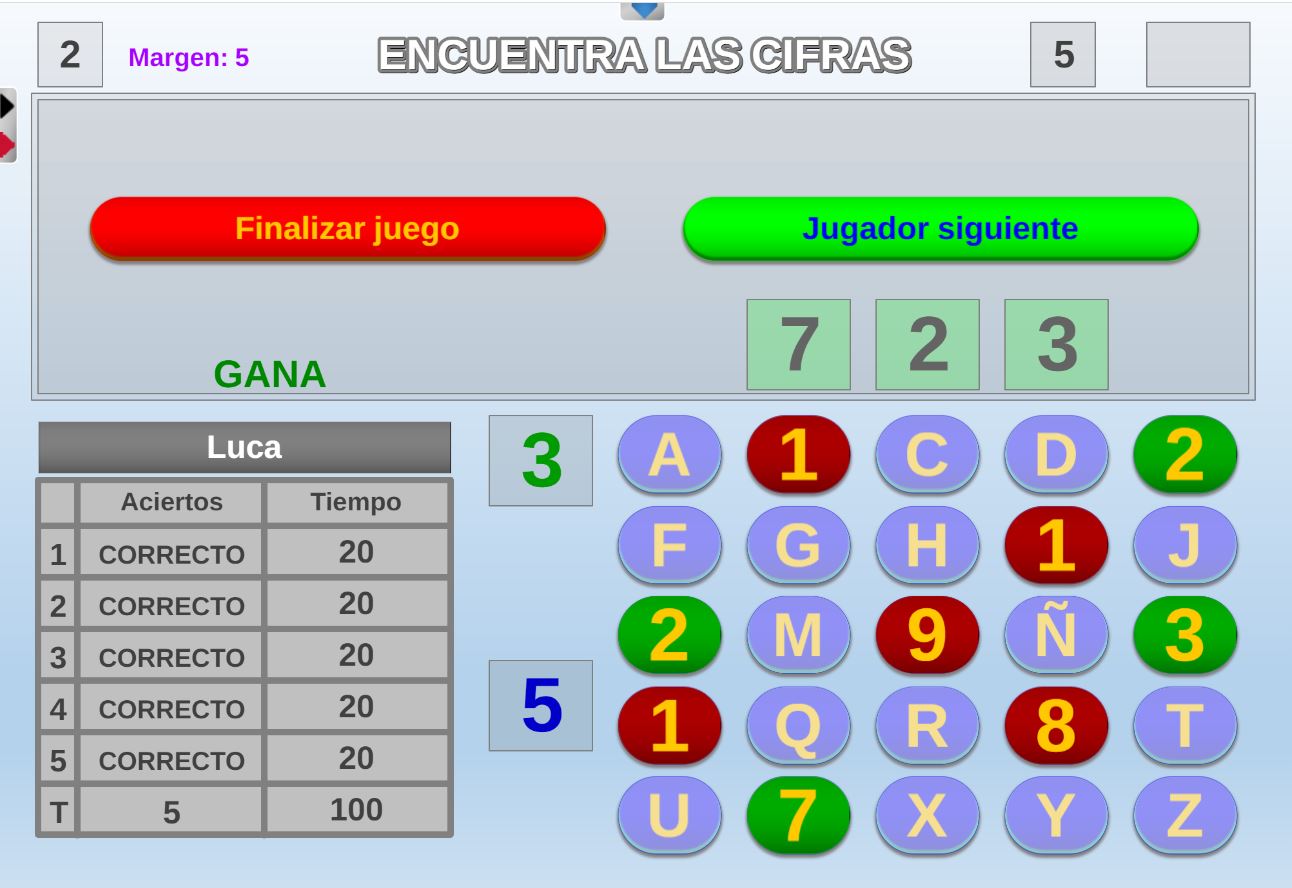 Versión de uno de los juegos del programa "El precio justo". Objetivo: seleccionar las respuestas coincidentes con las cifras que se van dando a lo largo de la partida.