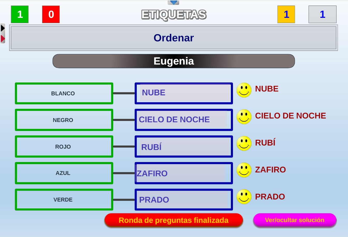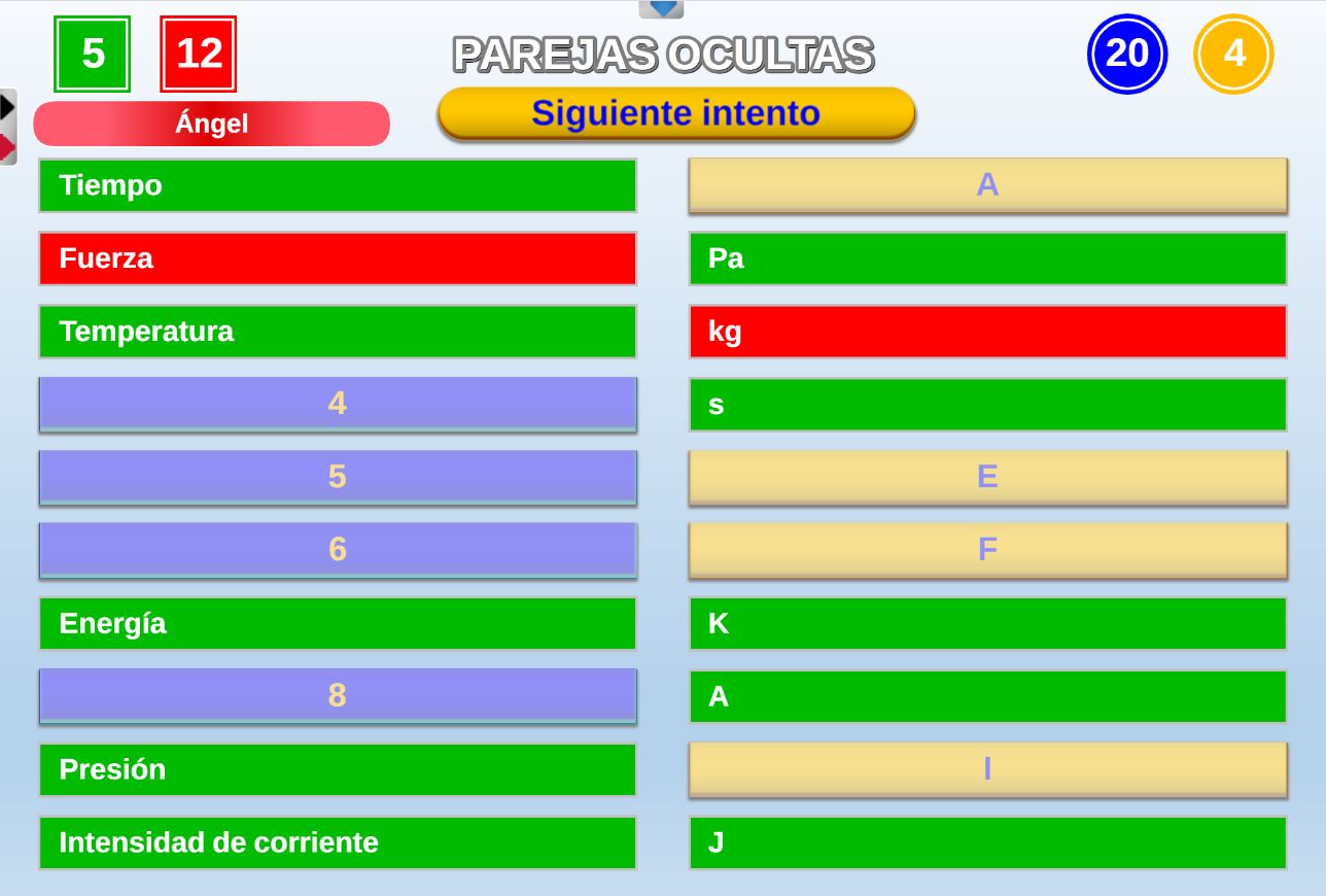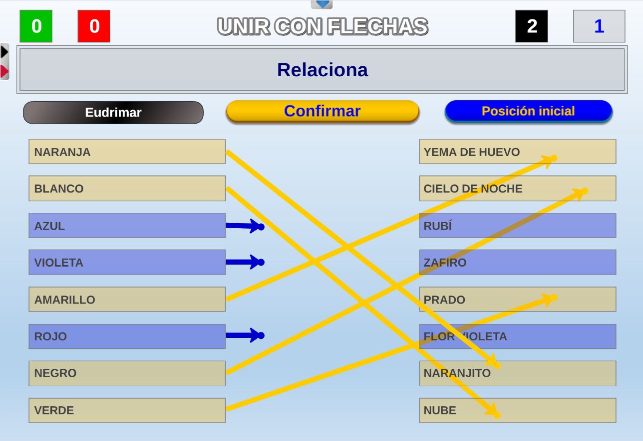 Juego clásico consistente en unir mediante flechas las opciones o casillas de dos columnas que estén relacionadas entre si por algún vínculo.