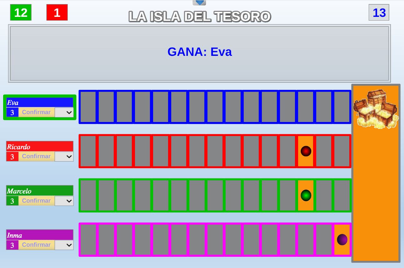 Continuar otra partida. Permite continuar otra partida previamente guardada seleccionando el fichero en el que se guardó y en el estado en el que fue archivada (se abrirá el explorador de ficheros del navegador). Tras cargar el fichero de la partida que se desea continuar se mostrará la pantalla de configuración inicial con los datos de la partida cargada.