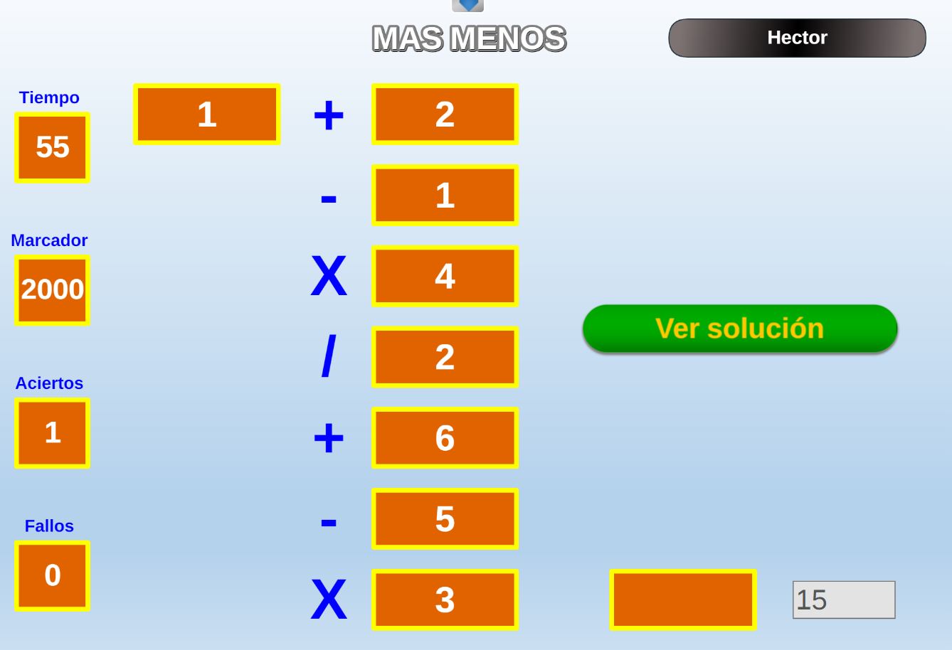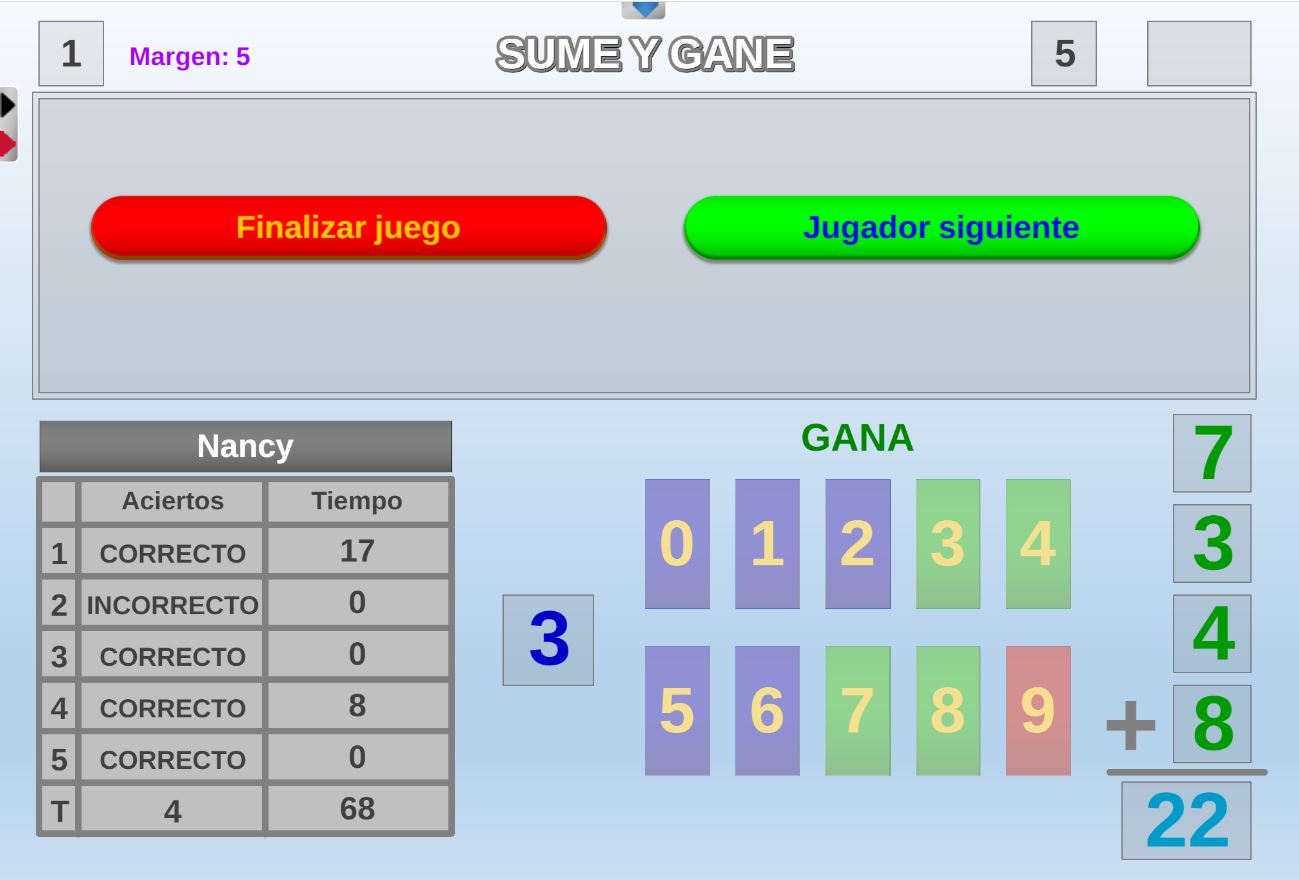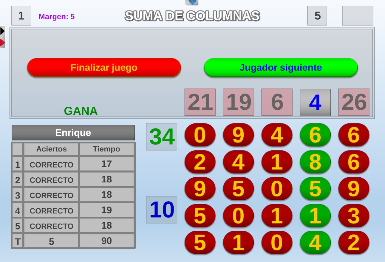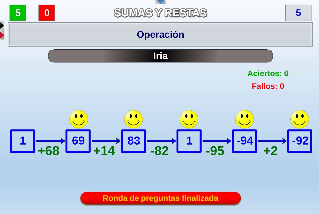 Juego diseñado especialmente para las etapas de educación infantil y primaria consistente en realizar cadenas de sumas y/o restas de dificultad modulable.