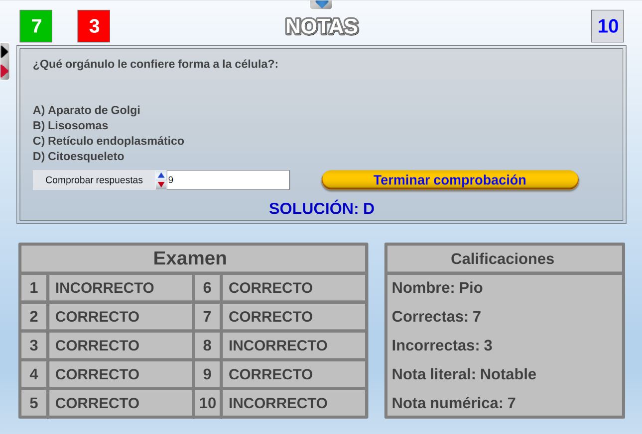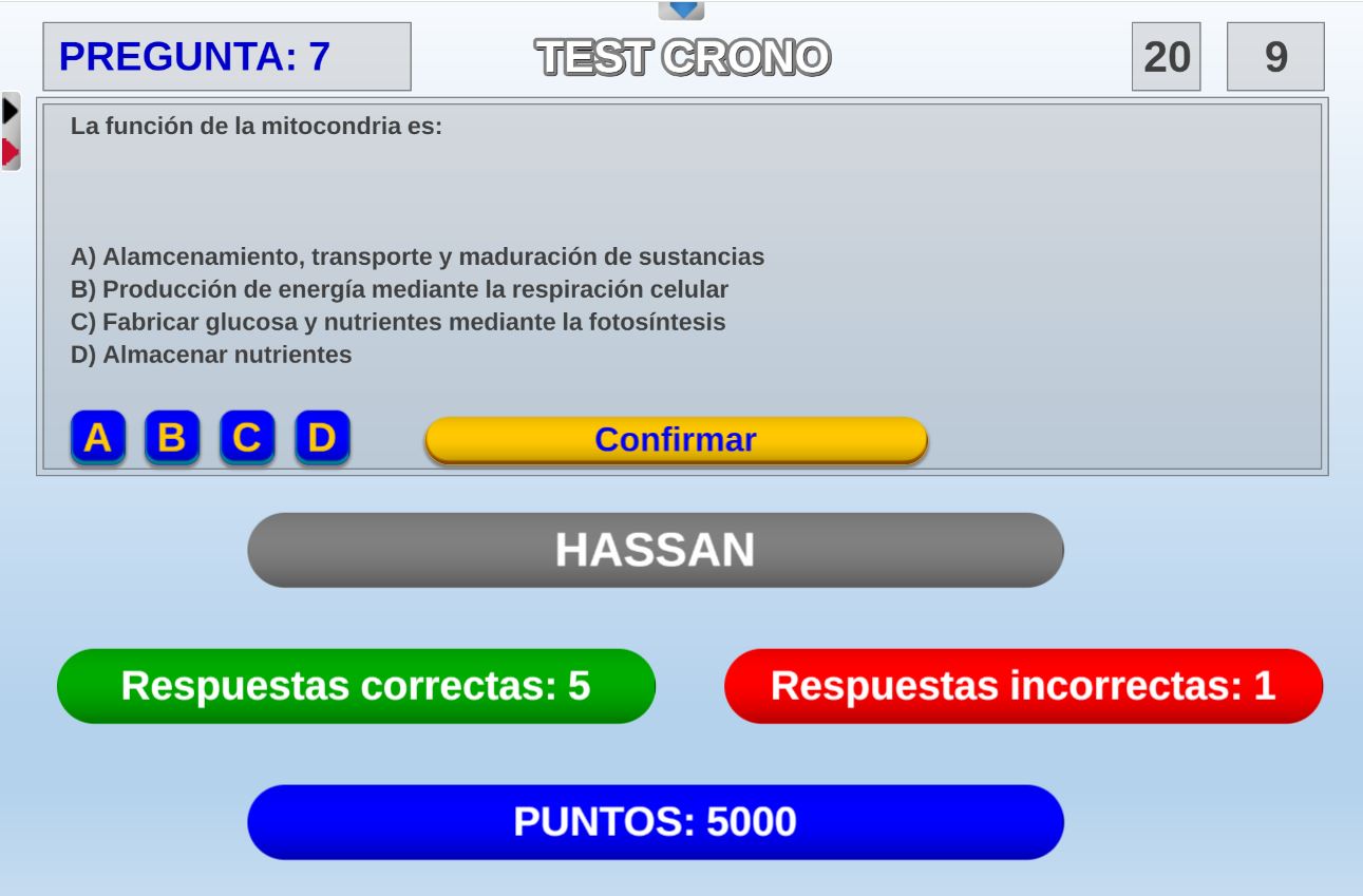 Juego que consiste en realizar un test de un número de preguntas variable, con o sin control de tiempo y que tras su realización se da la calificación del mismo.