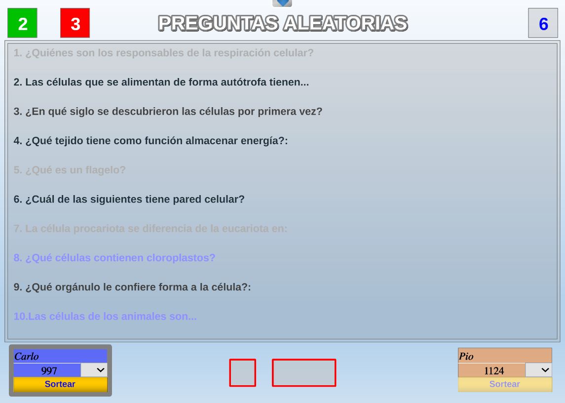 Juego en el que los participantes son seleccionados aleatoriamente a partir de una lista de nombres introducida mediante un fichero de texto al principio del juego.