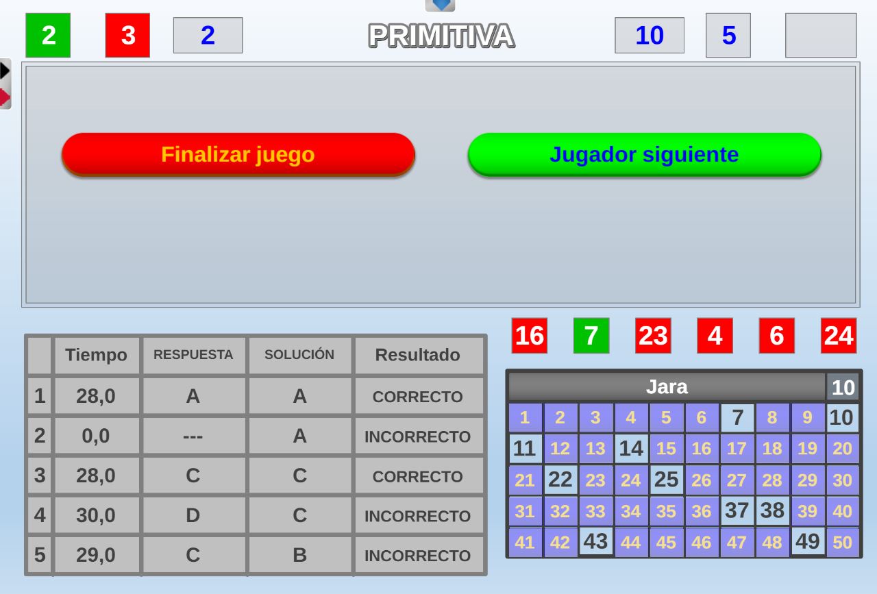 Si la fuente de preguntas es oral, generada por el propio juego, aleatoria o sin preguntas, el botón Jugar estará activo y la partida podrá comenzar y se desarrollará con la fuente de preguntas seleccionada en dicho control.