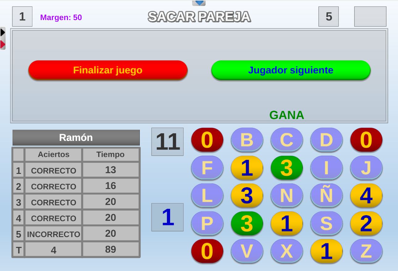 Versión de uno de los juegos del programa "El precio justo". Objetivo: sacar una pareja de números mayores que cero de igual valor, sin cometer más fallos (sacar cero) de los permitidos.