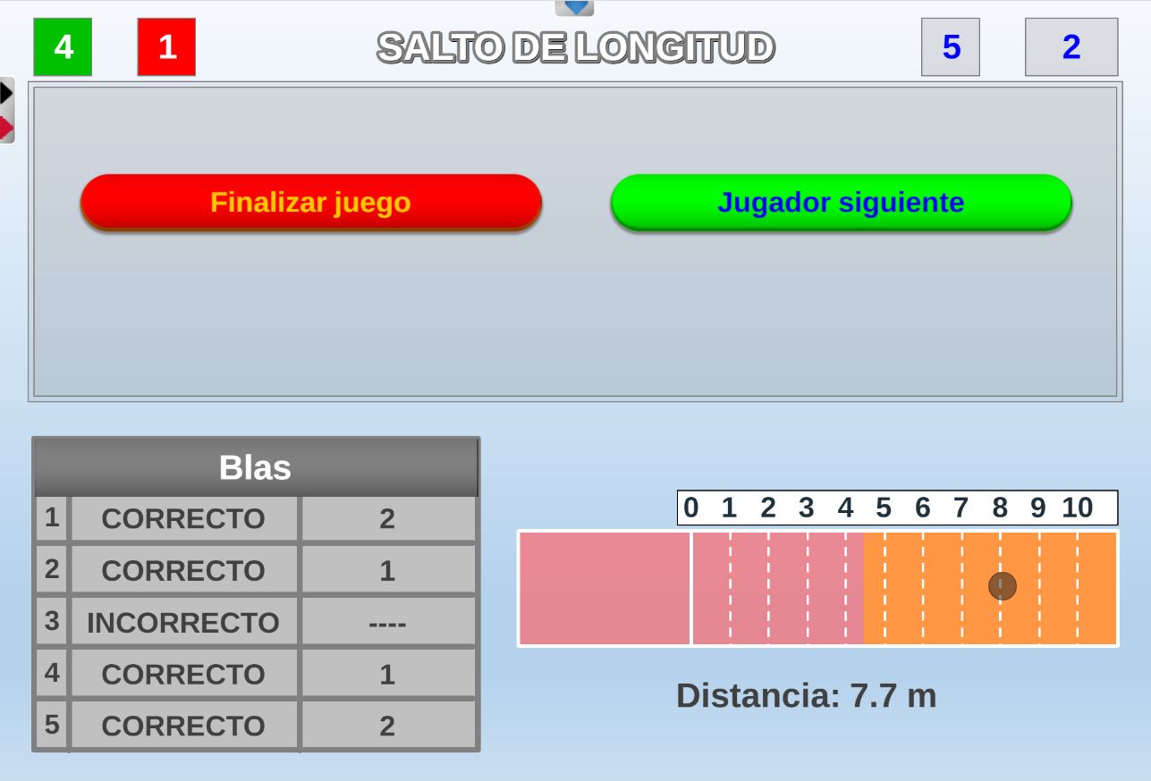 Juego en el que los jugadores realizarán saltos de longitud, siendo mayor la distancia alcanzada cuantas más preguntas respondan correctamente en el menor tiempo posible.