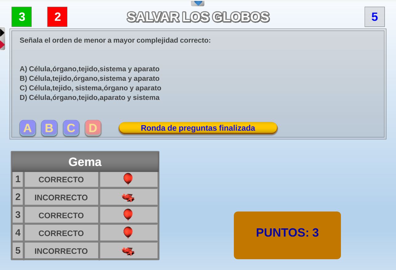 Juego pensado especialmente para alumnos de la etapa de educación primaria, en el que hay que evitar que los globos exploten acertando las preguntas.