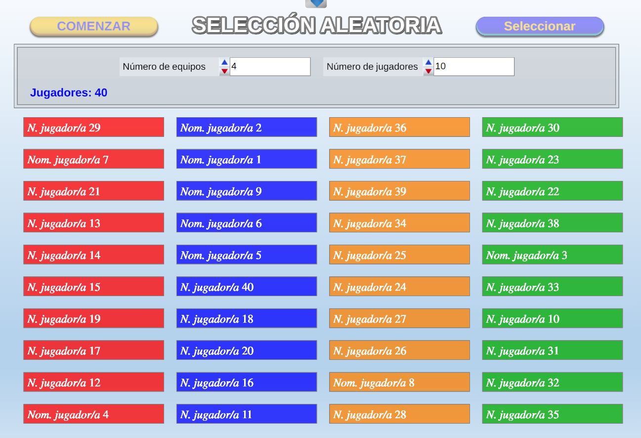 Juego, también llamado "El lienzo del destino", para seleccionar jugadores, juegos o números. También se pueden seleccionar jugadores de entre los incluidos en un fichero de texto.